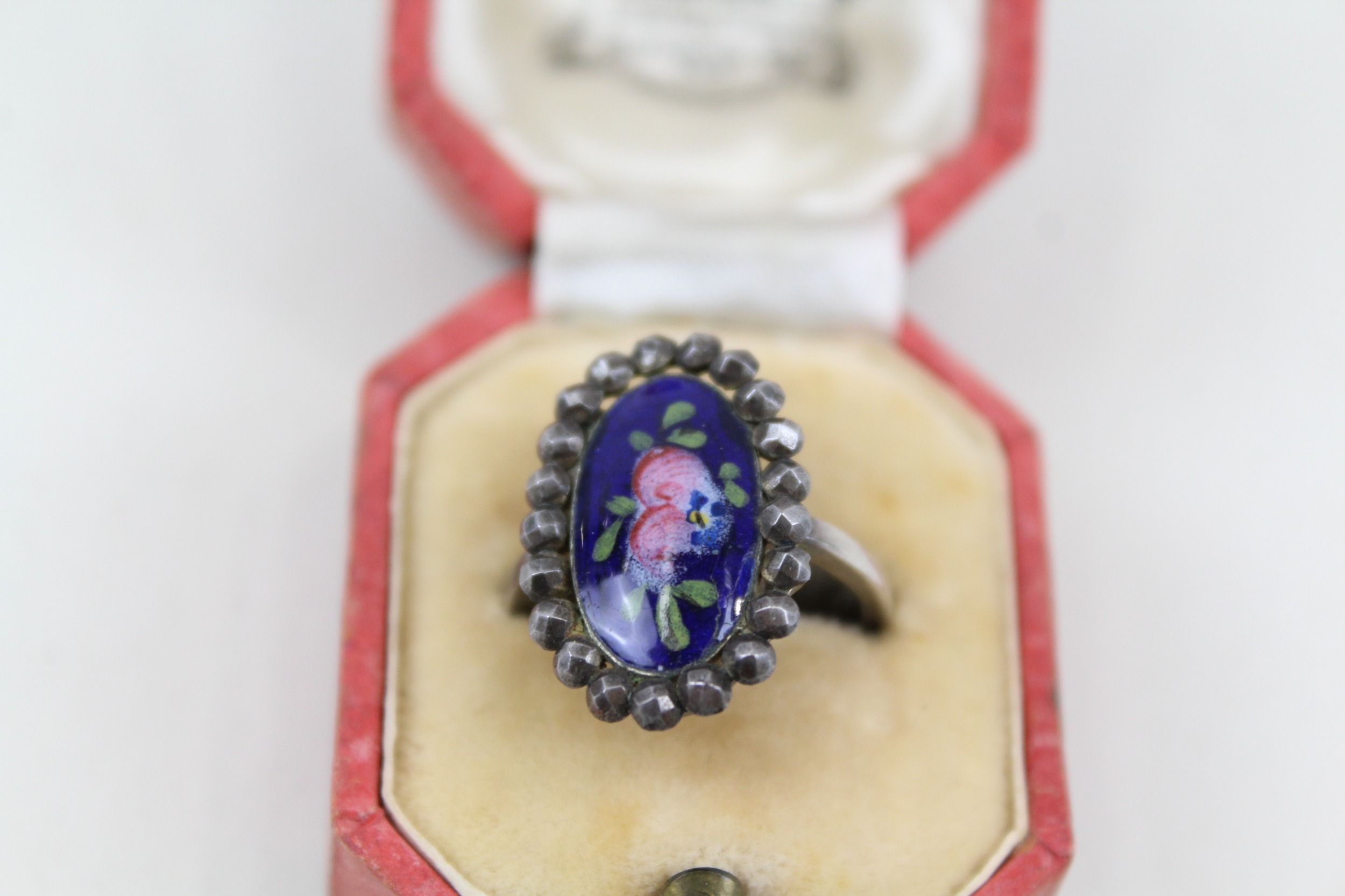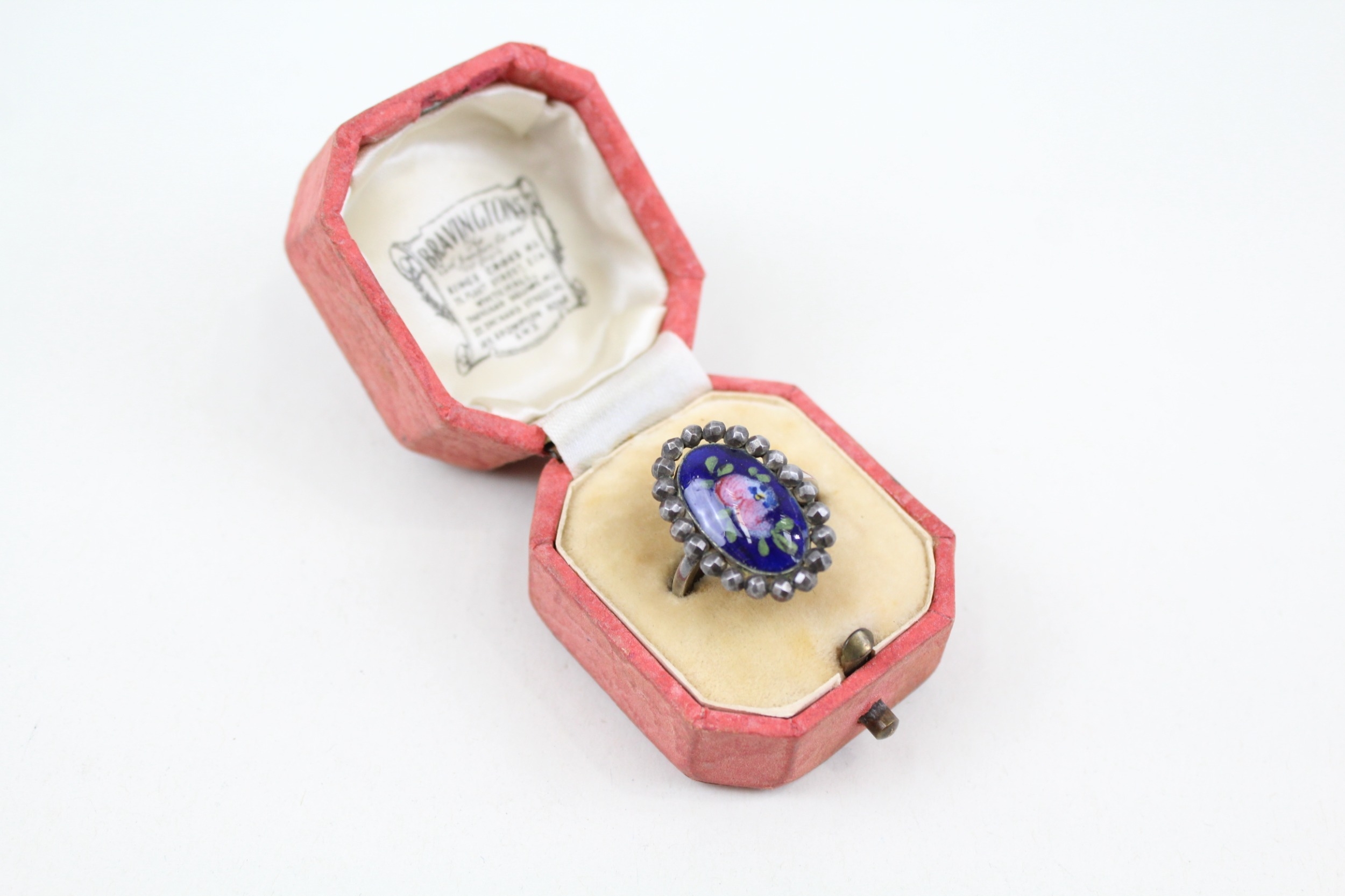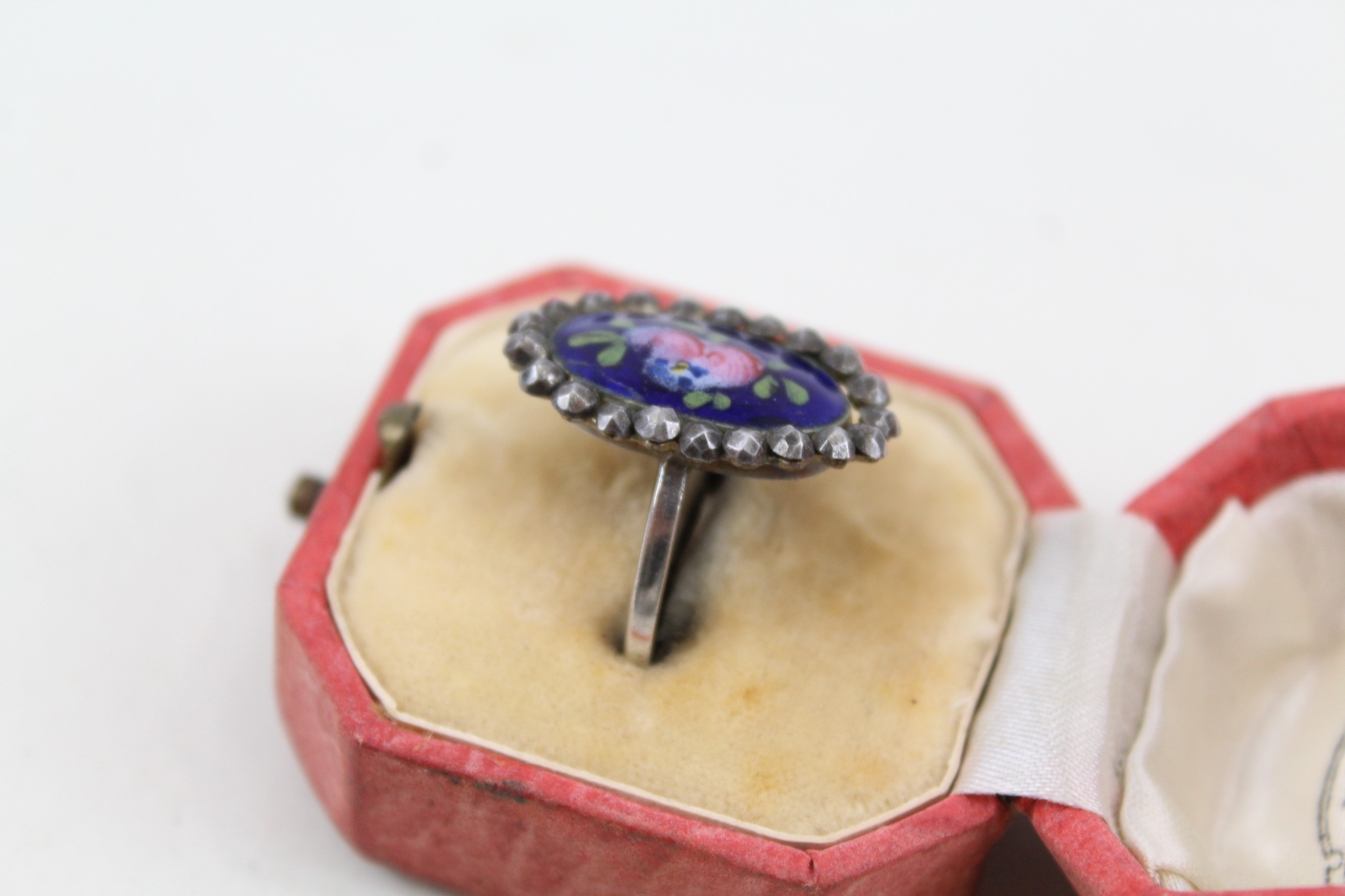 Antique French Enamel & Cut Steel Silver Ring inc. Antique Box 3g