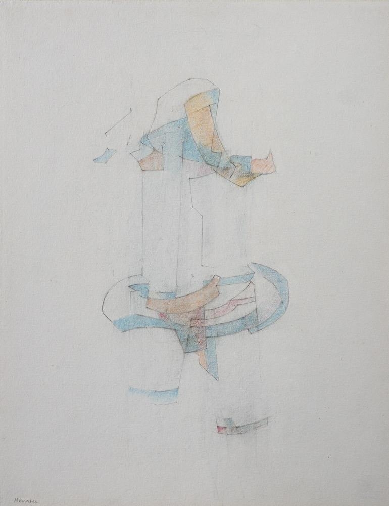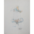 Adrian de Menasce (Egyptian/British, 1925-1995) Figure drawing, 1976. Pencil and coloured crayon on paper. 29 x 22.5cm Signed lower left. Provenance: The Mayor Gallery, Cork Street, London. 1996 ** To be sold with a catalogue 'Adrian de Menasce - Late Oil Paintings ' The Mayor Gallery. 1996