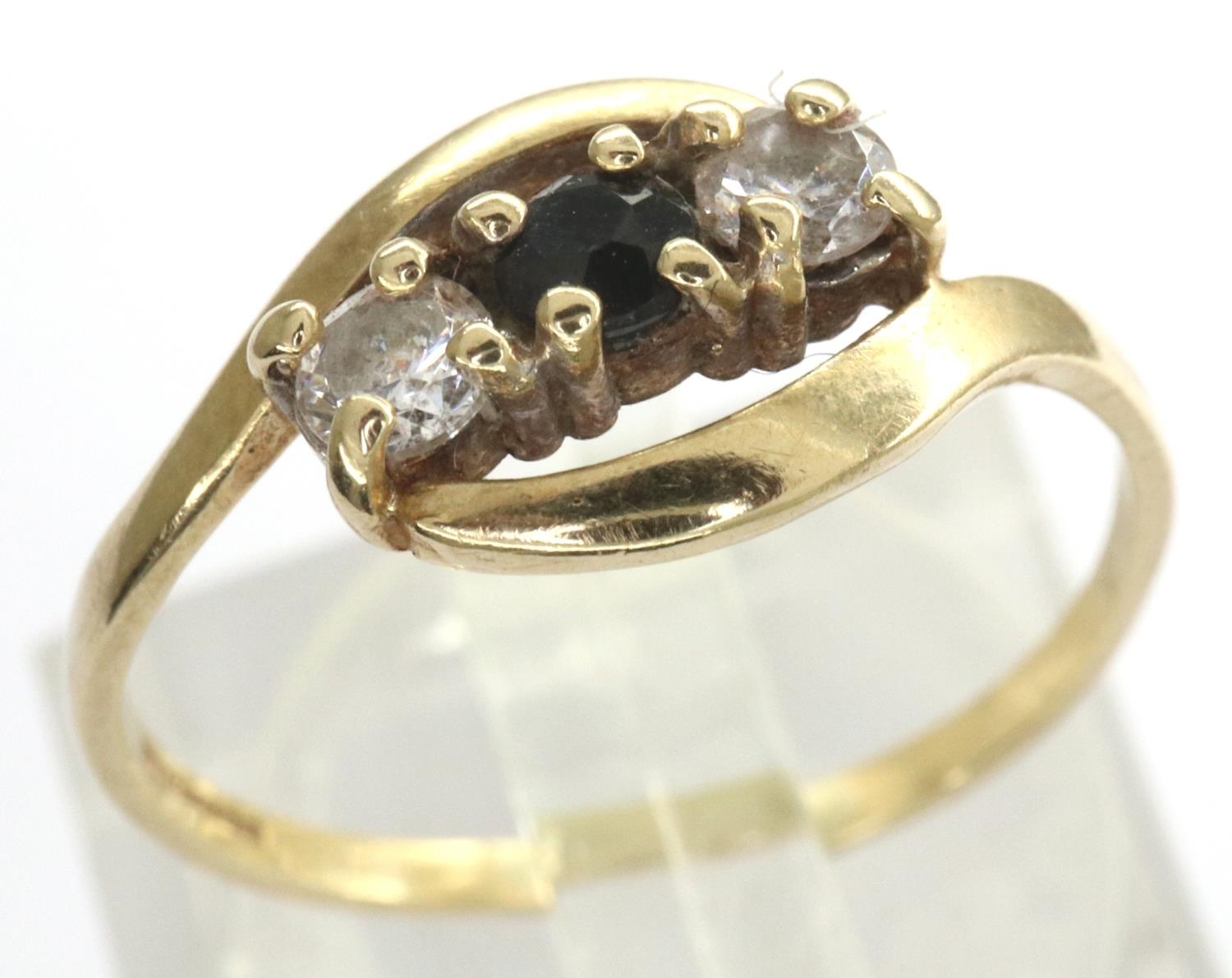 9ct gold sapphire and CZ set ring, size M, 1.2g. P&P Group 1 (£14+VAT for the first lot and £1+VAT for subsequent lots)