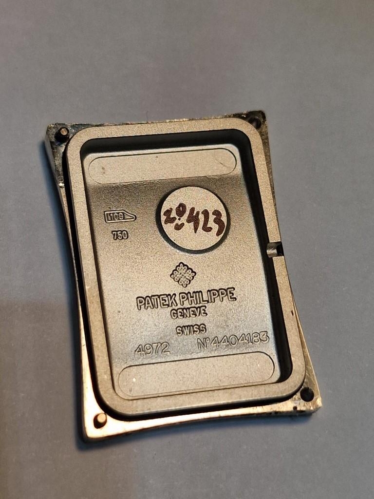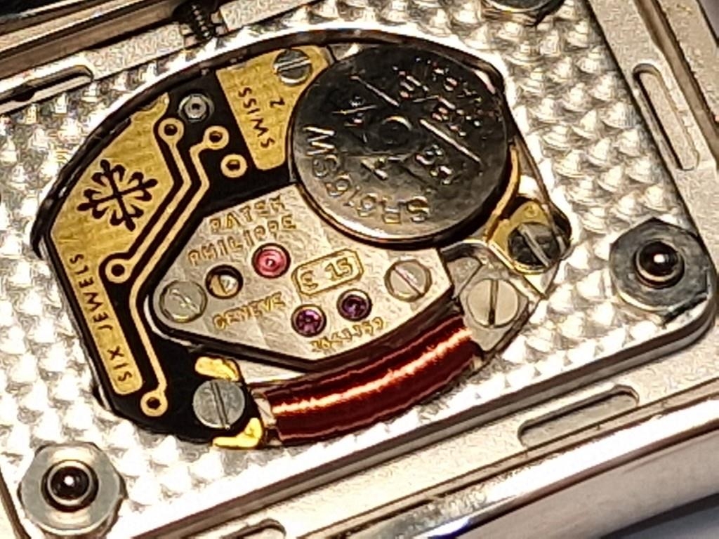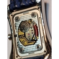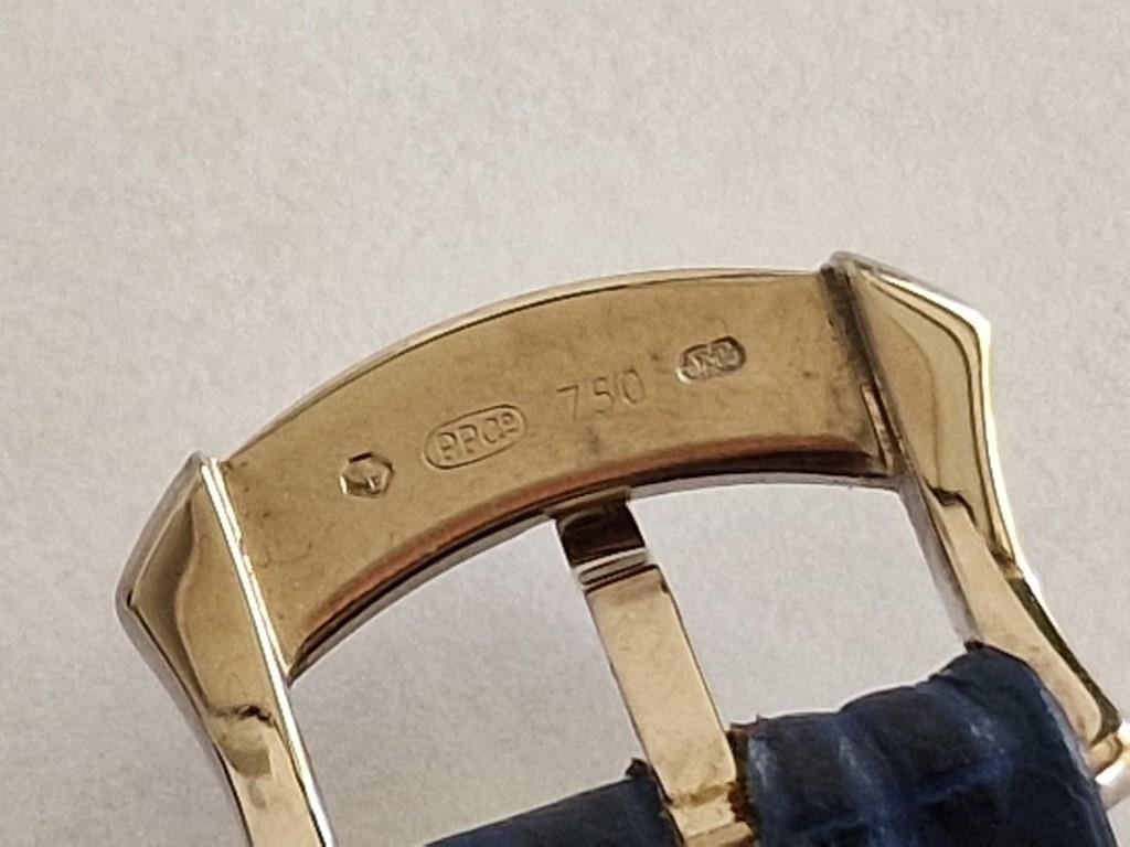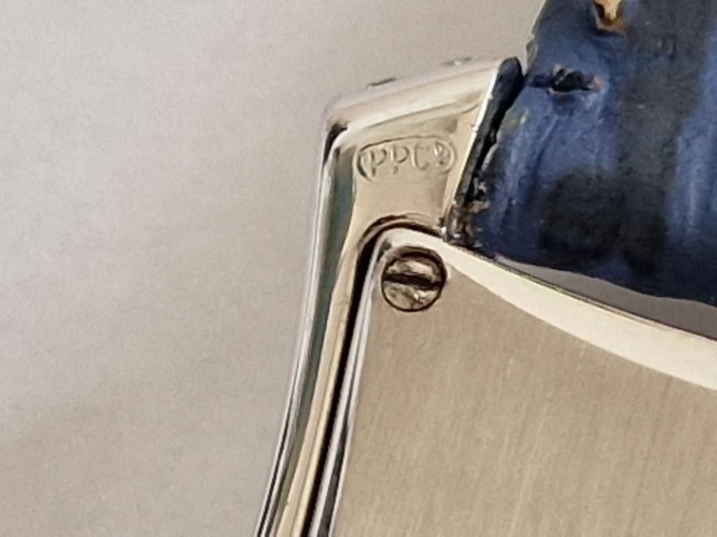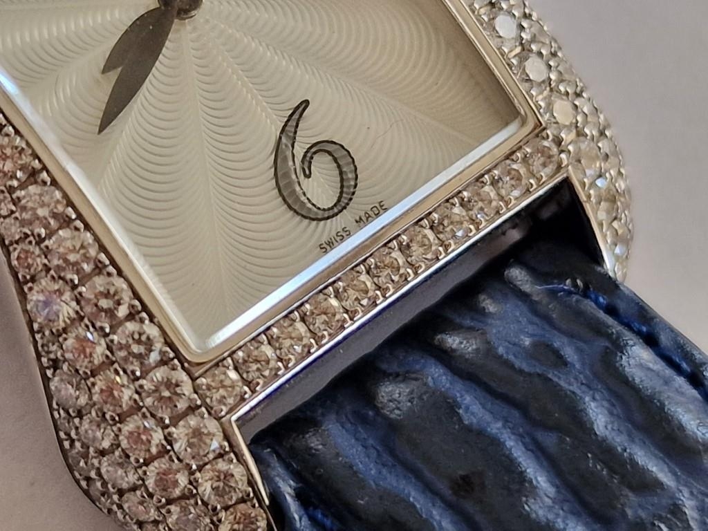 Patek Philippe Gondolo 18ct White Gold Watch #4972, with Mother of Pearl Face and Diamond Encrusted Bezel & Shoulders, Swiss Made, Six Jewels, E15 Calibre Movement, No. 36XXXXX, Quartz, * Running When Lotted *, Case Size Approx. 39 x 22.5mm, on Replacement Blue Leather Strap with Original P.P Gold Buckle