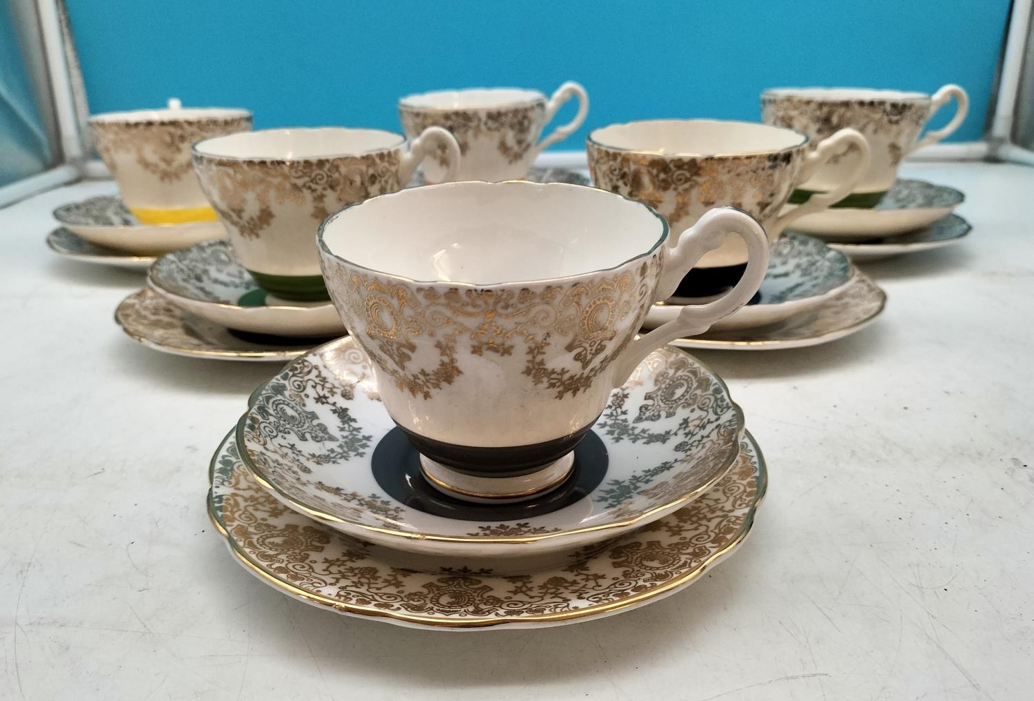 Winston Bone China Trios (6) with Multicolour Base.