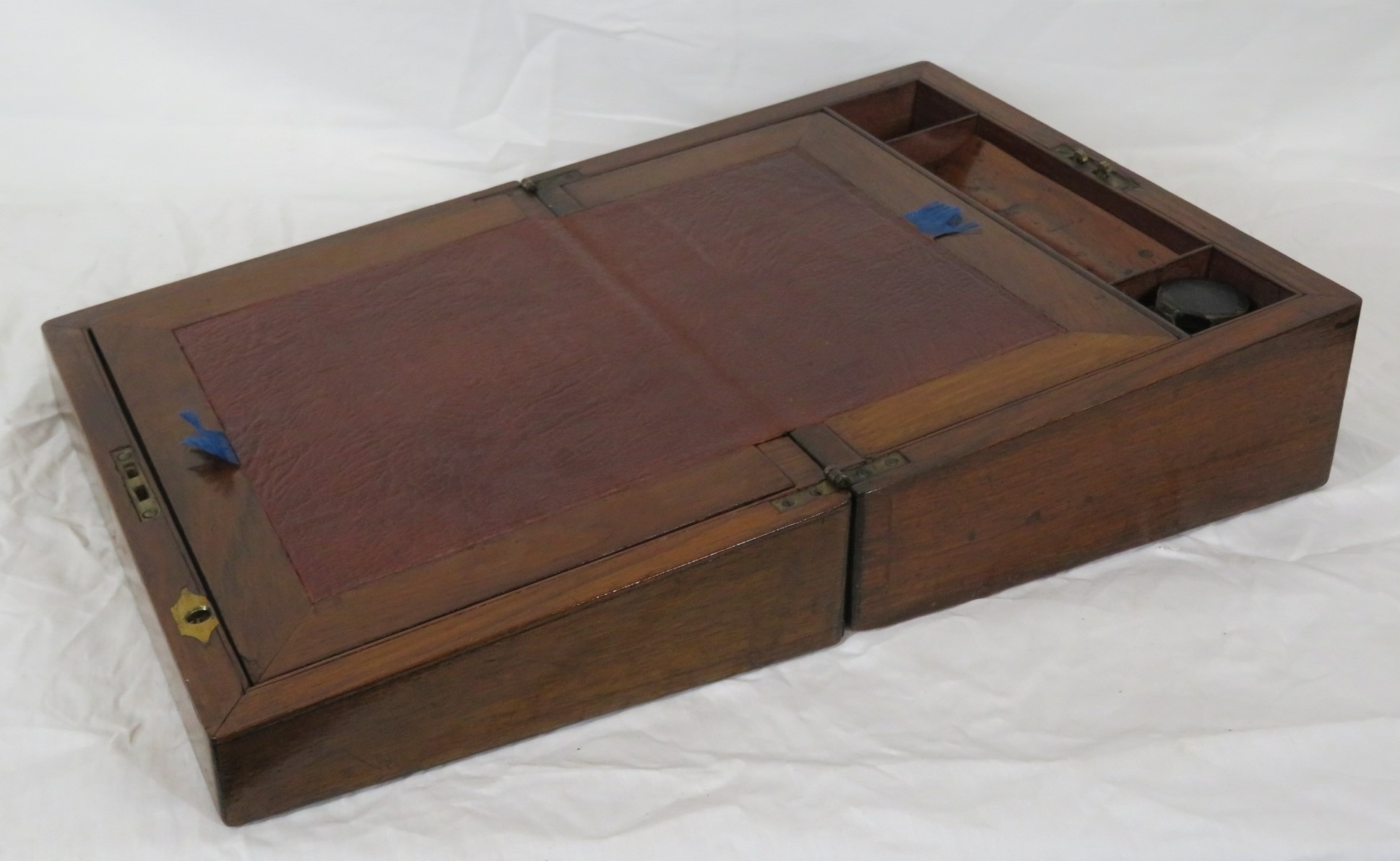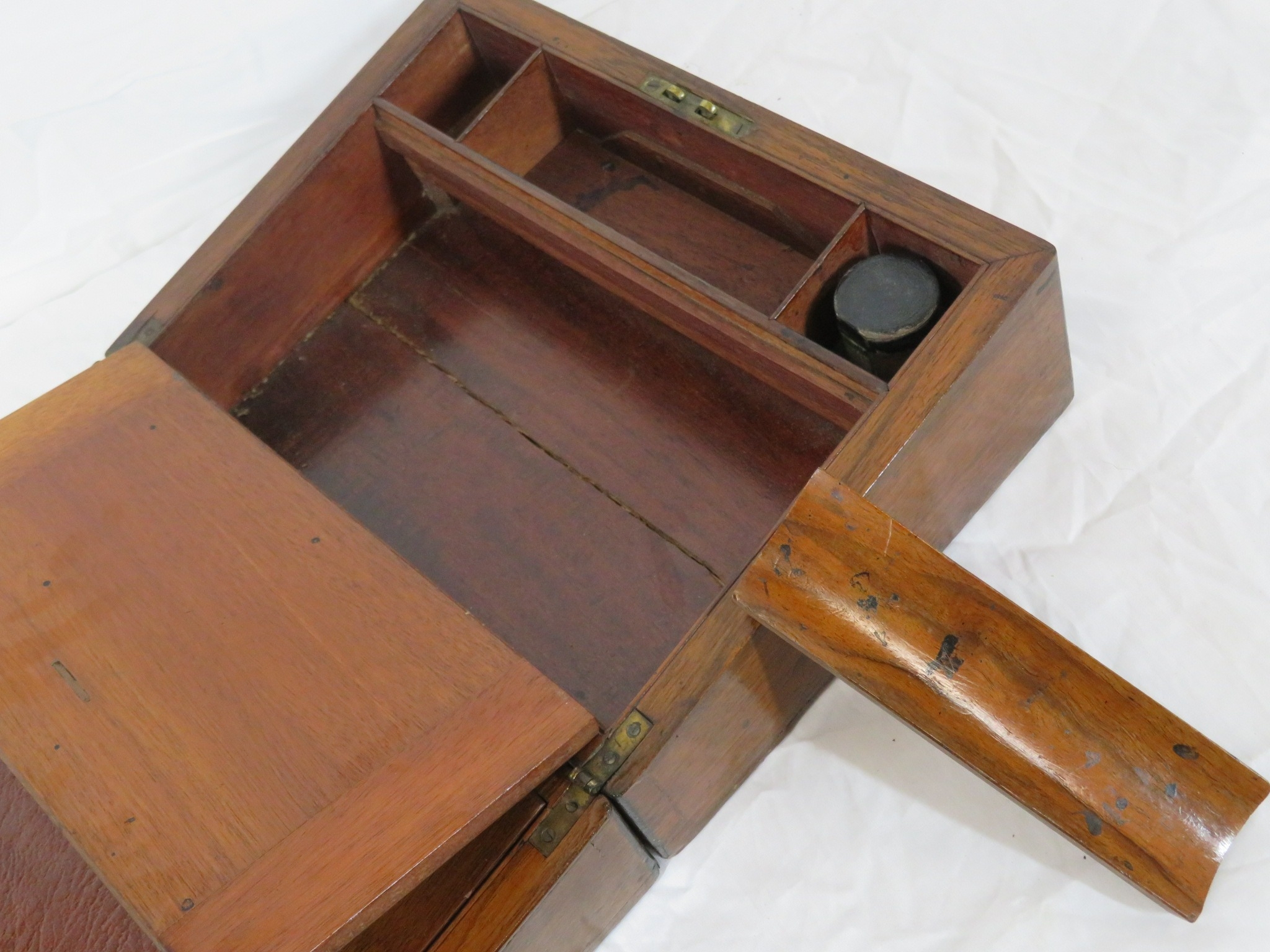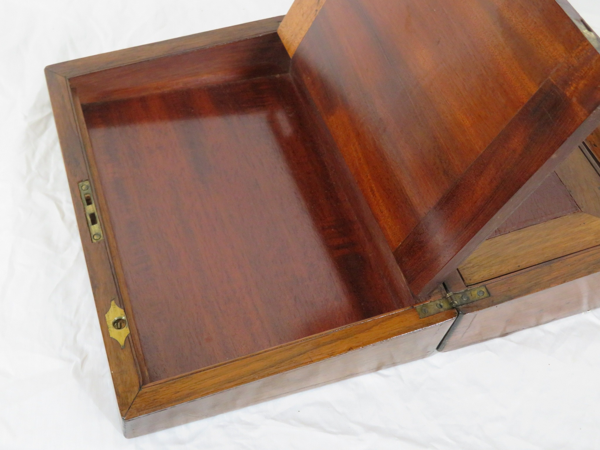 Edwardian inlaid mahogany fold-out writing slope with fitted & leather lined interior