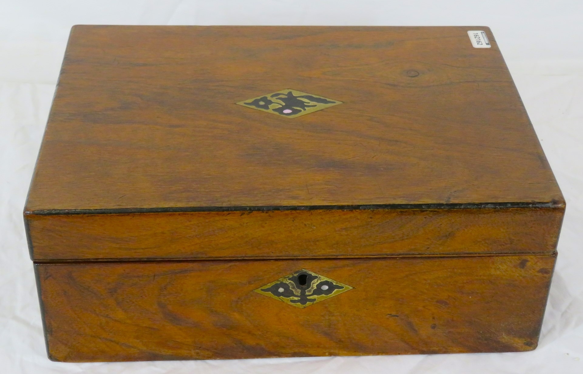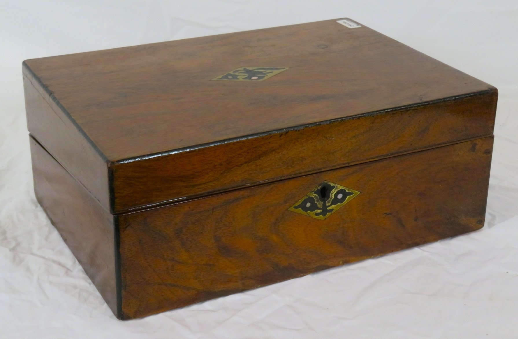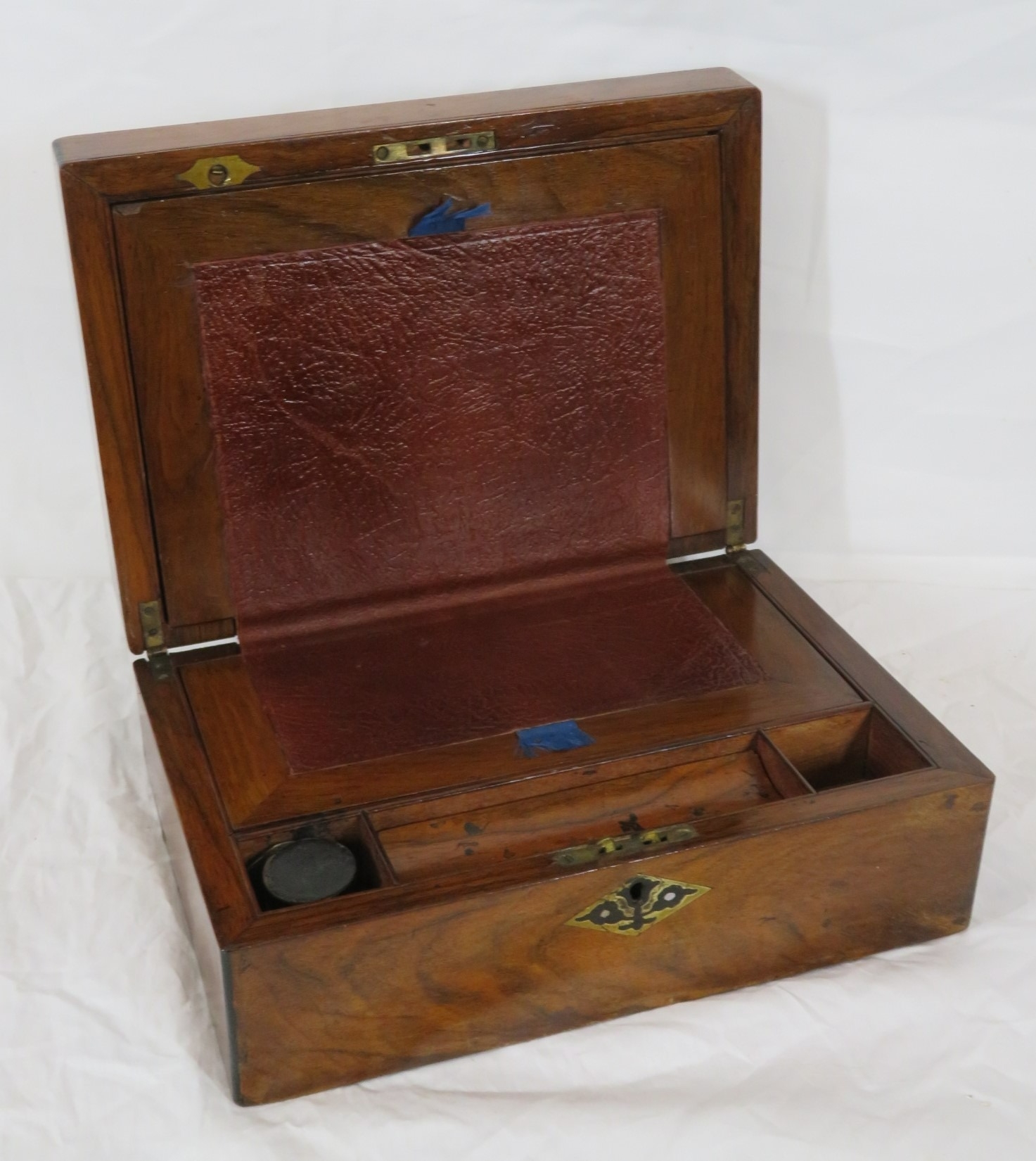 Edwardian inlaid mahogany fold-out writing slope with fitted & leather lined interior
