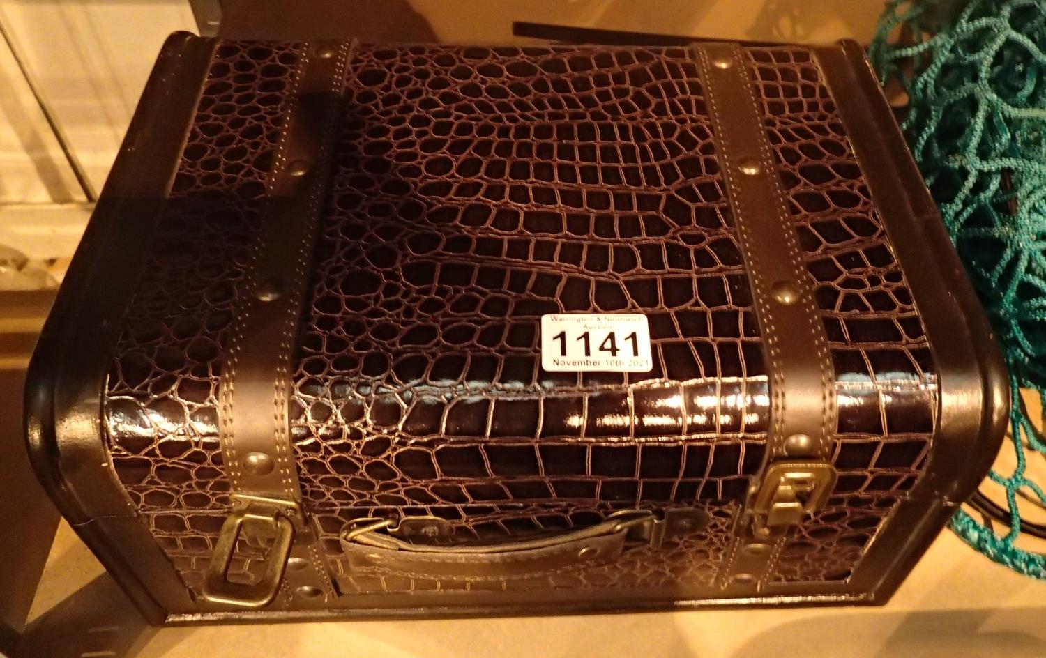 Crocodile effect small jewellery storage suitcase. Not available for in-house P&P, contact Paul O'Hea at Mailboxes on 01925 659133