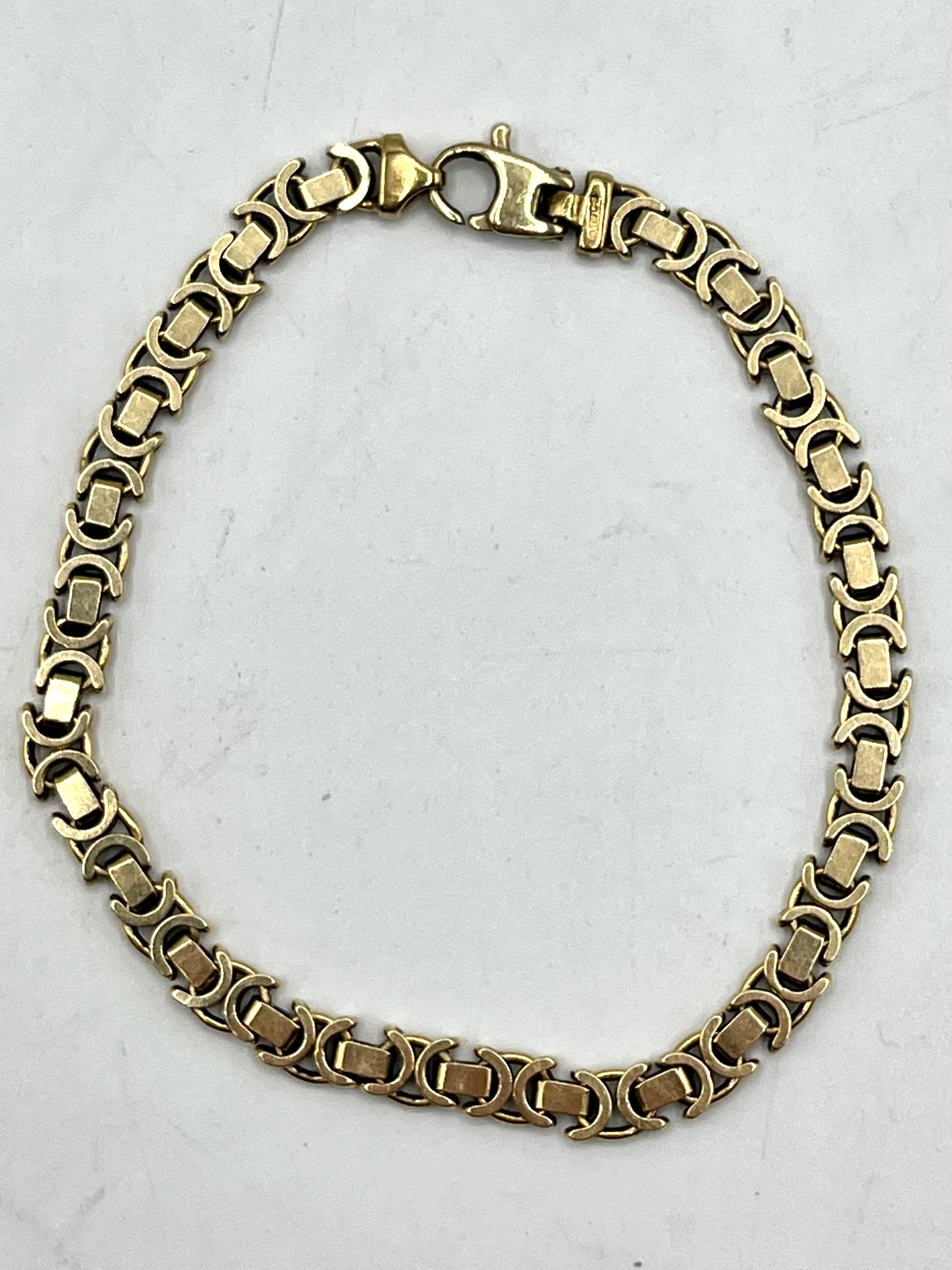 A 9ct gold flat fancy link bracelet 18cm. 8.8g