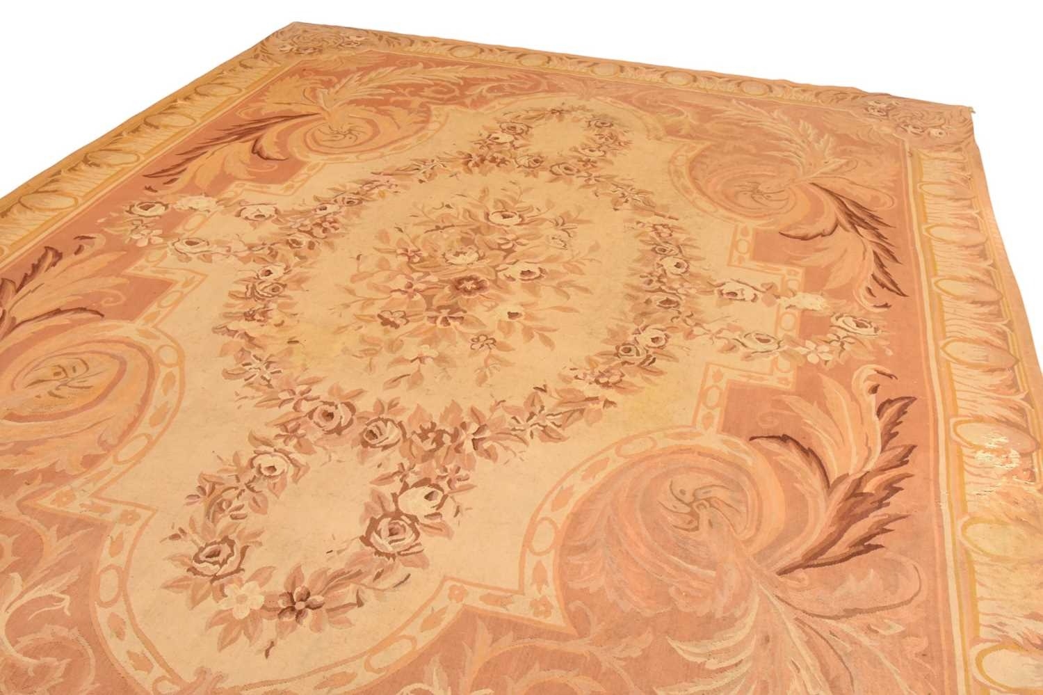 A French Aubusson style carpet Late 19th century The central floral motif on a cream ground, flanked by acanthus foliage, all within a formal 'egg and acanthus' border. 362cm x 262cm