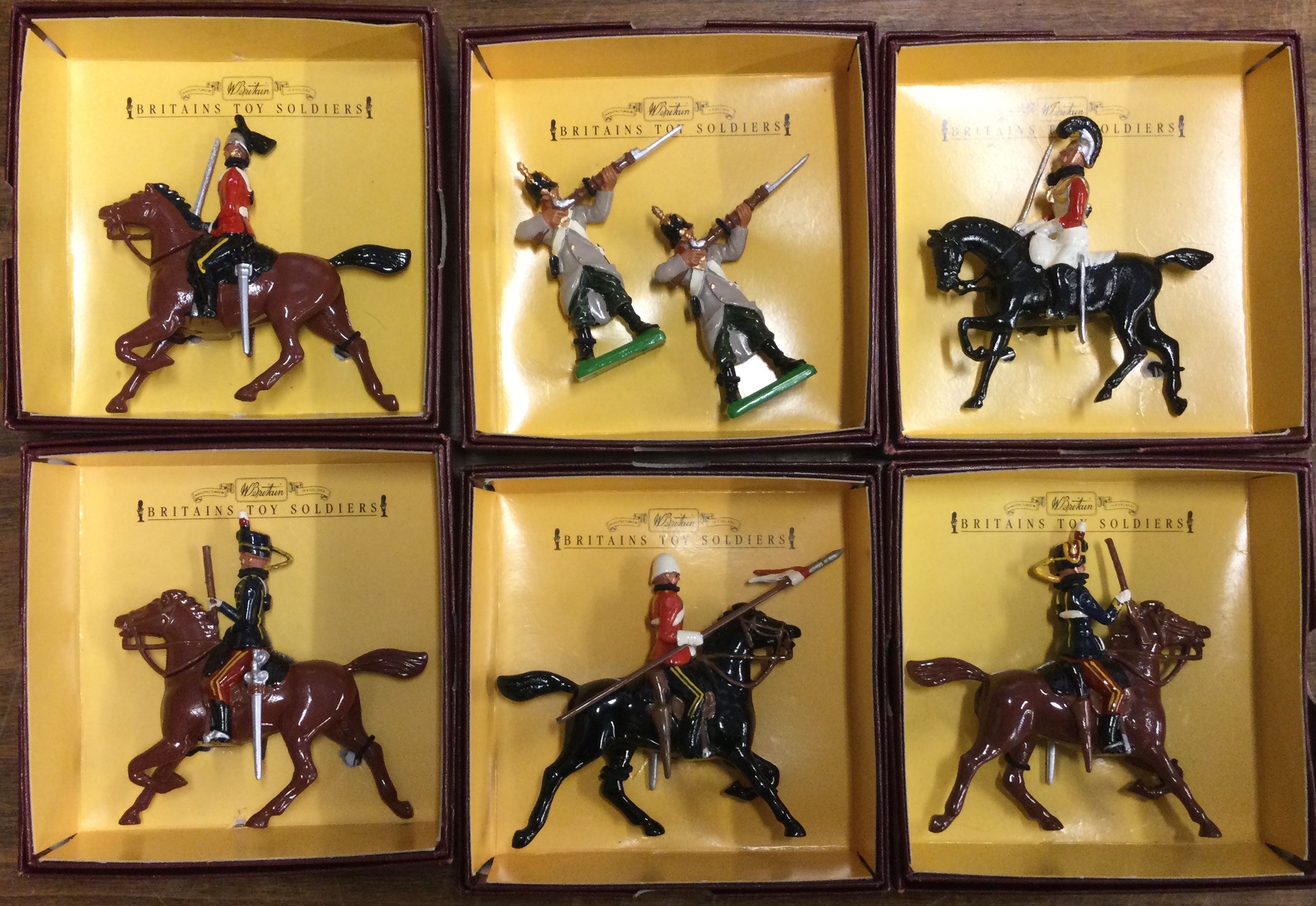 BRITAINS: Six boxed soldiers on horseback. Est. £20 - £30.