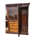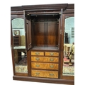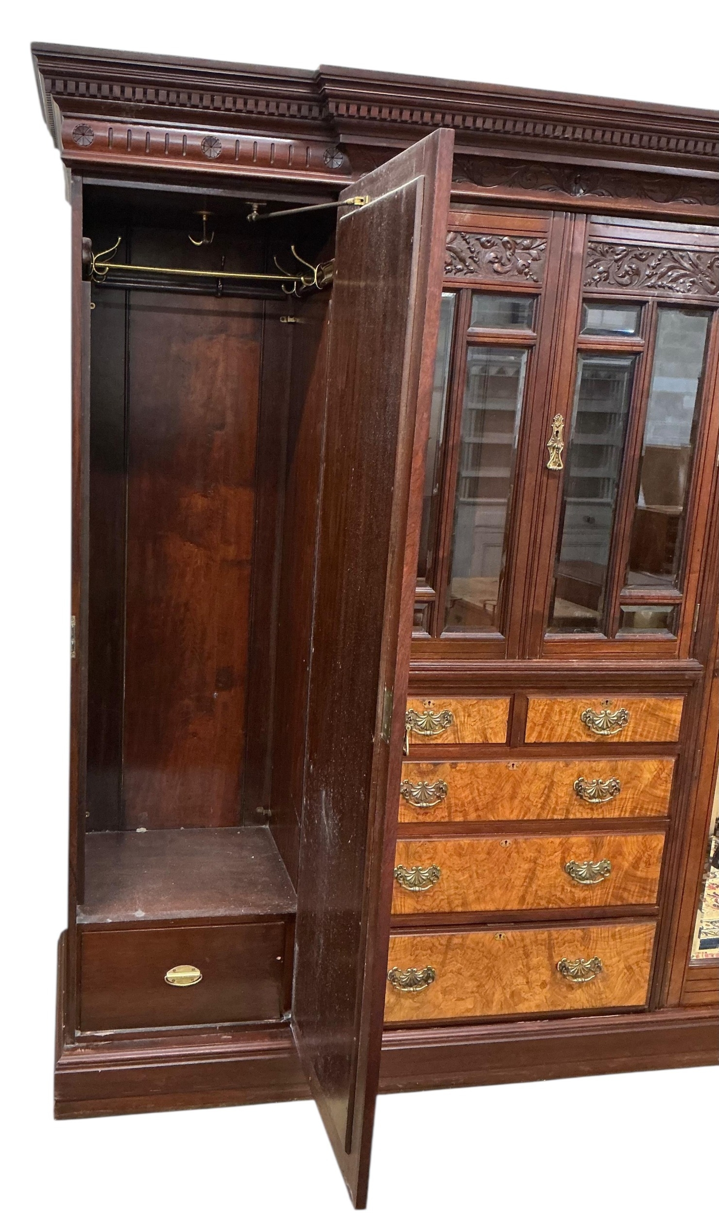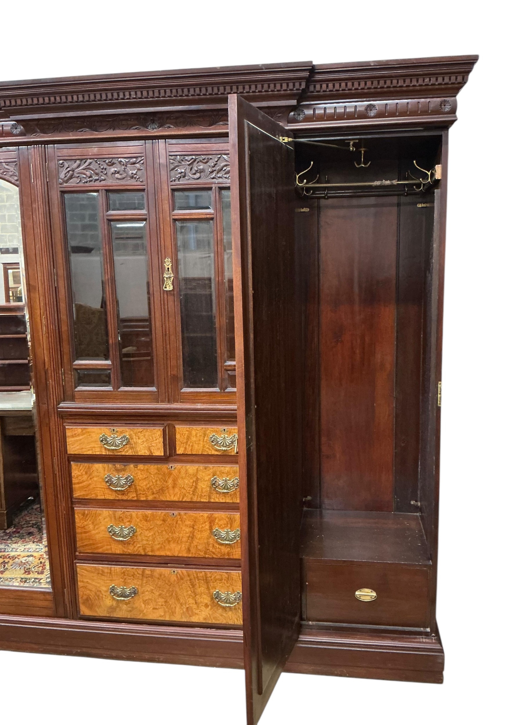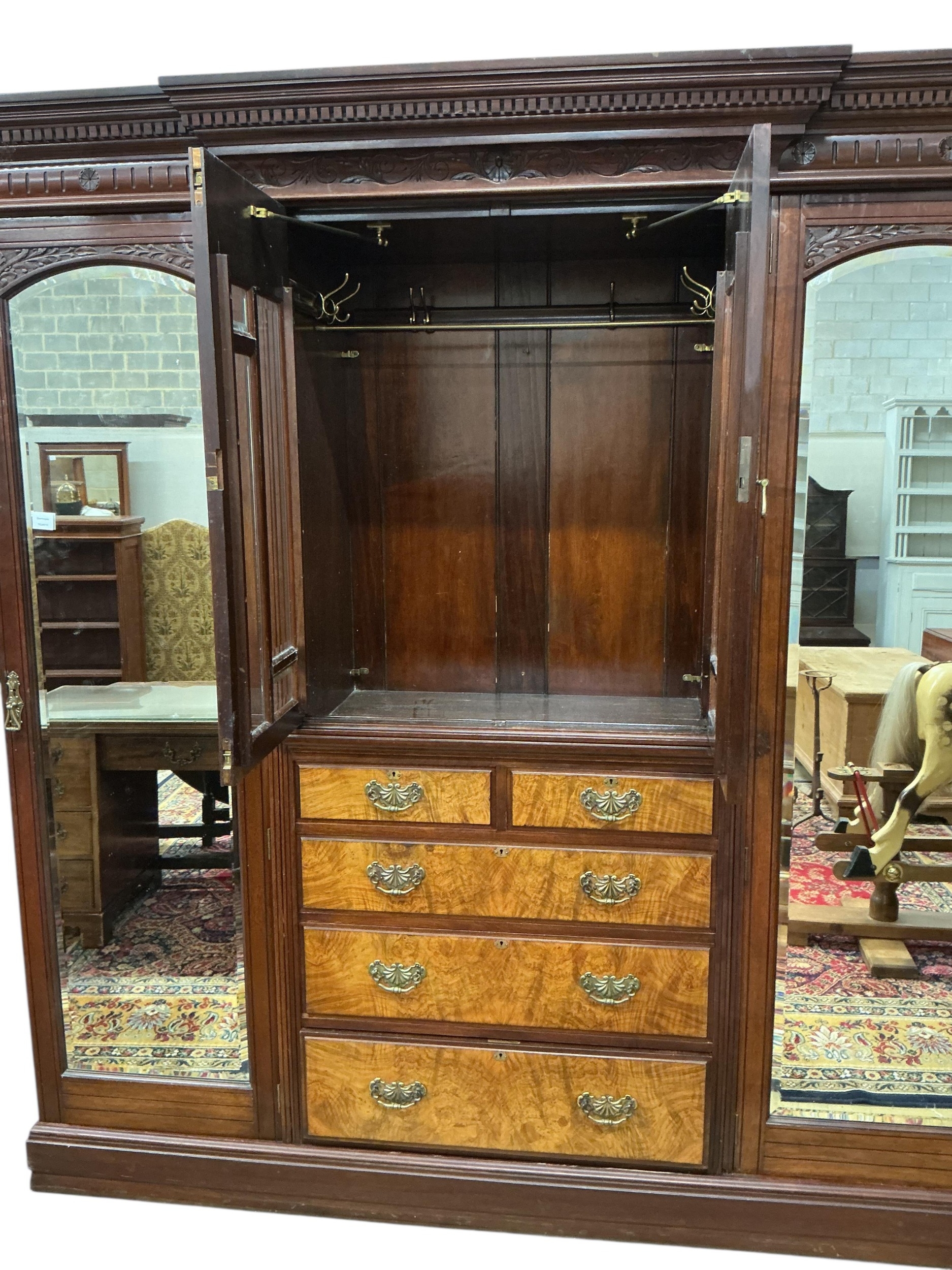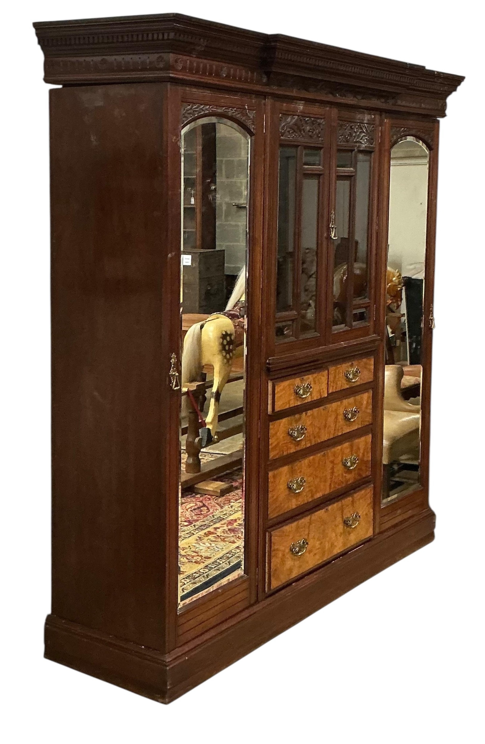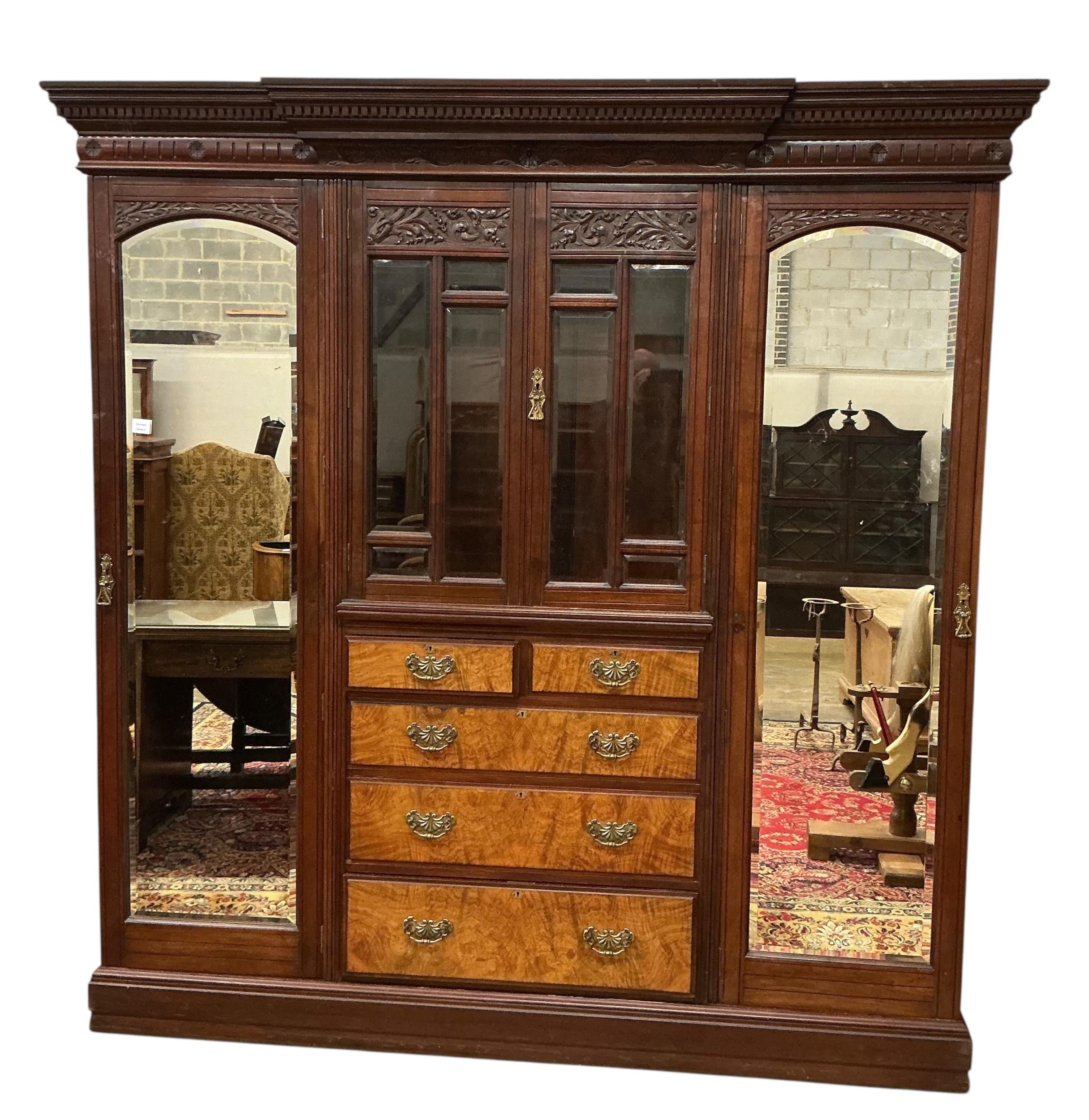A late Victorian carved mahogany mirrored wardrobe, width 208cm, depth 60cm, height 218cm