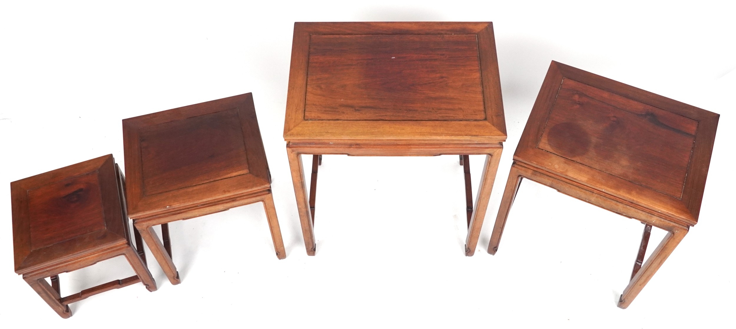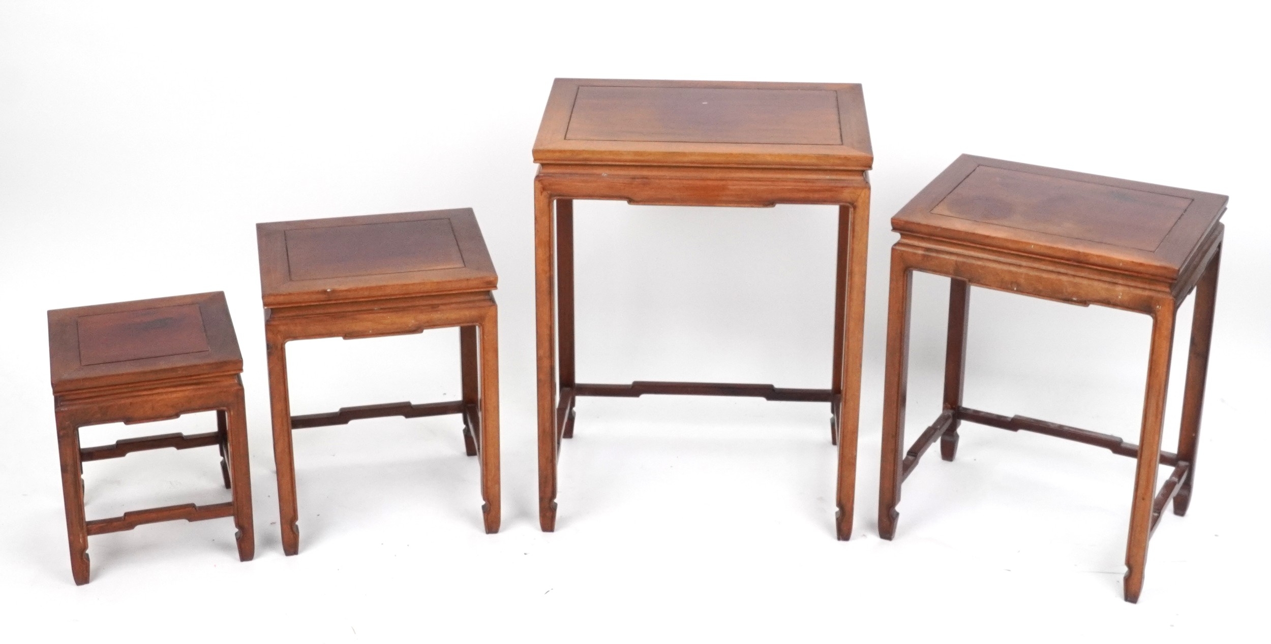 A Chinese hardwood quartetto nest of occasional tables, 20th century, raised on block legs, 65cm H x 51cm W x 35cm D.