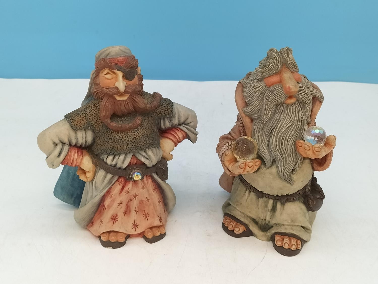 Krystonia Graffyn Grumblypeg Pirate Figure plus a Rueggan Wizard/Troll Figure. Tallest 16cm high. Some Faults Noted.