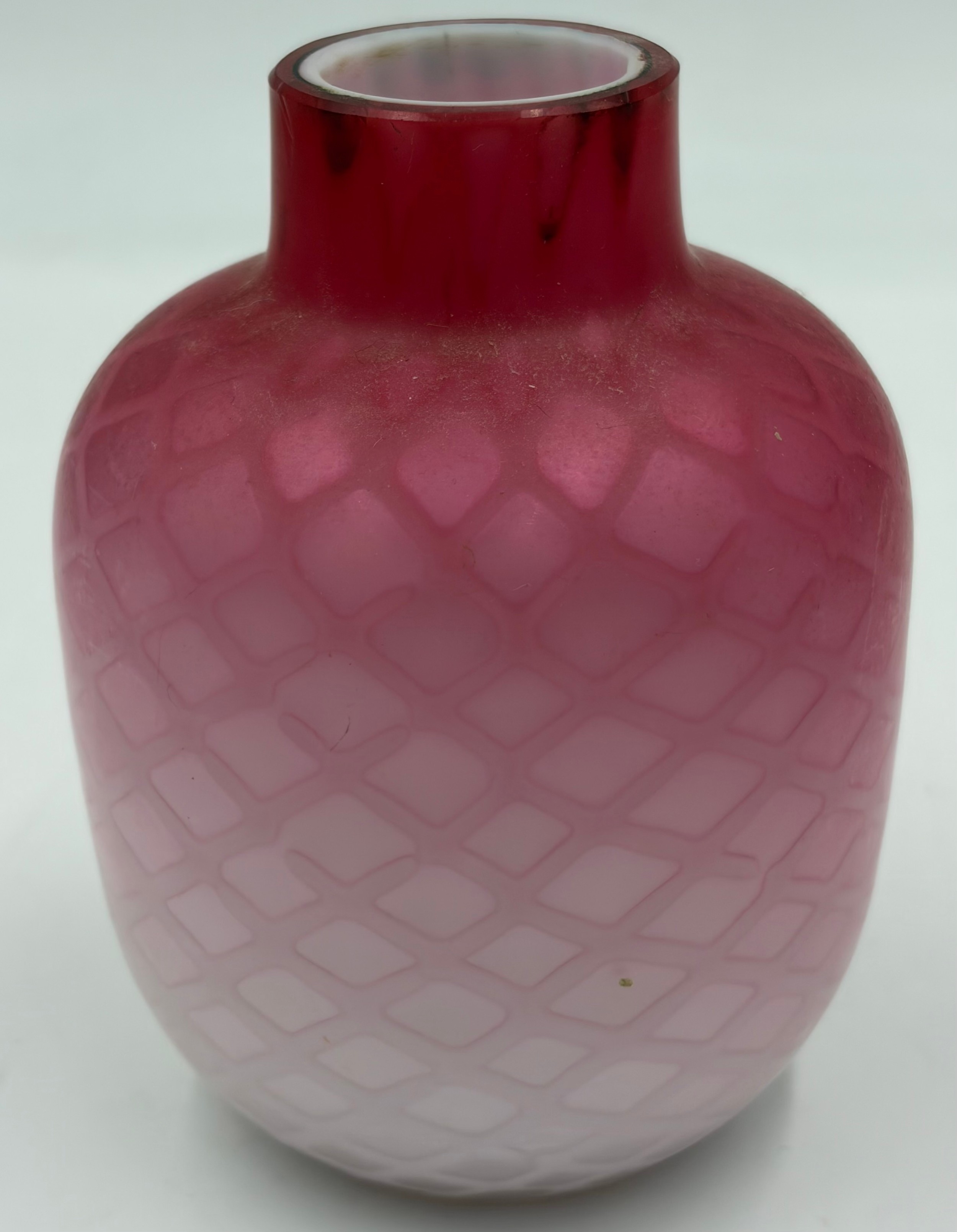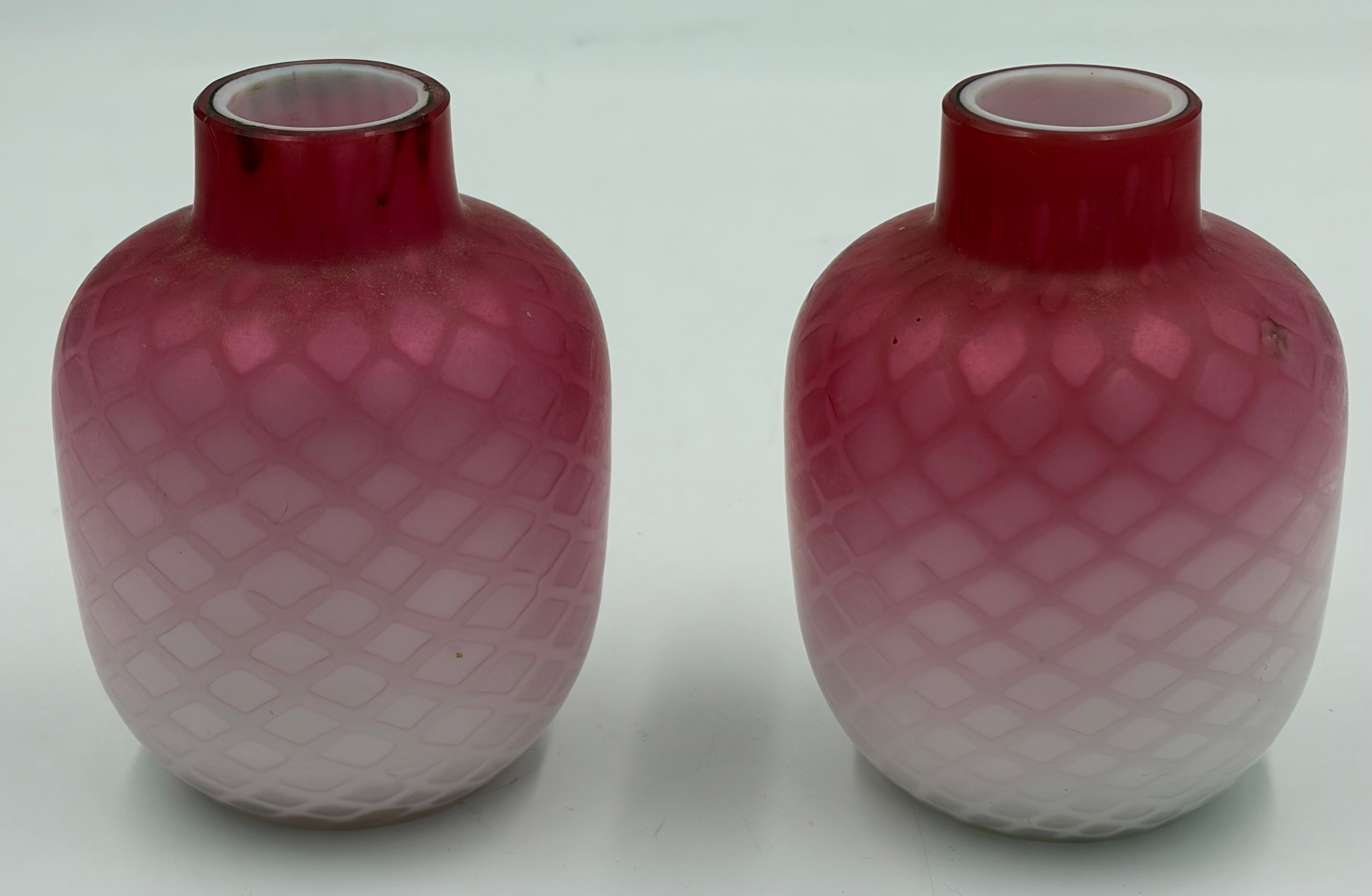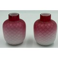 A pair of 19thC satin glass, mother of pearl vases possibly Thomas Webb & Sons.