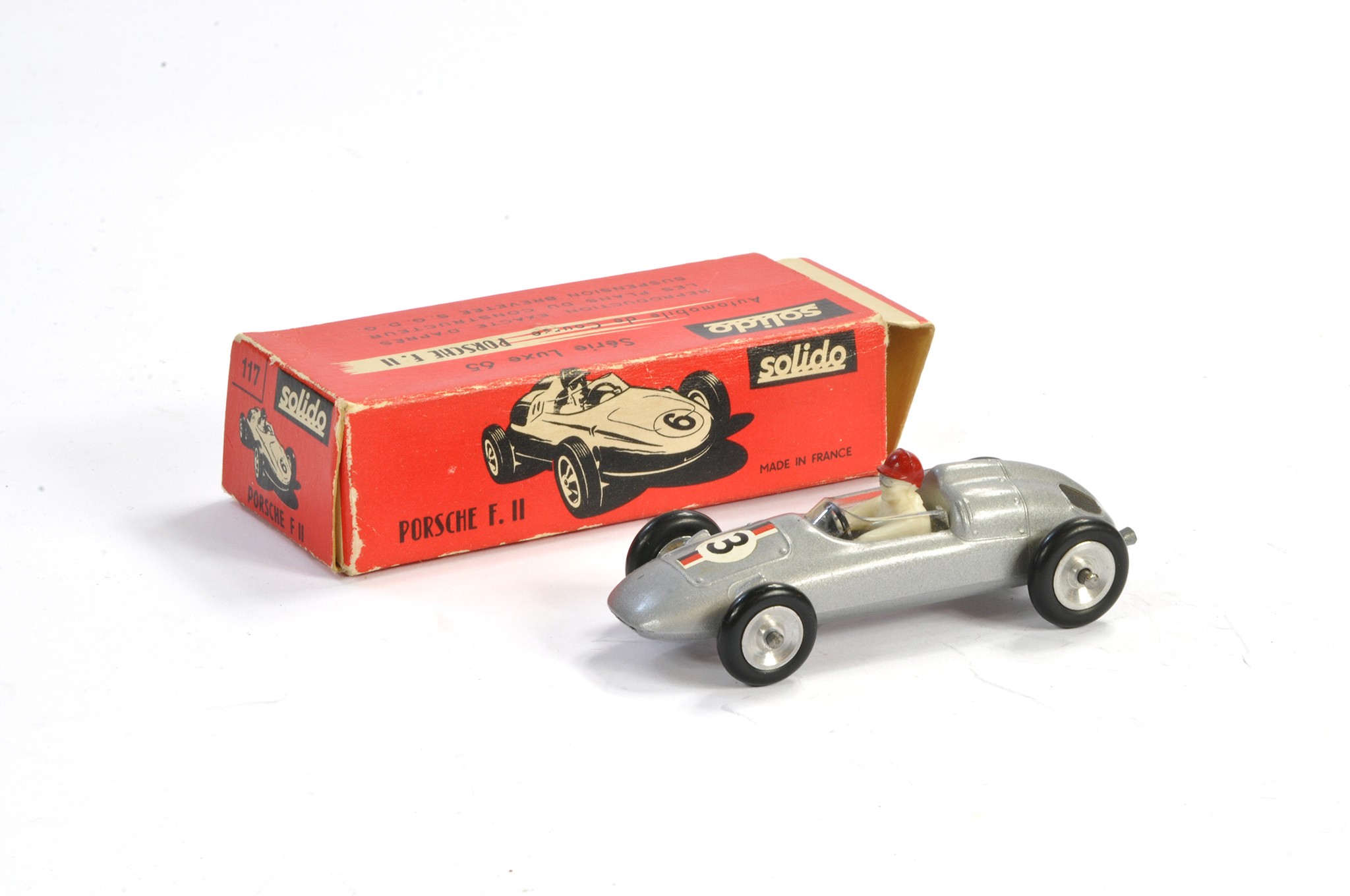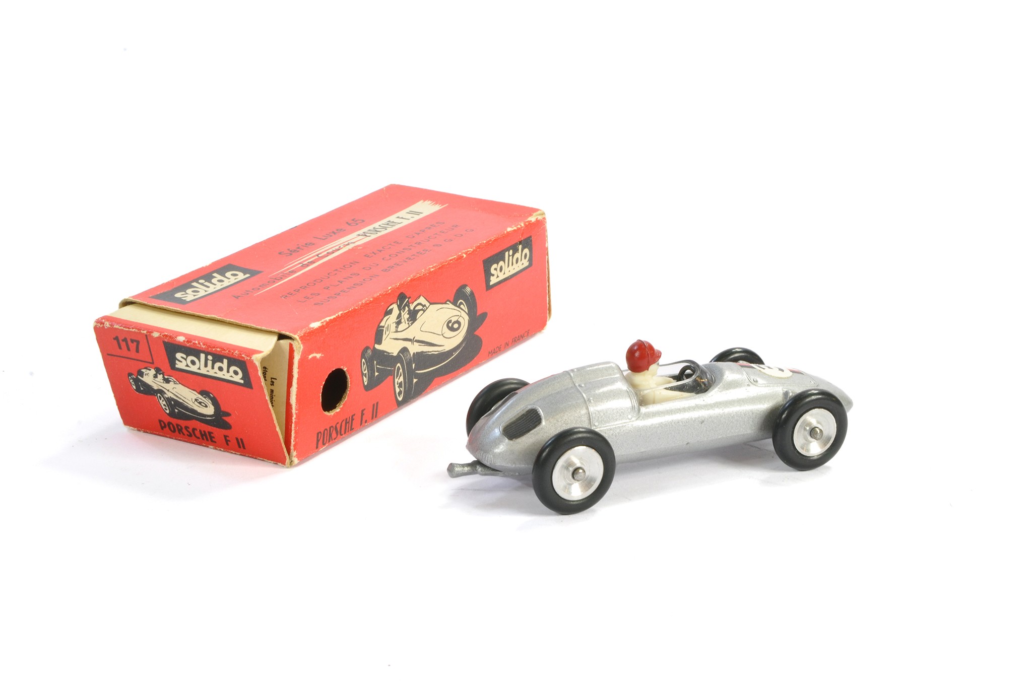 Solido No. 117 Porsche F.II Racing Car. Metallic silver. Generally excellent, little sign of wear in good to very good original box.