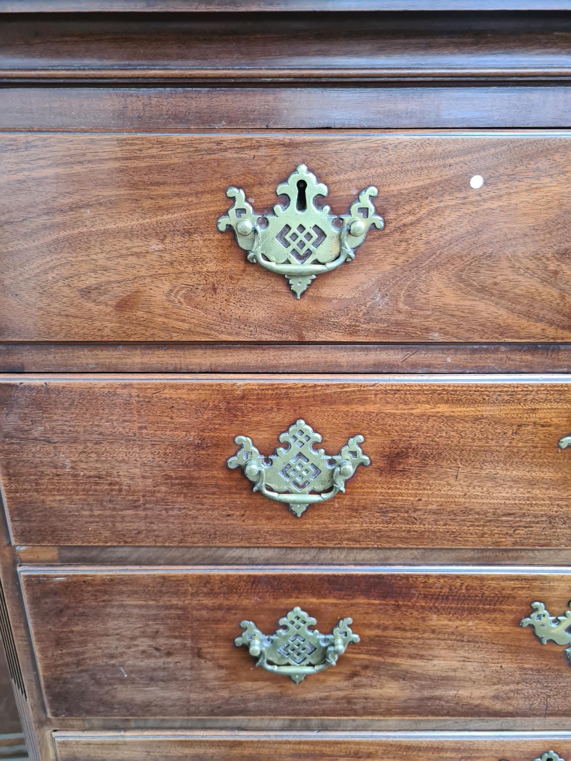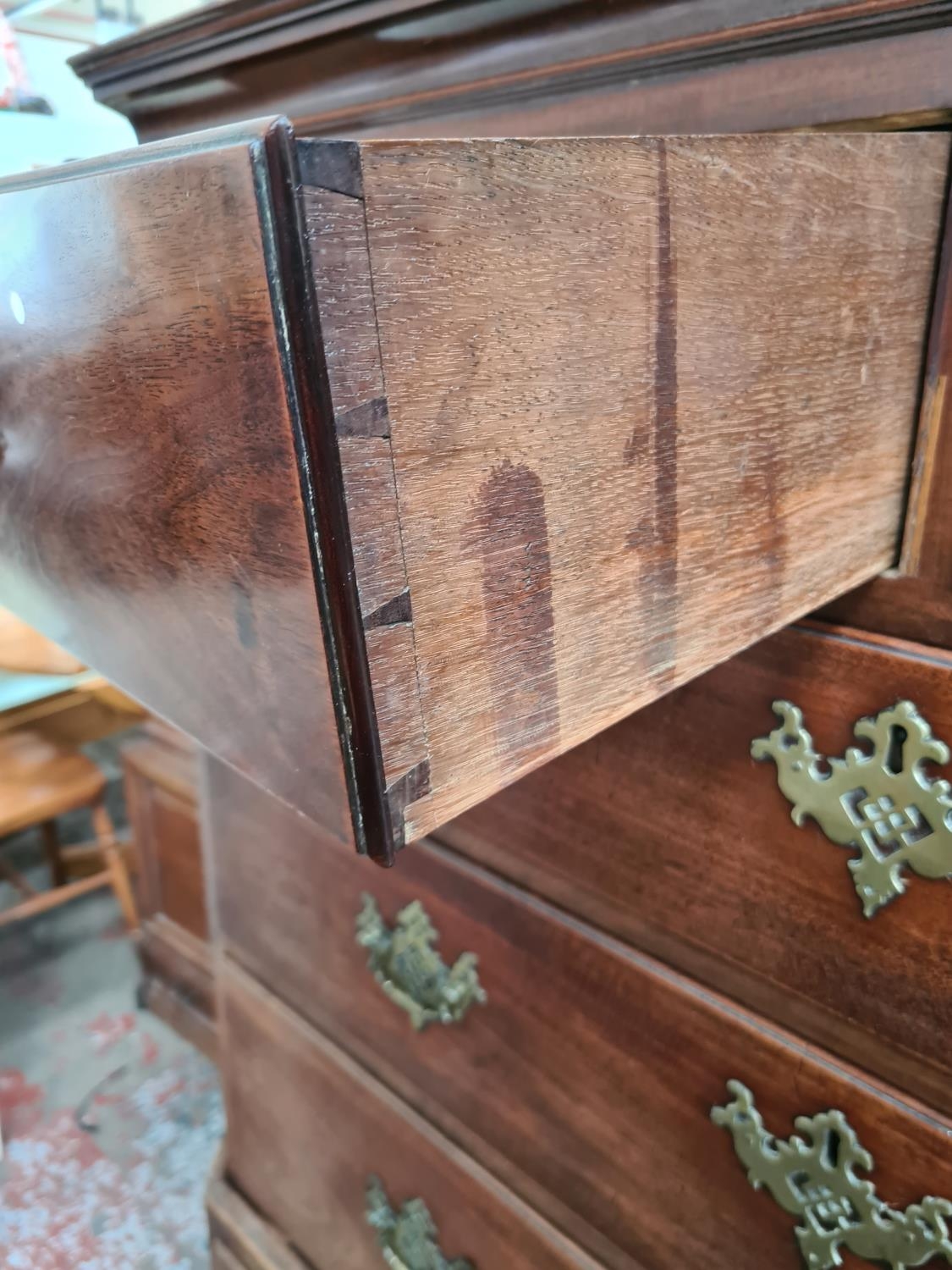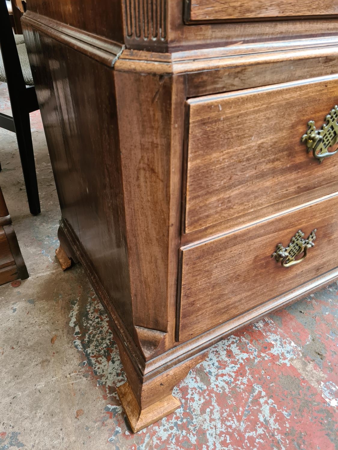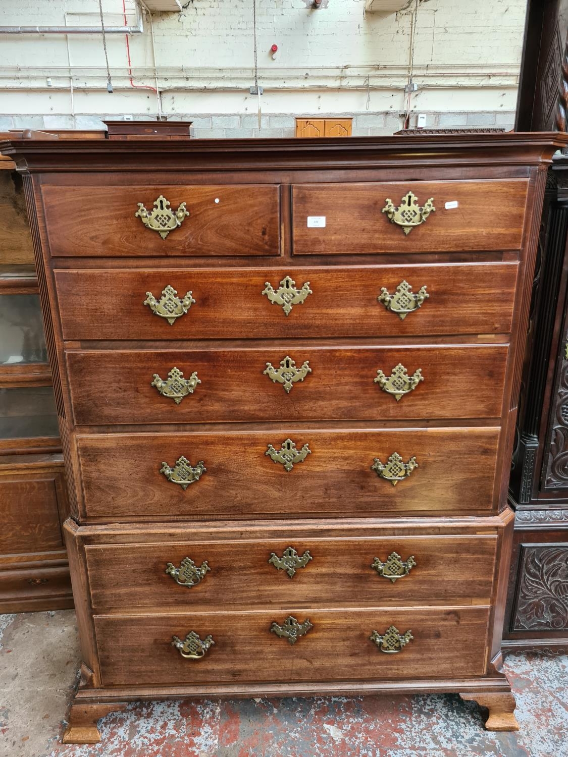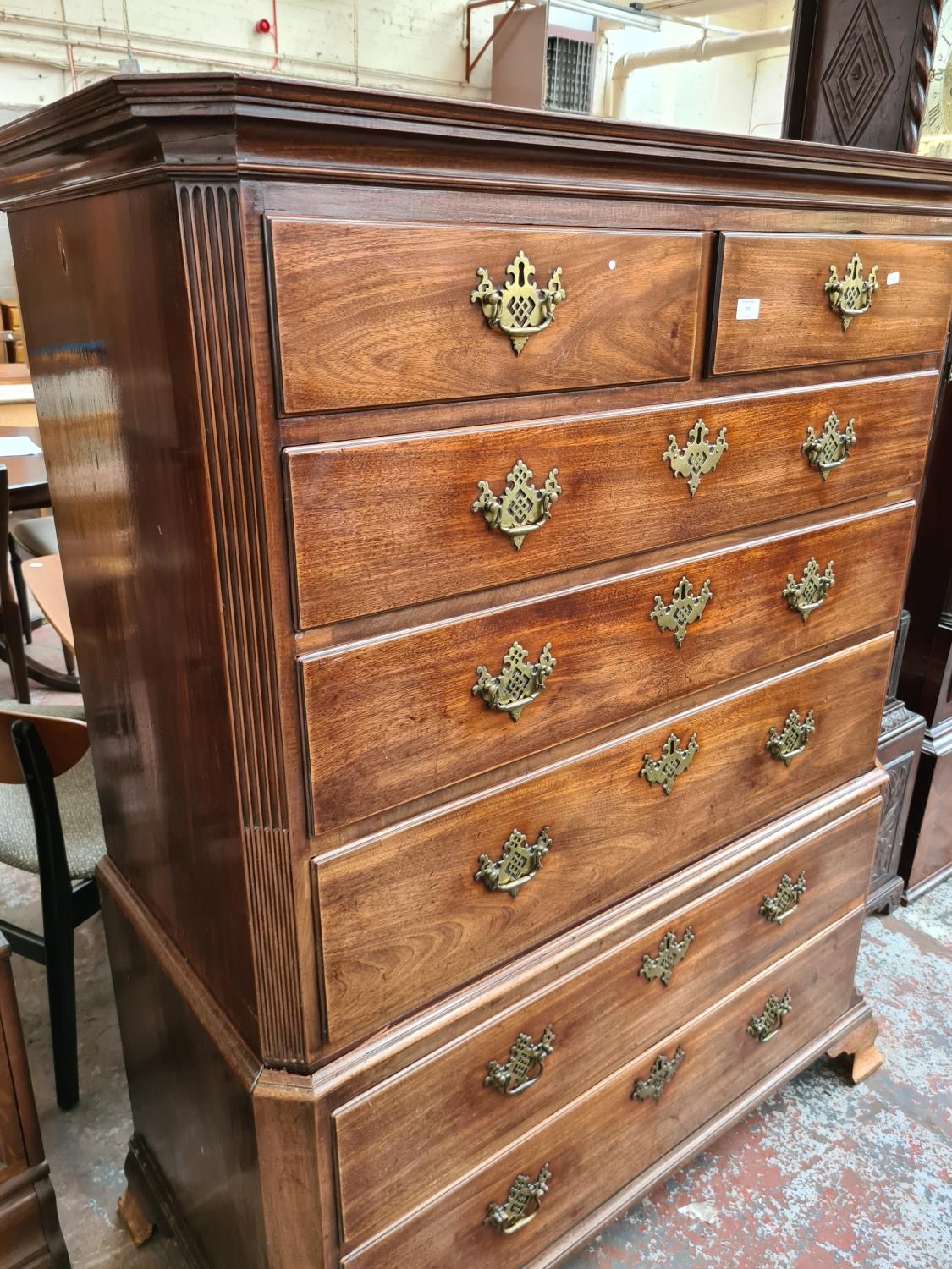 An impressive George III mahogany chest on chest with two short over five long drawers, original brass handles and estucheons supported on four bracket feet - measuring approx 156cm in height, 123cm in width and 57.5cm in depth