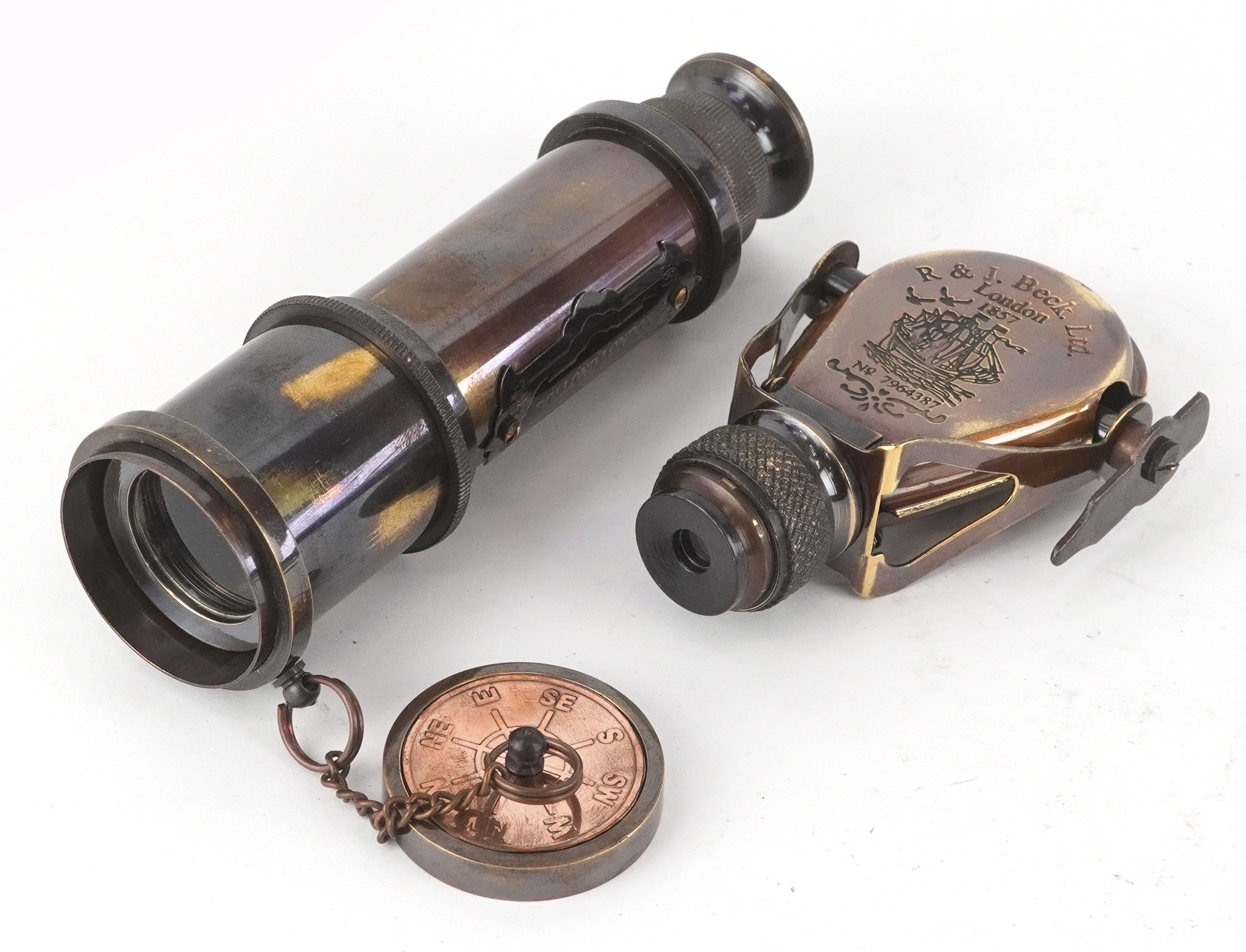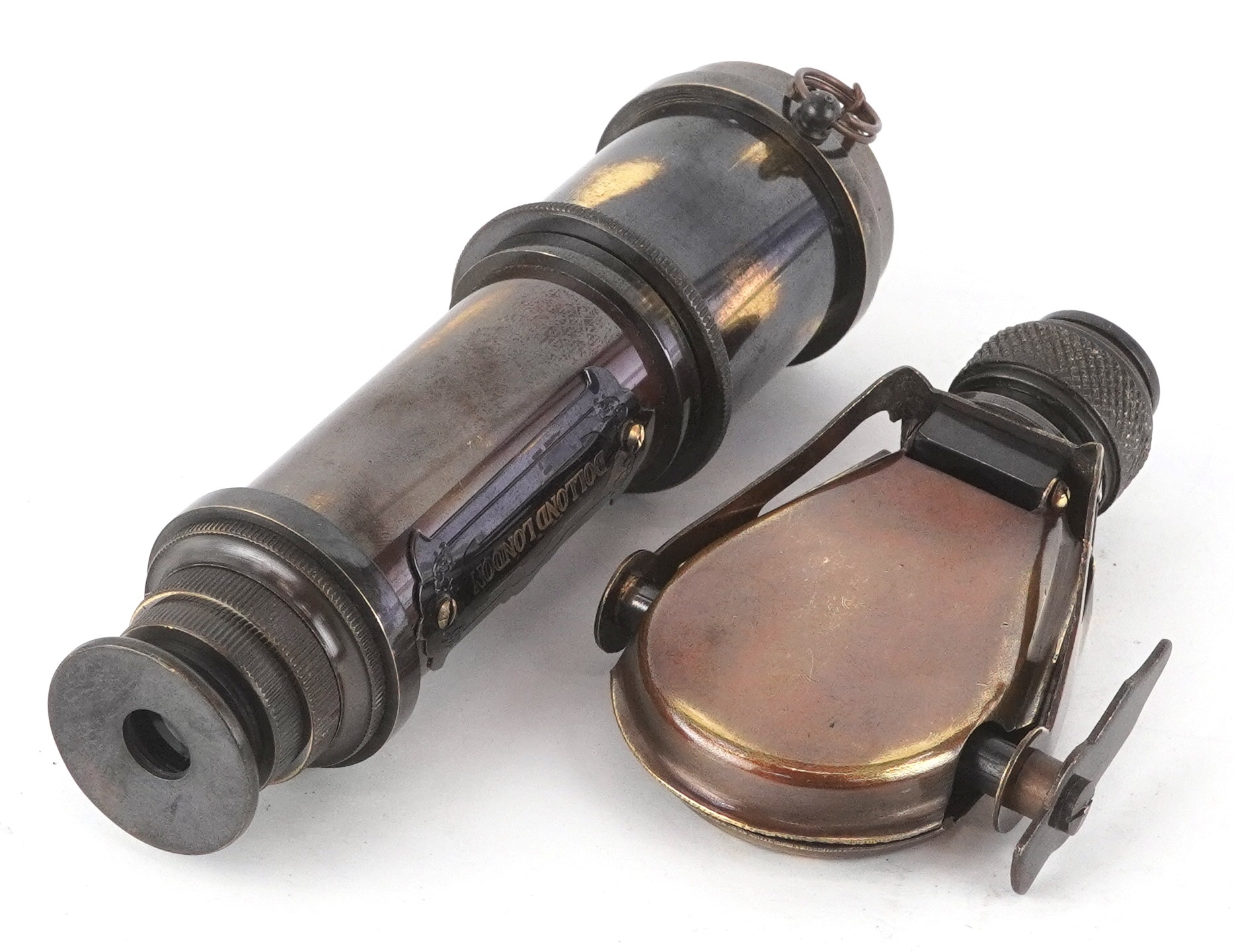 A naval interest telescope and monocular, the telescope 39cm in length.