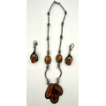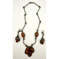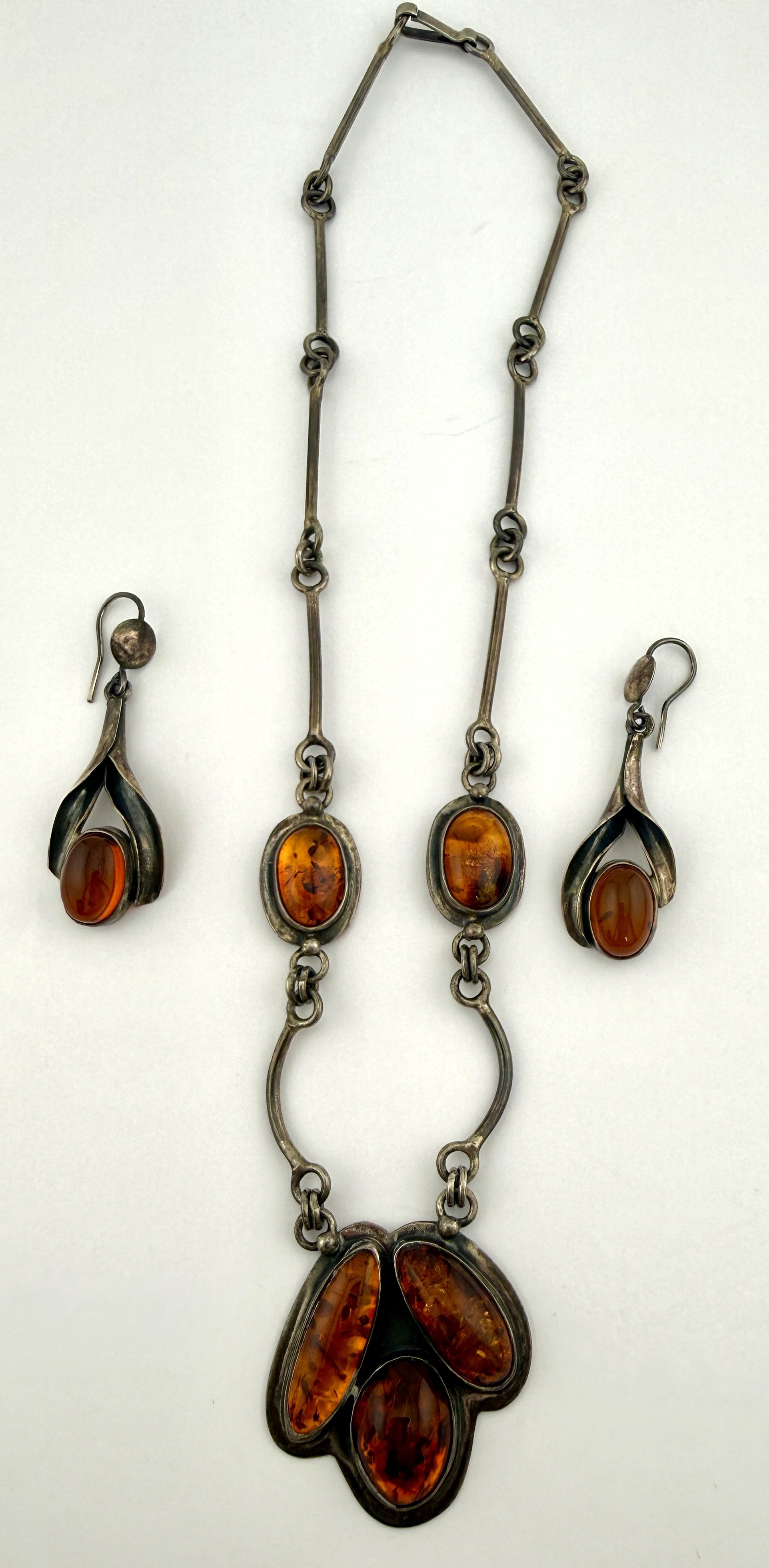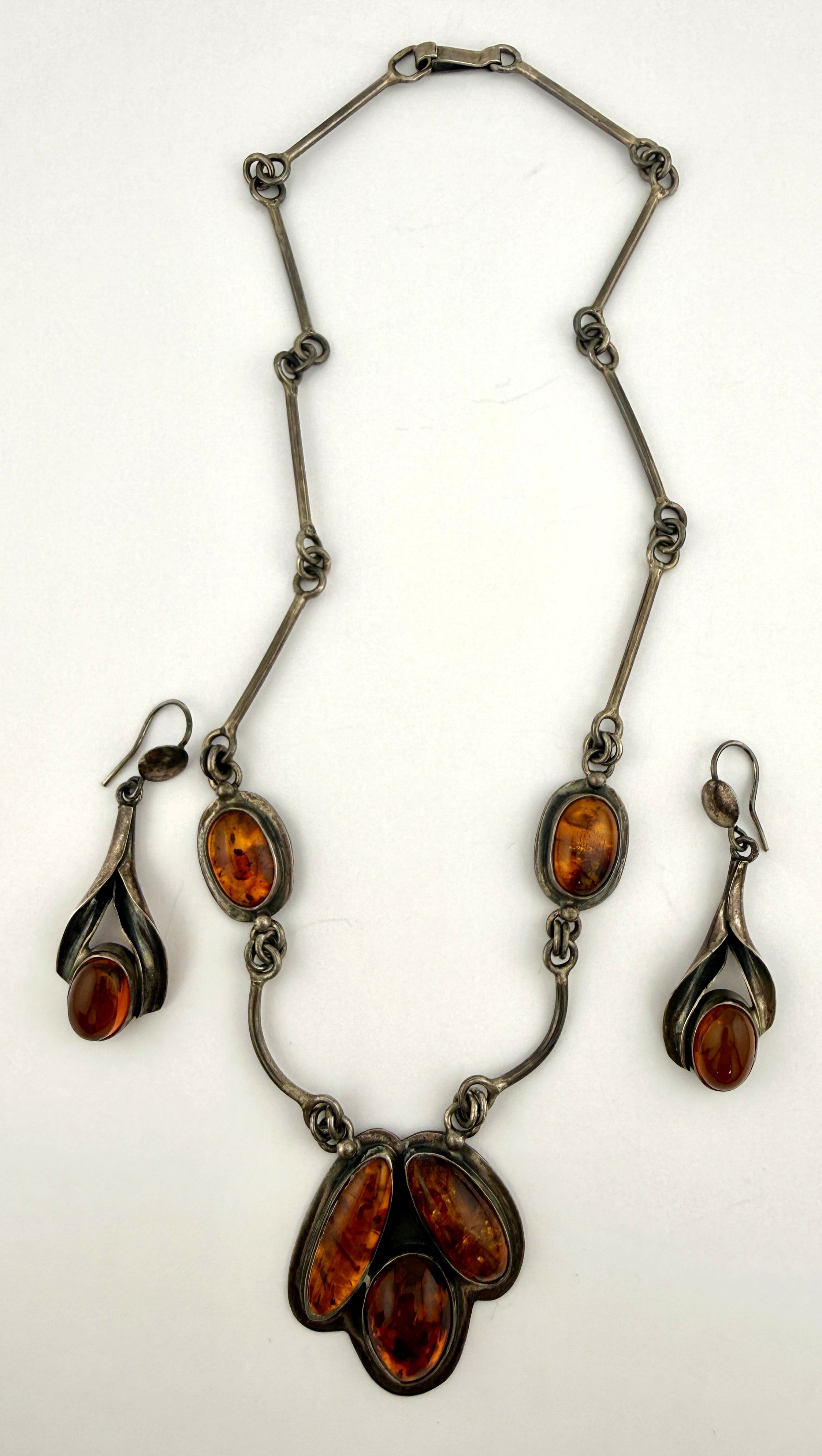 A Norman Grant sterling silver and amber necklace and earrings. Necklace 48cm l.