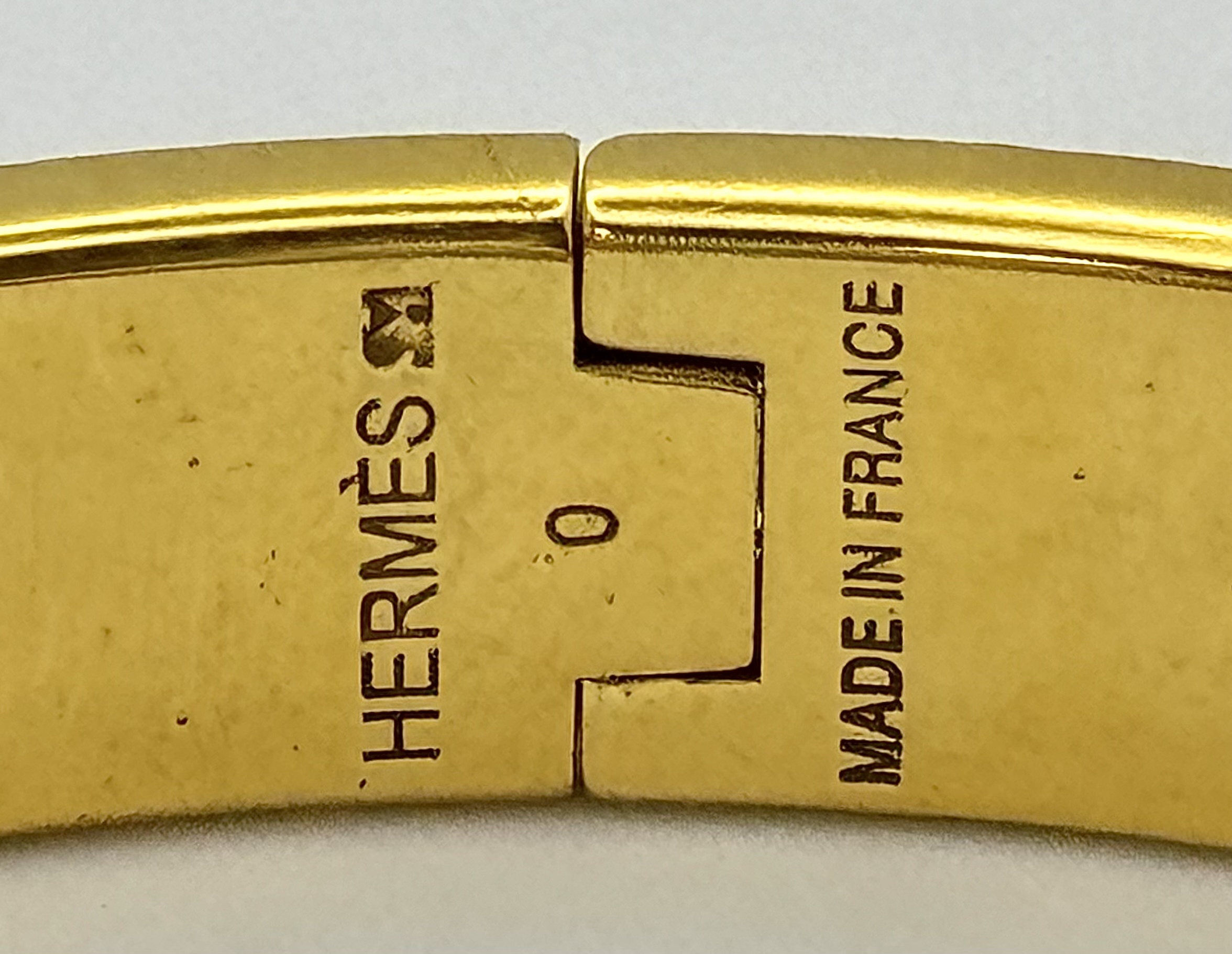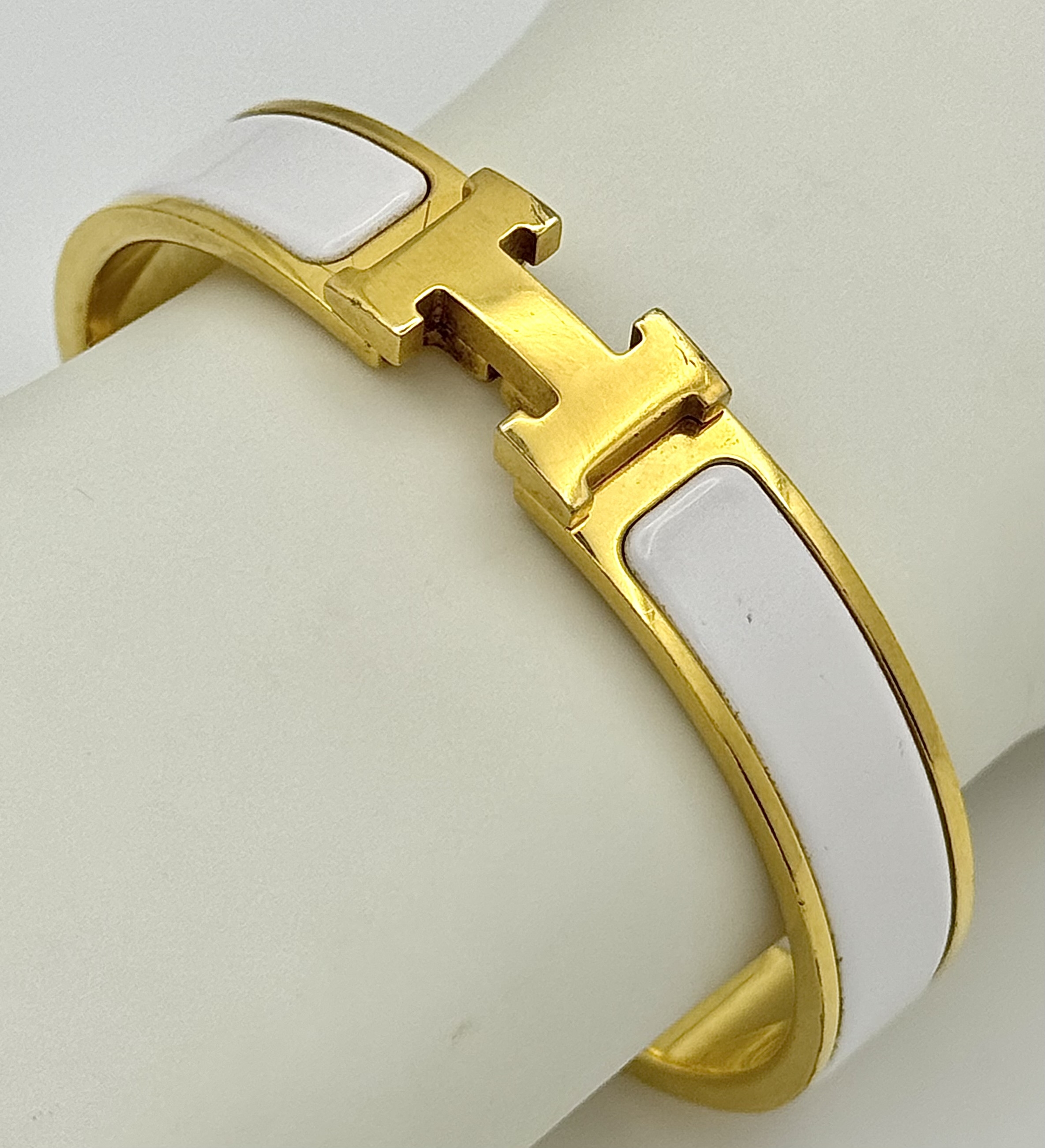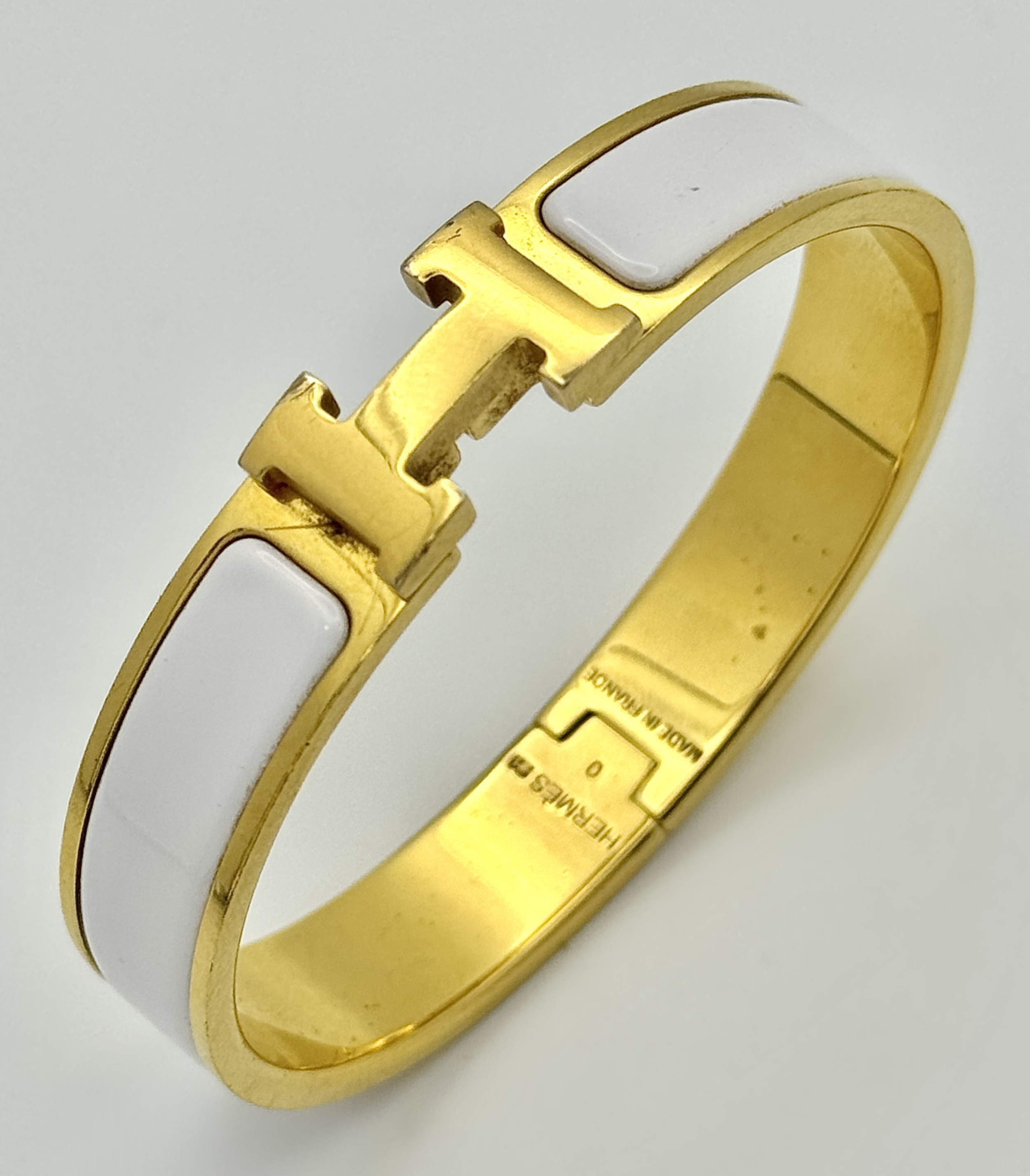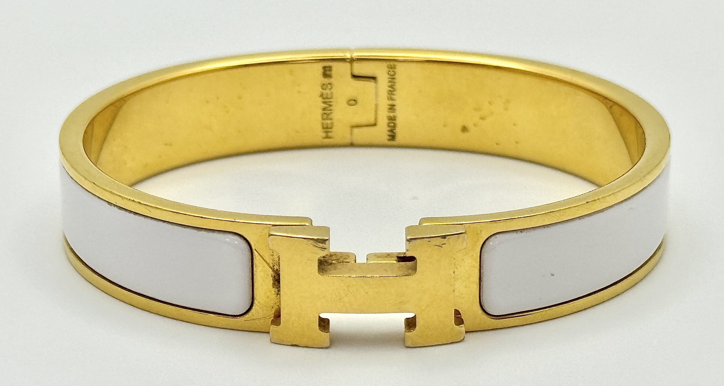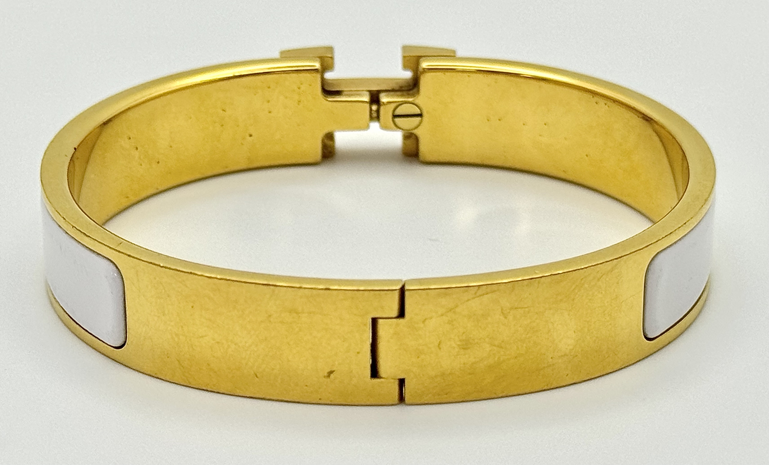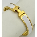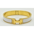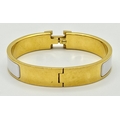 An Hermes Gilded and White Enamel Bangle. 12mm width. Ref: STK024264