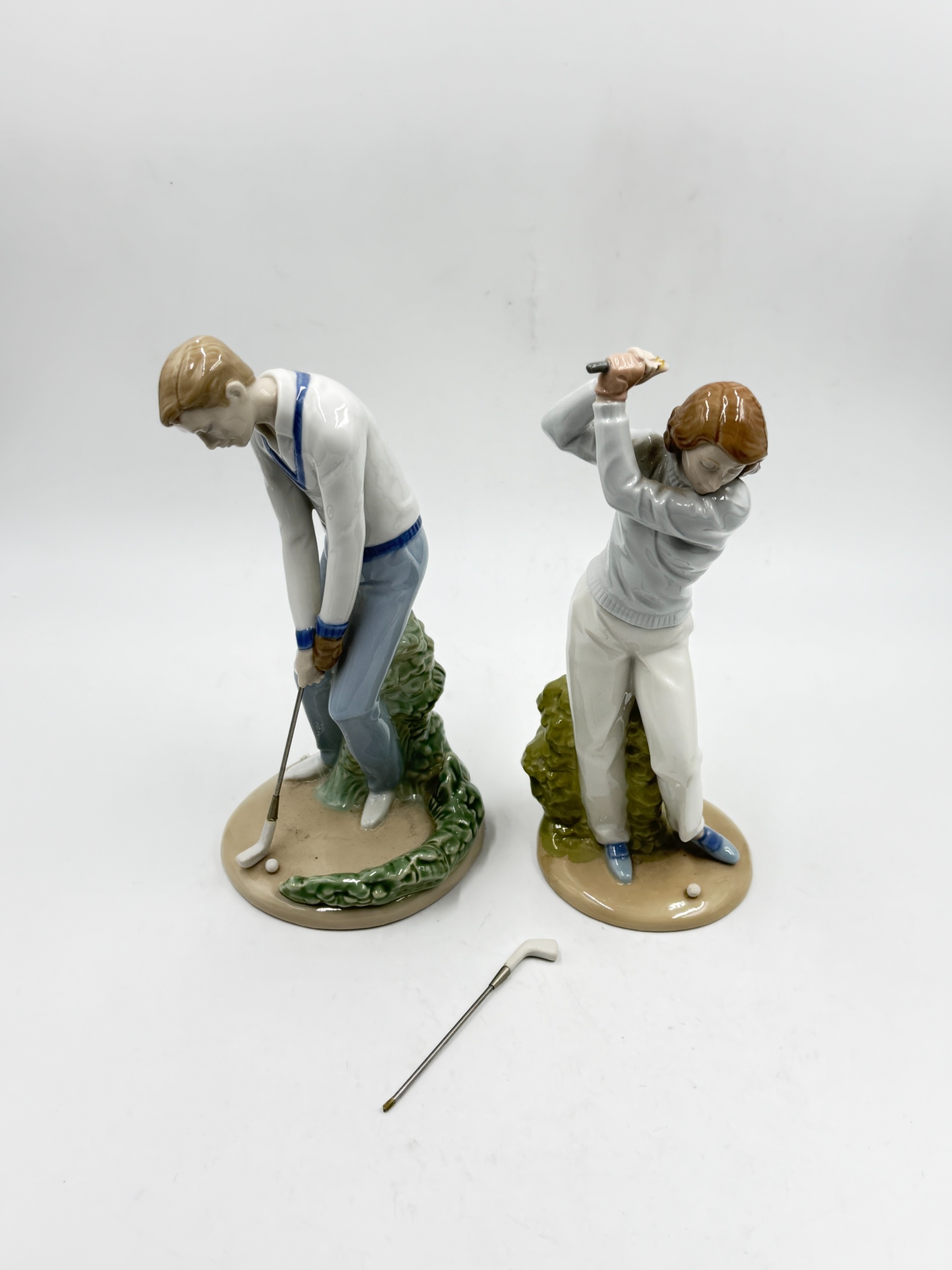 Both the Royal Doulton figurines are second quality, one Nadal golfer is in need of restoration and the Beswick horse needs reattaching to plinth.
