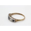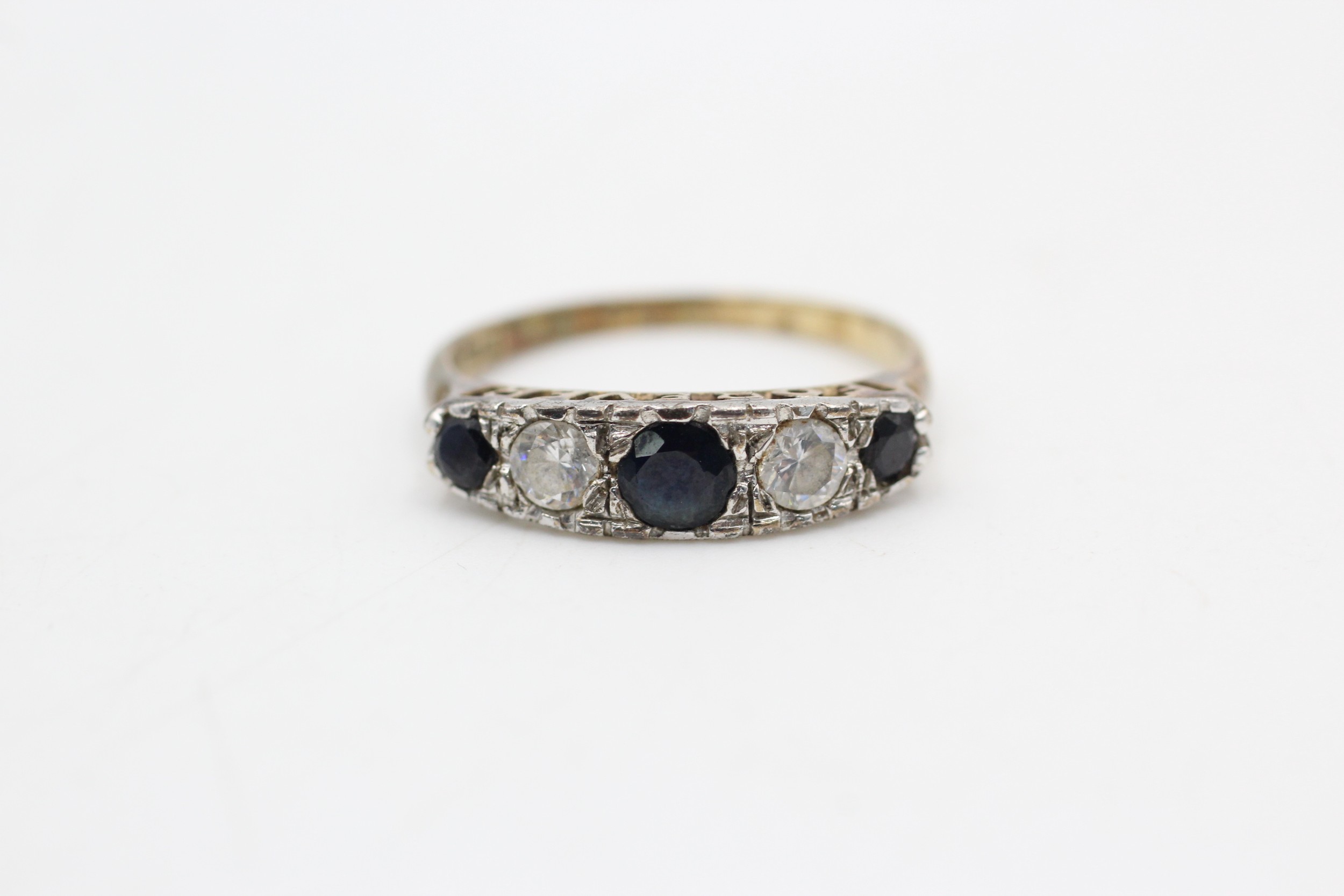 9ct gold vintage sapphire & clear gemstone five stone gypsy setting ring (2.6g)