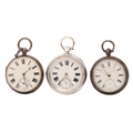Three silver lever watches, circa 5.5cm diam, Birmingham 1897 and Chester 1877 and 1880