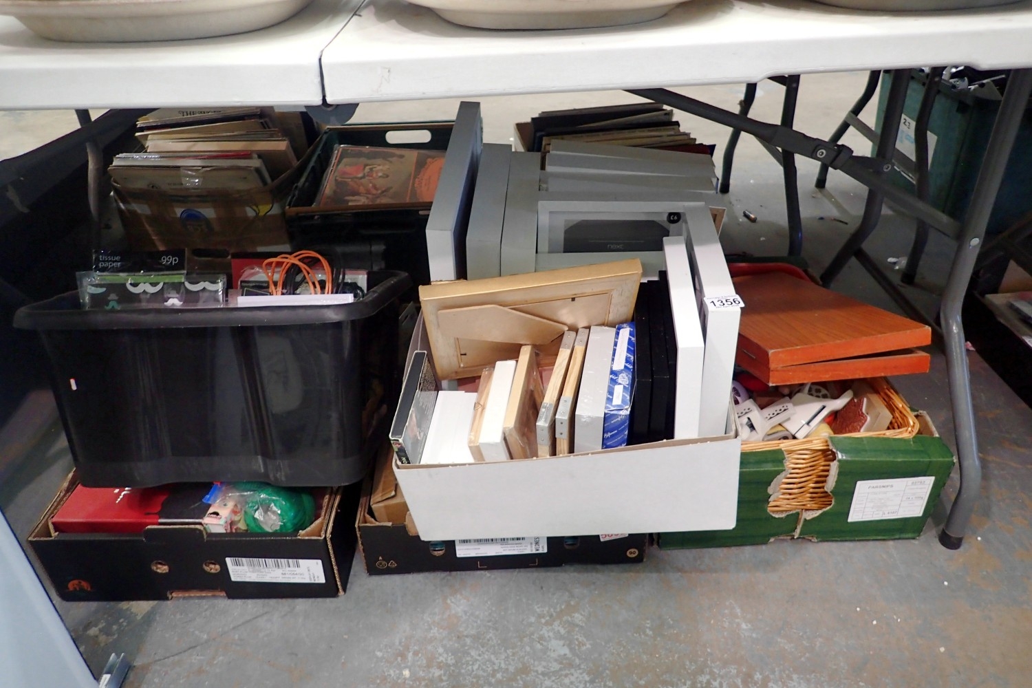 Five boxes of crafting items includes peel offs, buttons and picture frames. Not available for in-house P&P