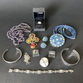 Various costume jewellery including a white metal bracelet and chain
