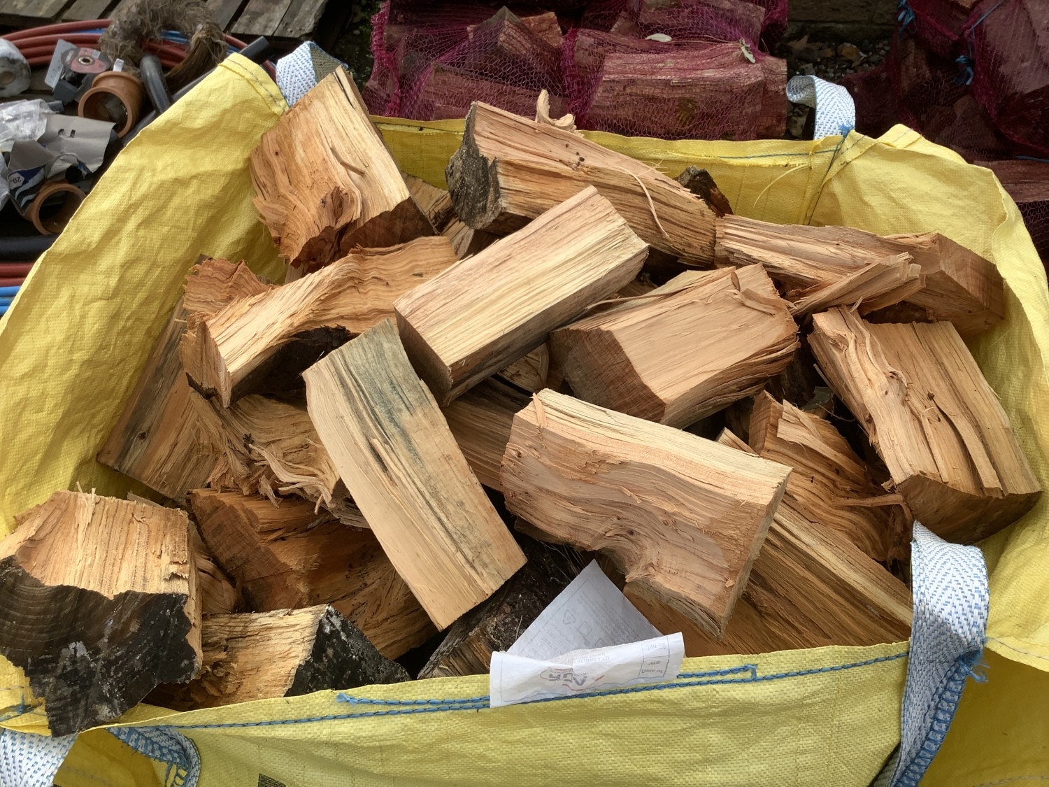 A bulk bag of logs