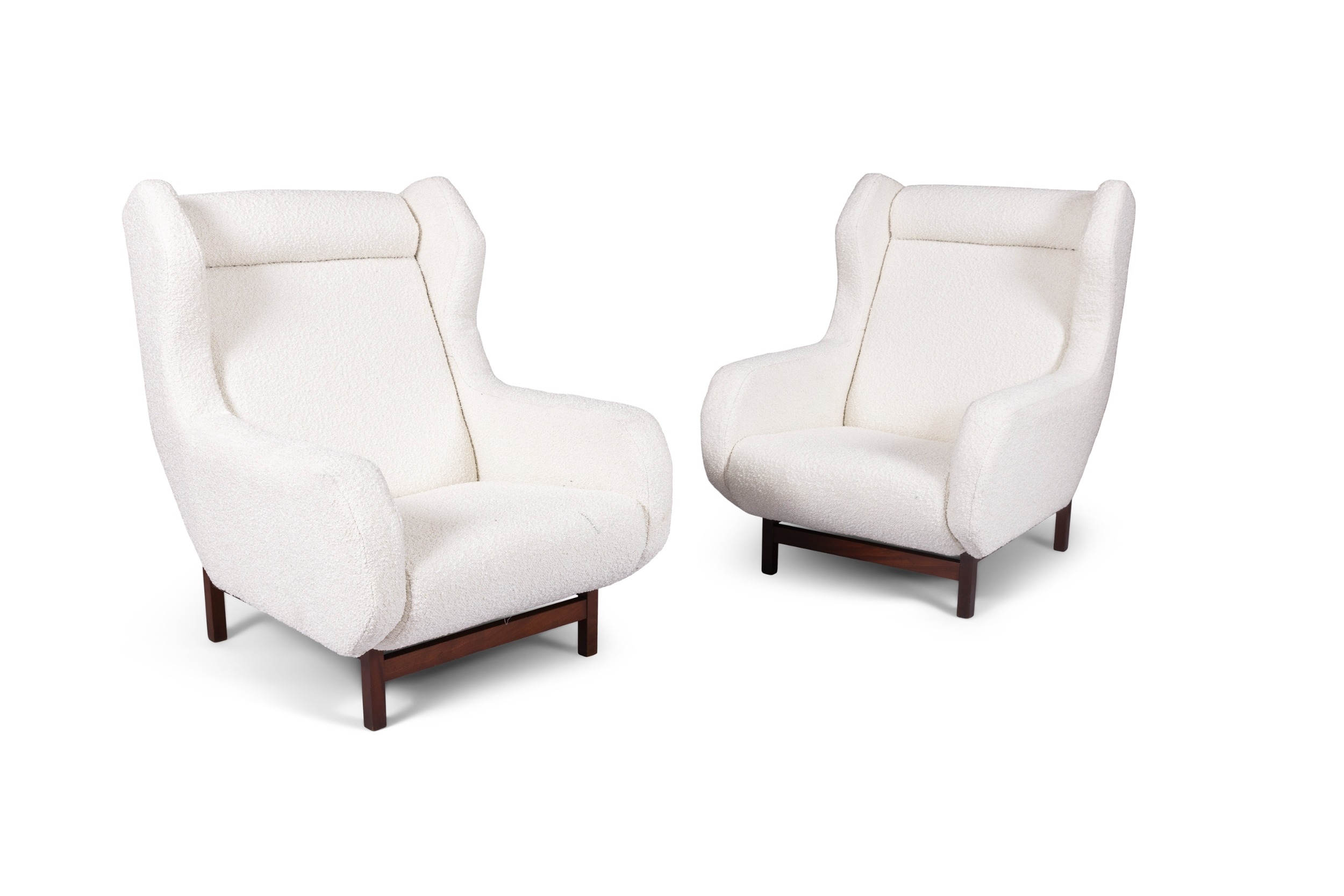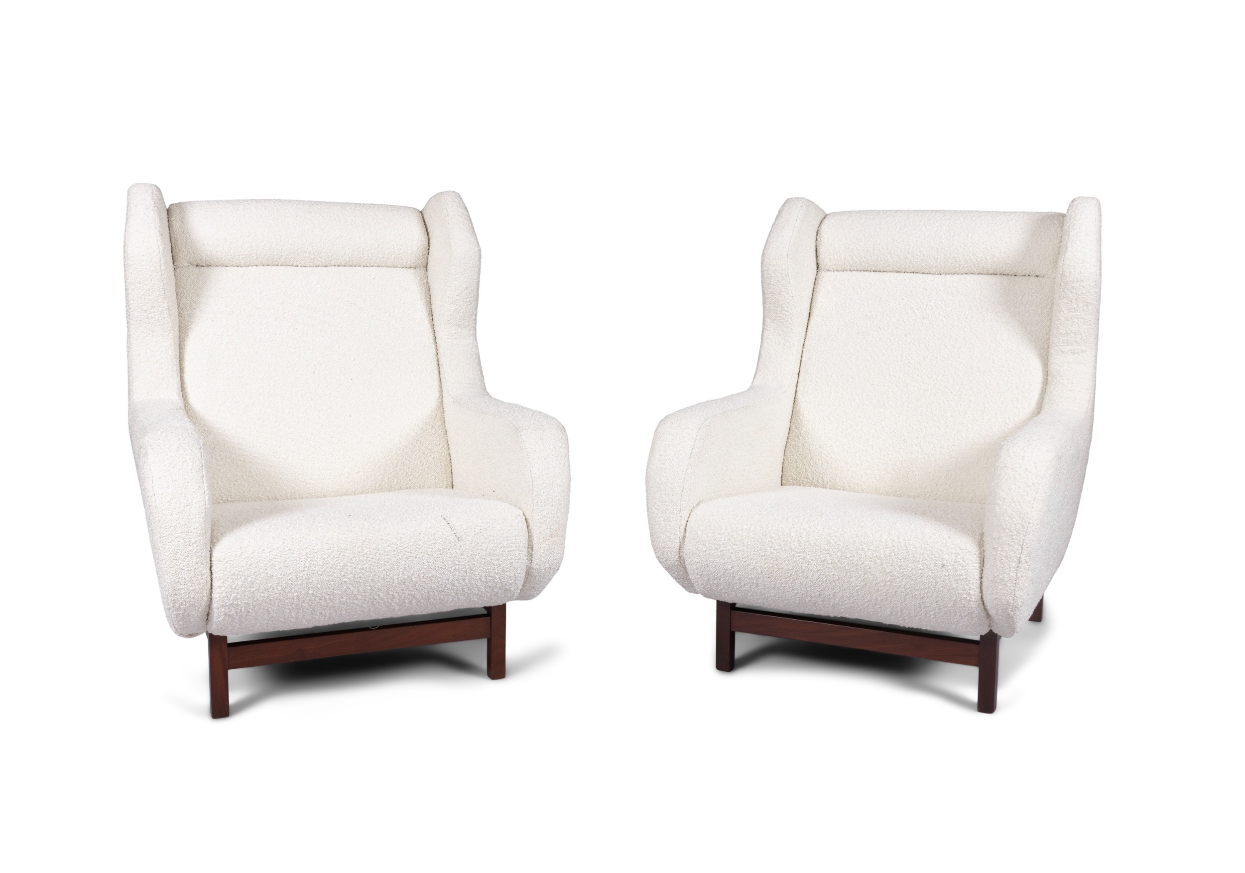 ARMCHAIRS A pair of armchairs in bouclé upholstery. Italy, c.1960. 78 x 84 x 96cm (h); Seat 36cm (h)