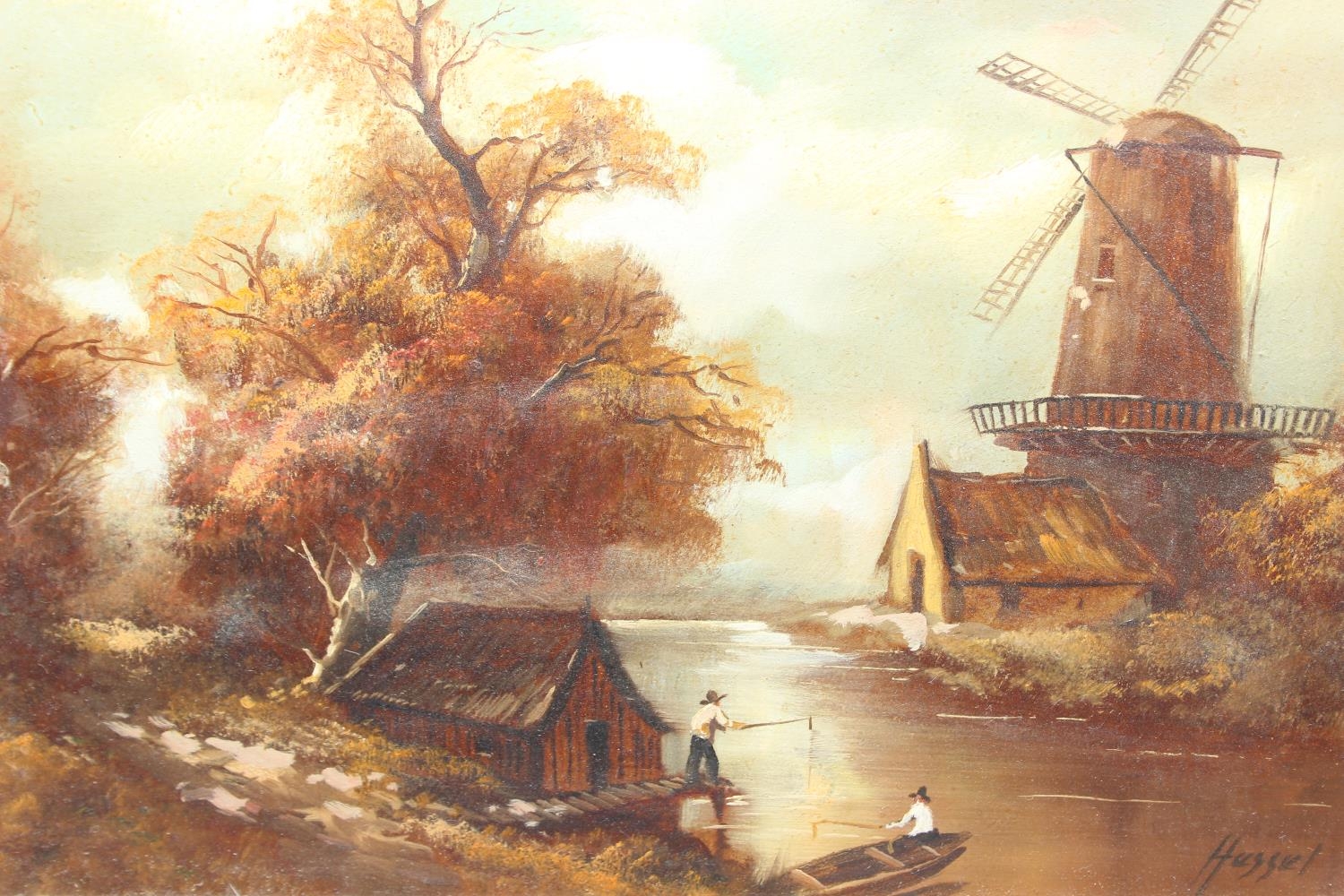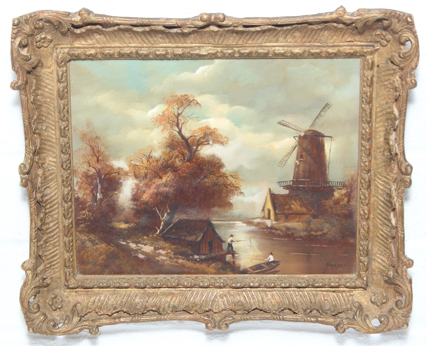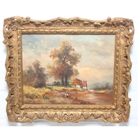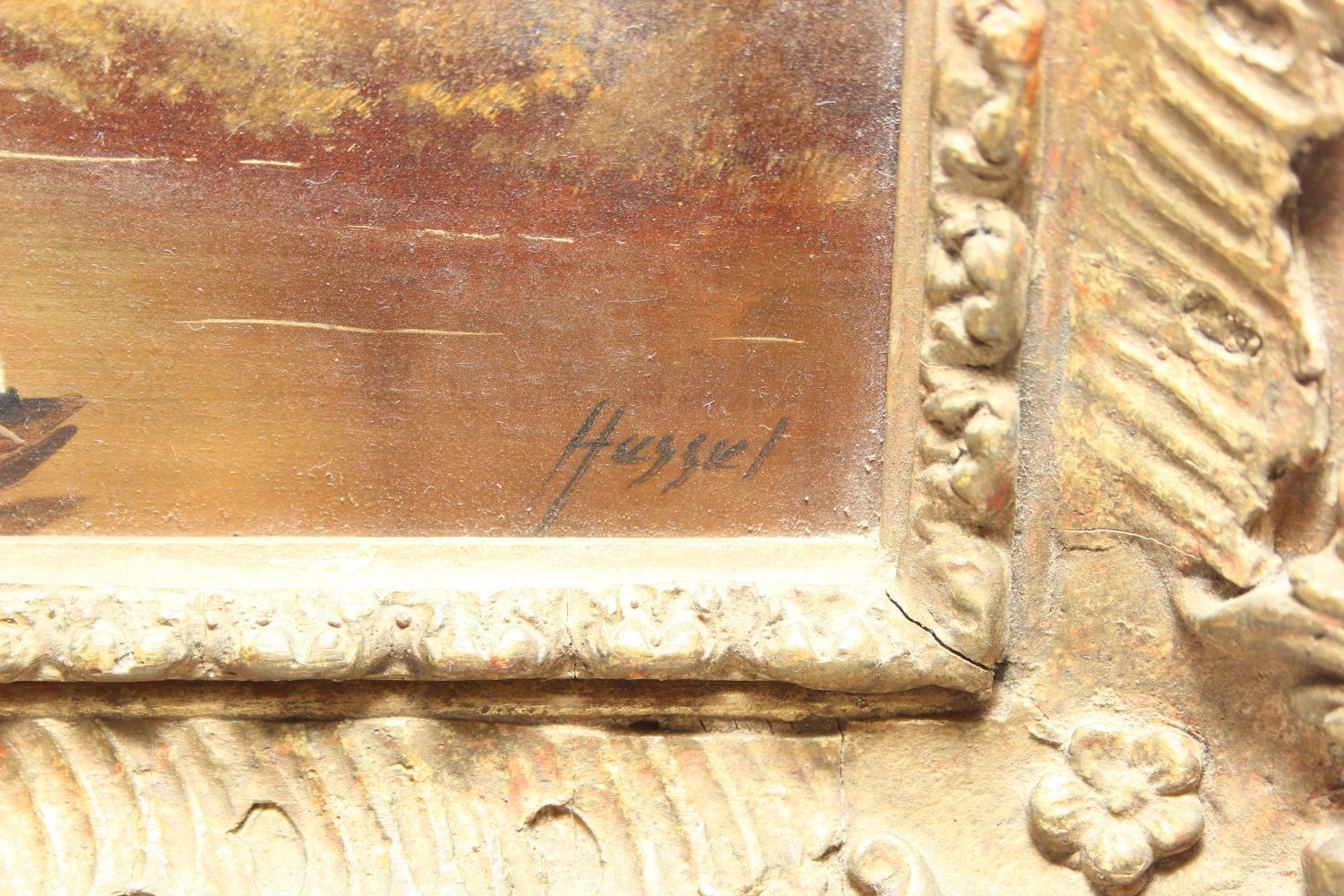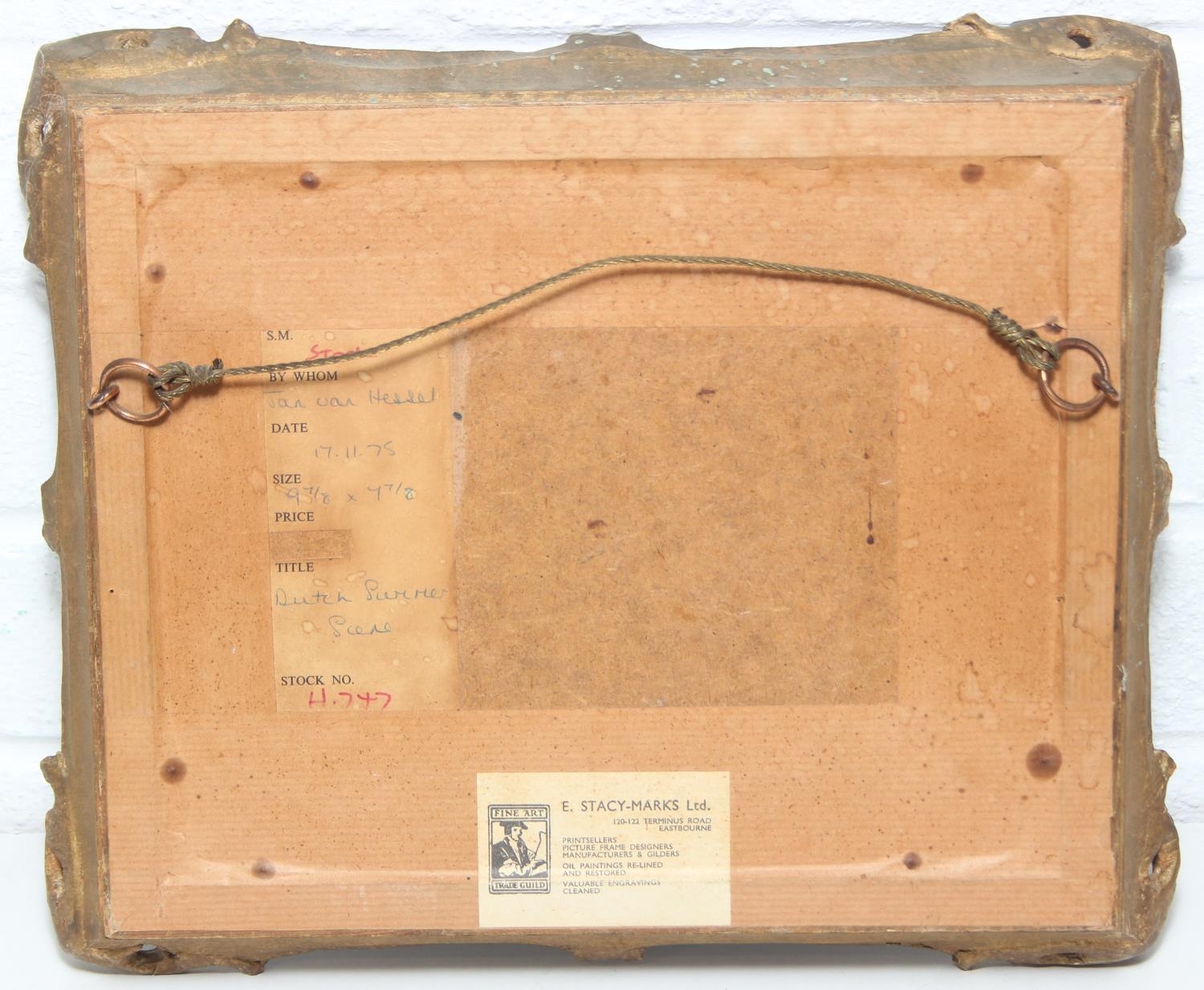 Jan van Hessel (Dutch b.1894) - oil on board entitled "Dutch Summer Scene", signed lower right, various labels verso to inc an E. Stacy-Marks gallery label, in highly decorative gilt frame, 34cm x 28cm