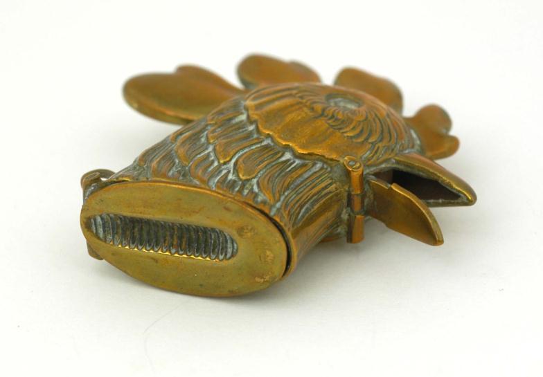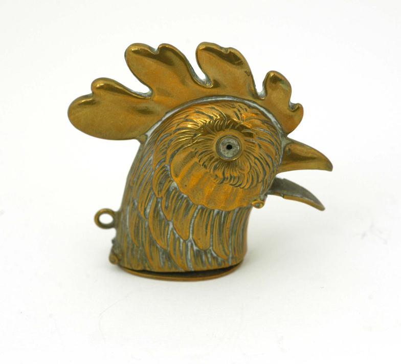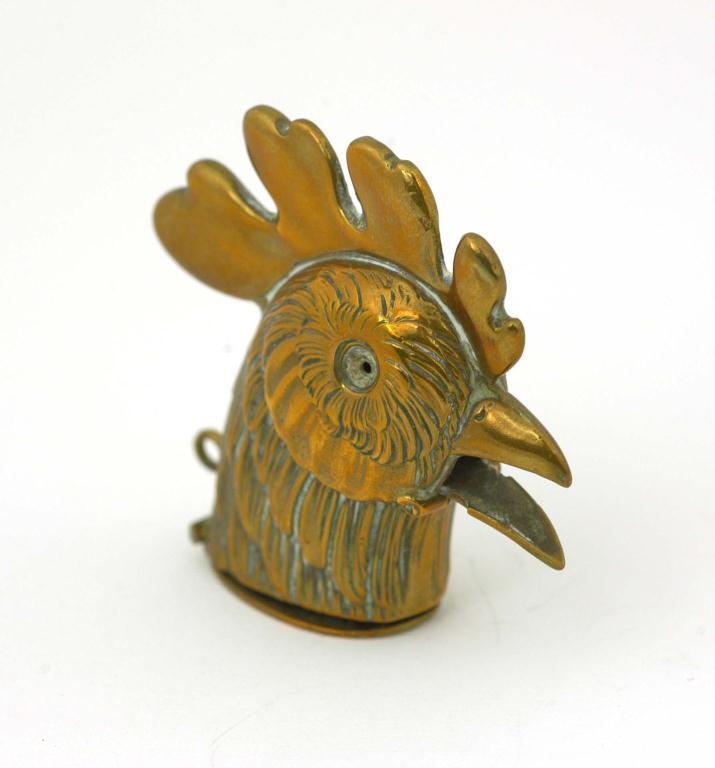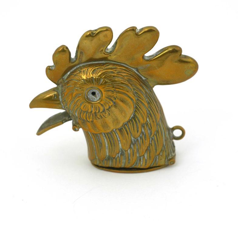 Brass cockerel's head vesta case, 5cm high