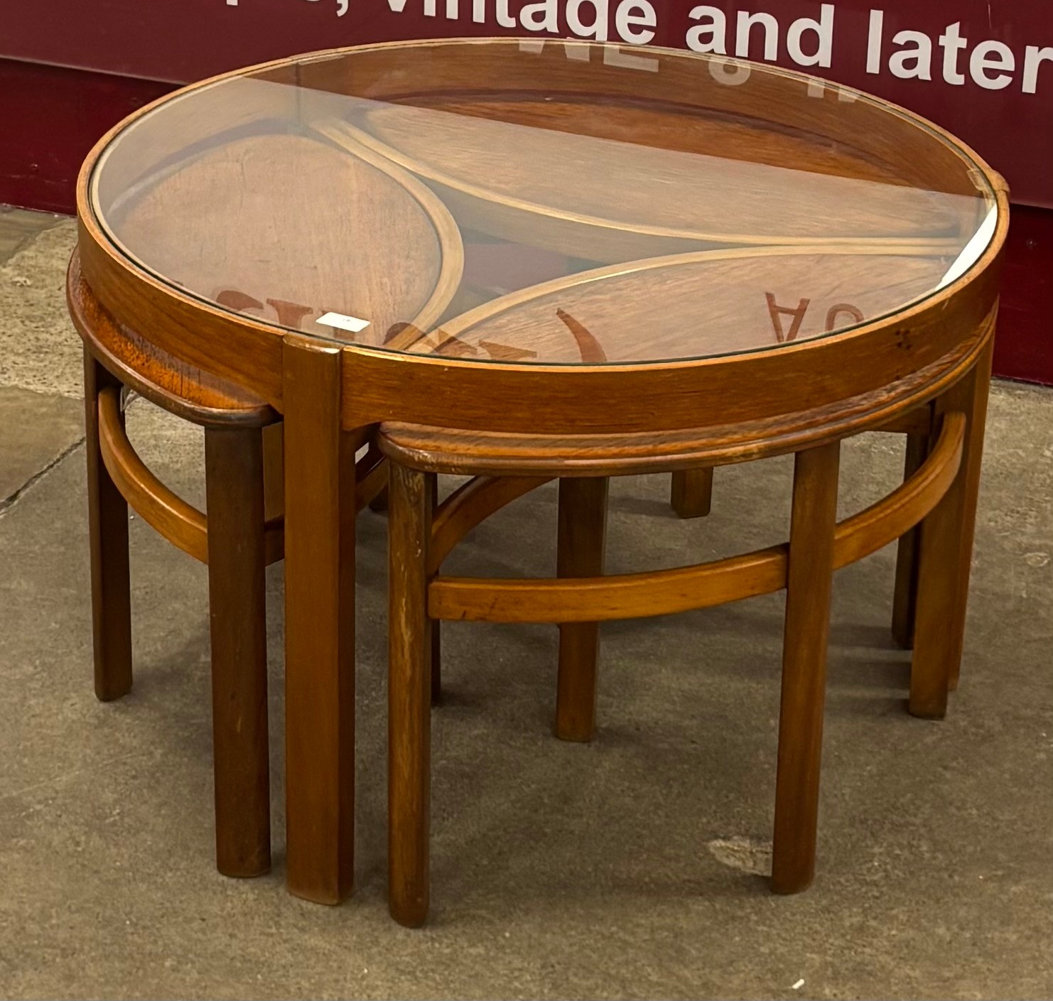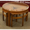 A Nathan Trinity teak and glass topped circular nest of tables