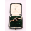 A 9ct Ornate Edwardian Amethyst and seed pearl brooch