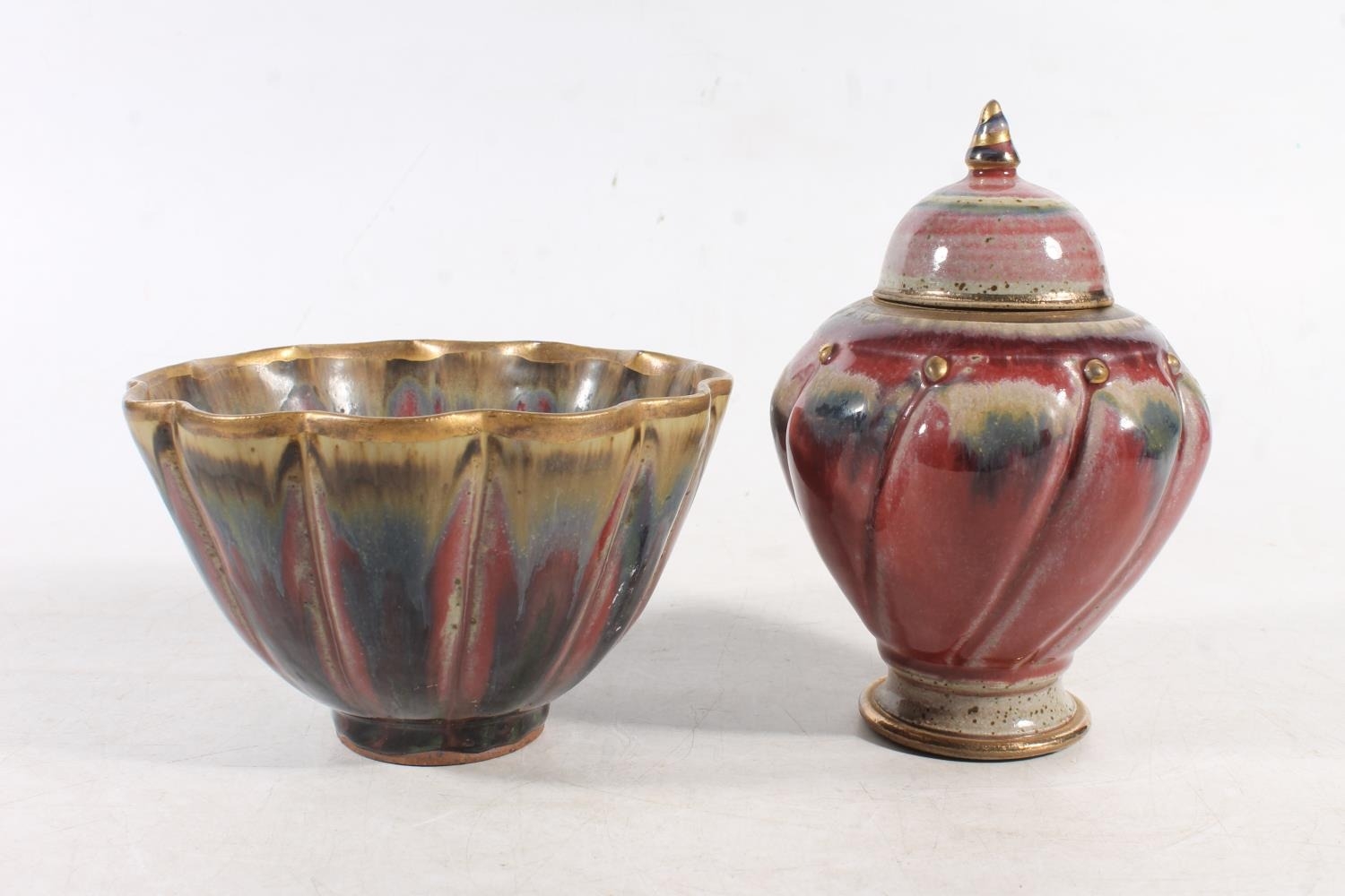 Eddie & Margaret Curtis Studio Pottery stoneware bowl, and a matching urn, largest 17cm high.
