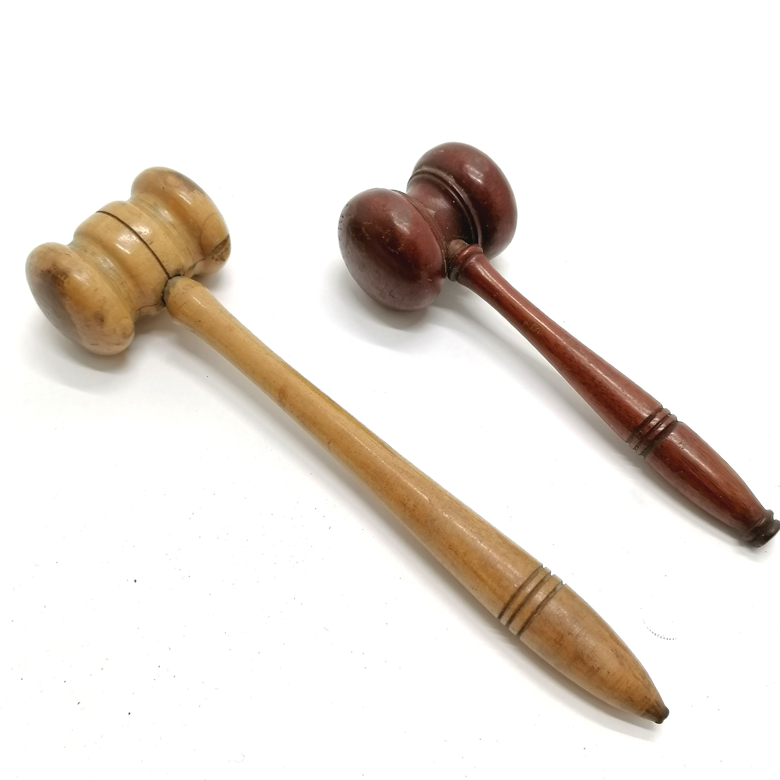 2 auctioneers hand turned gavels, longest 20cm and A/F