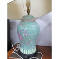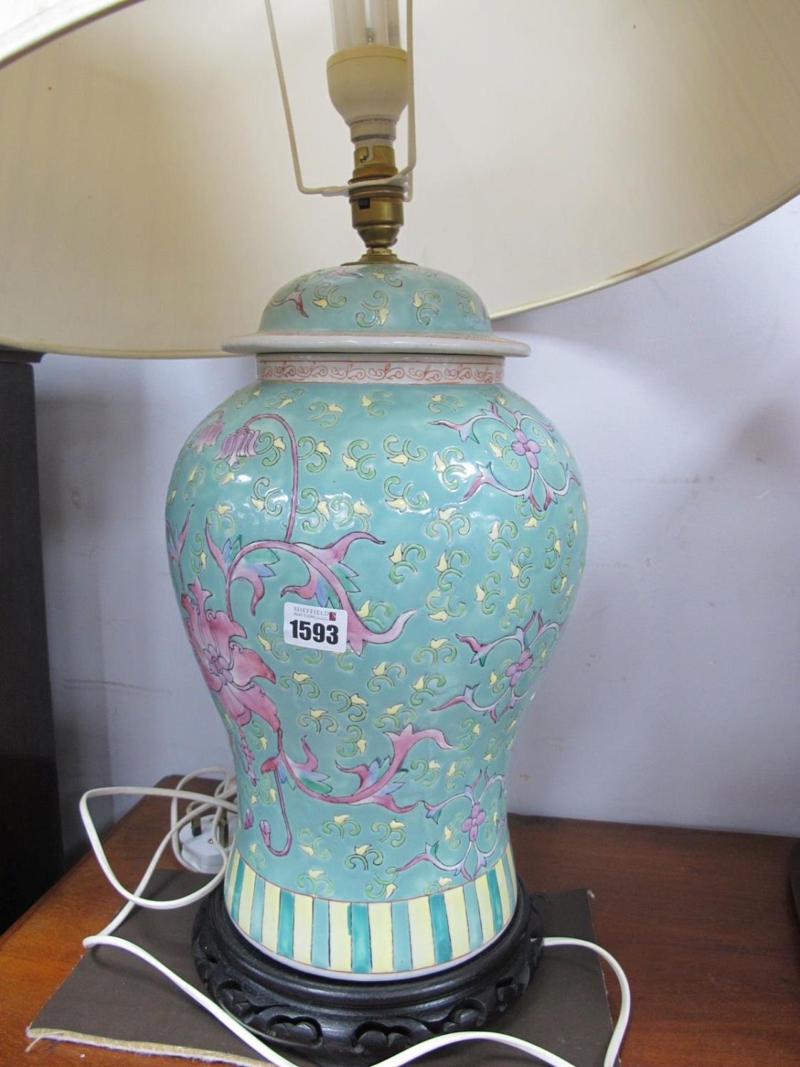 A Mordern Chinese Pottery Table Lamp, on hardwood base (with shade), untested sold for parts only.