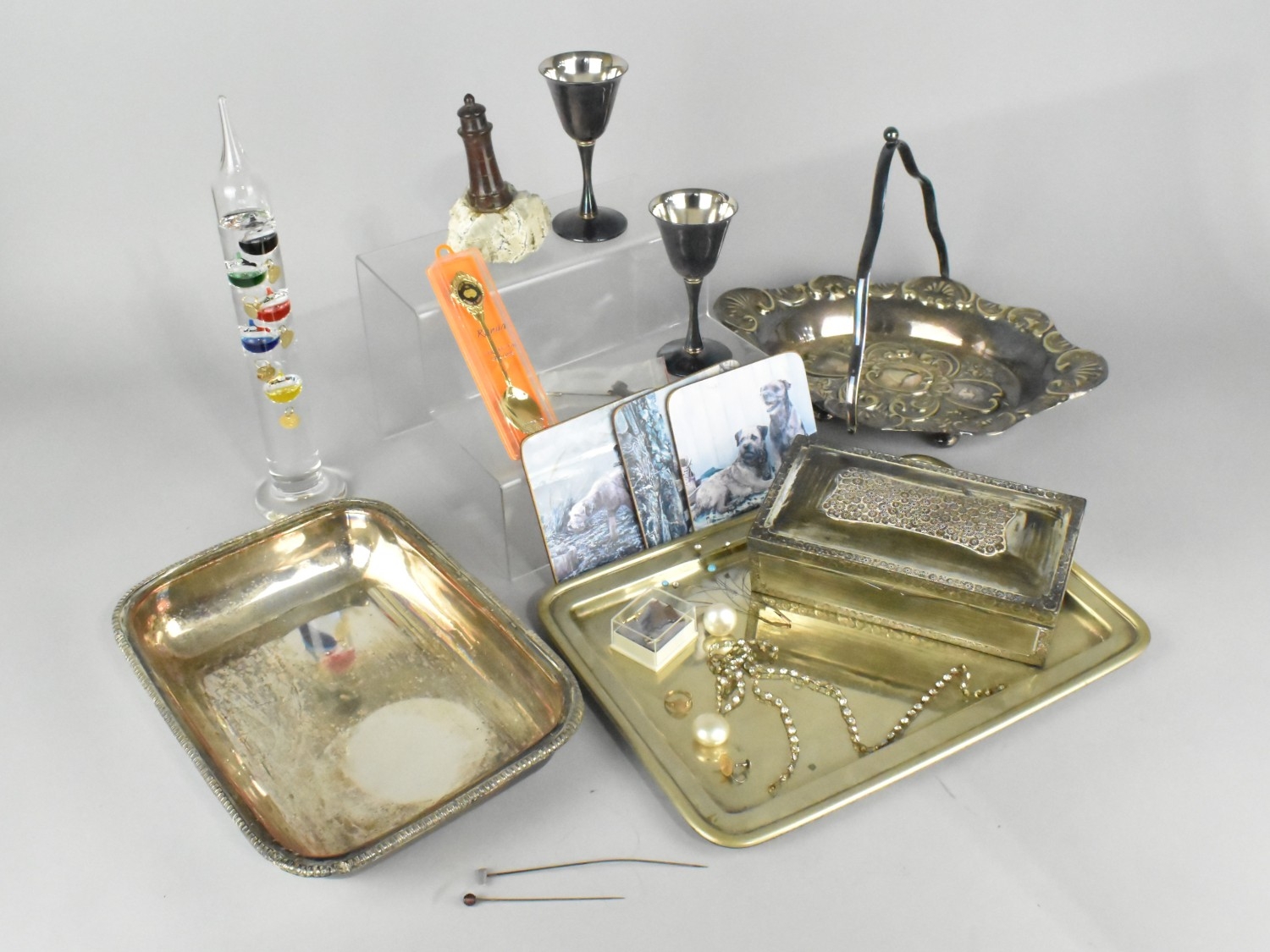 A Collection of Various Items to Comprise Silver Plated Tray, Basket, Galileo Thermometer etc