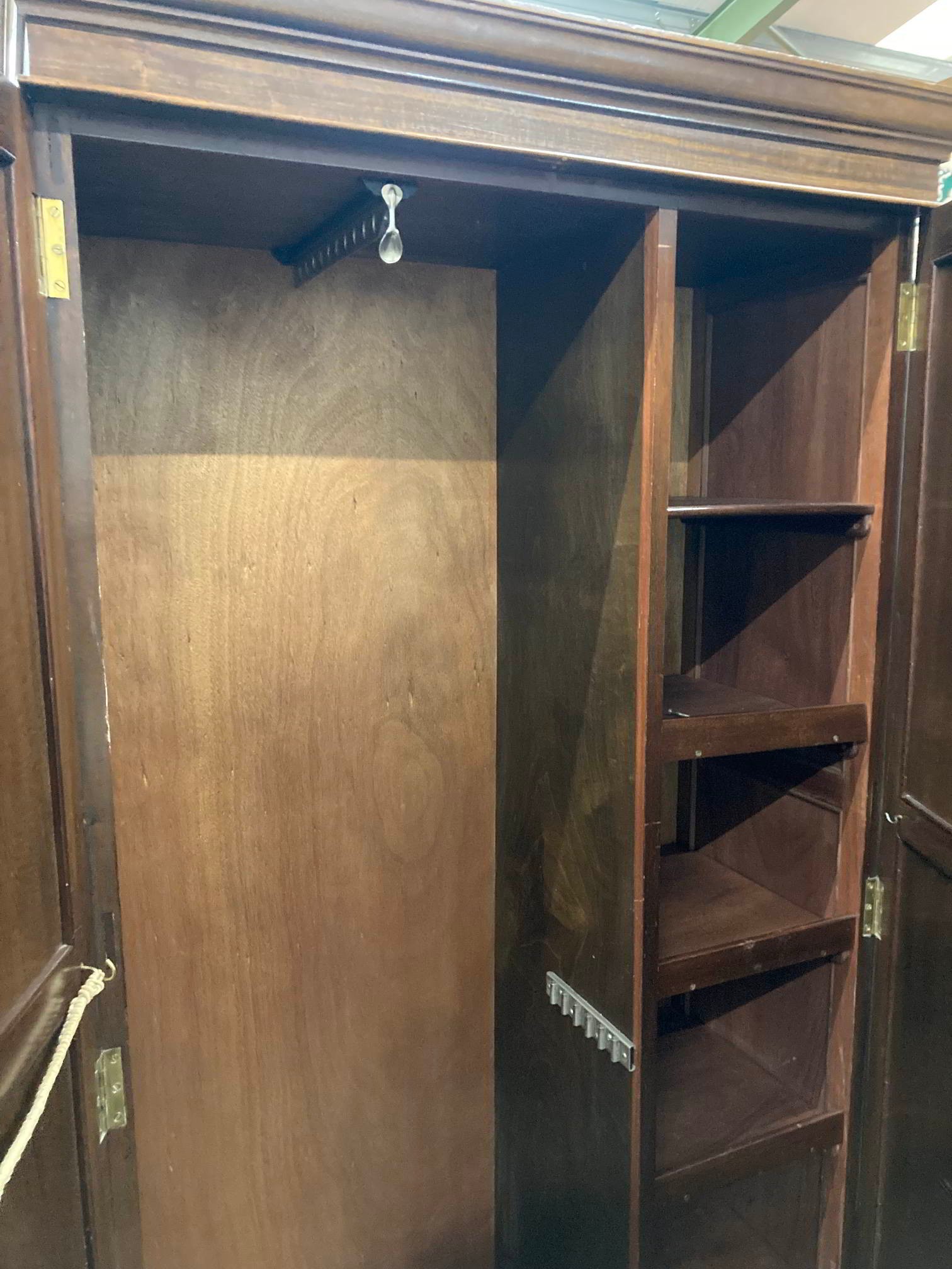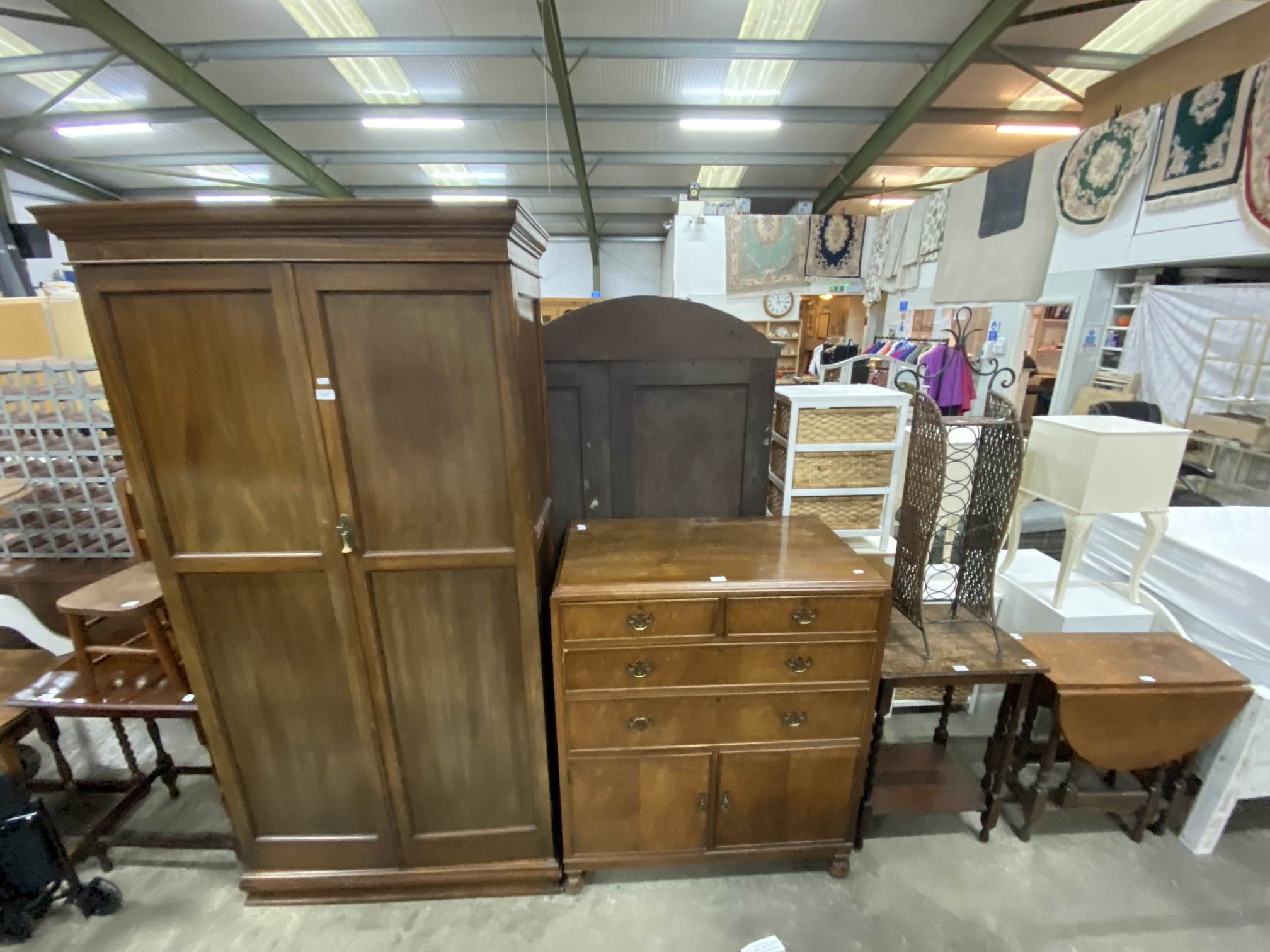 Edwardian mahogany fitted wardrobe 198H 101W 47D, Edwardian mahogany chest 108H 92W 49D, oak drop leaf table 68H 66W 32-64D etc