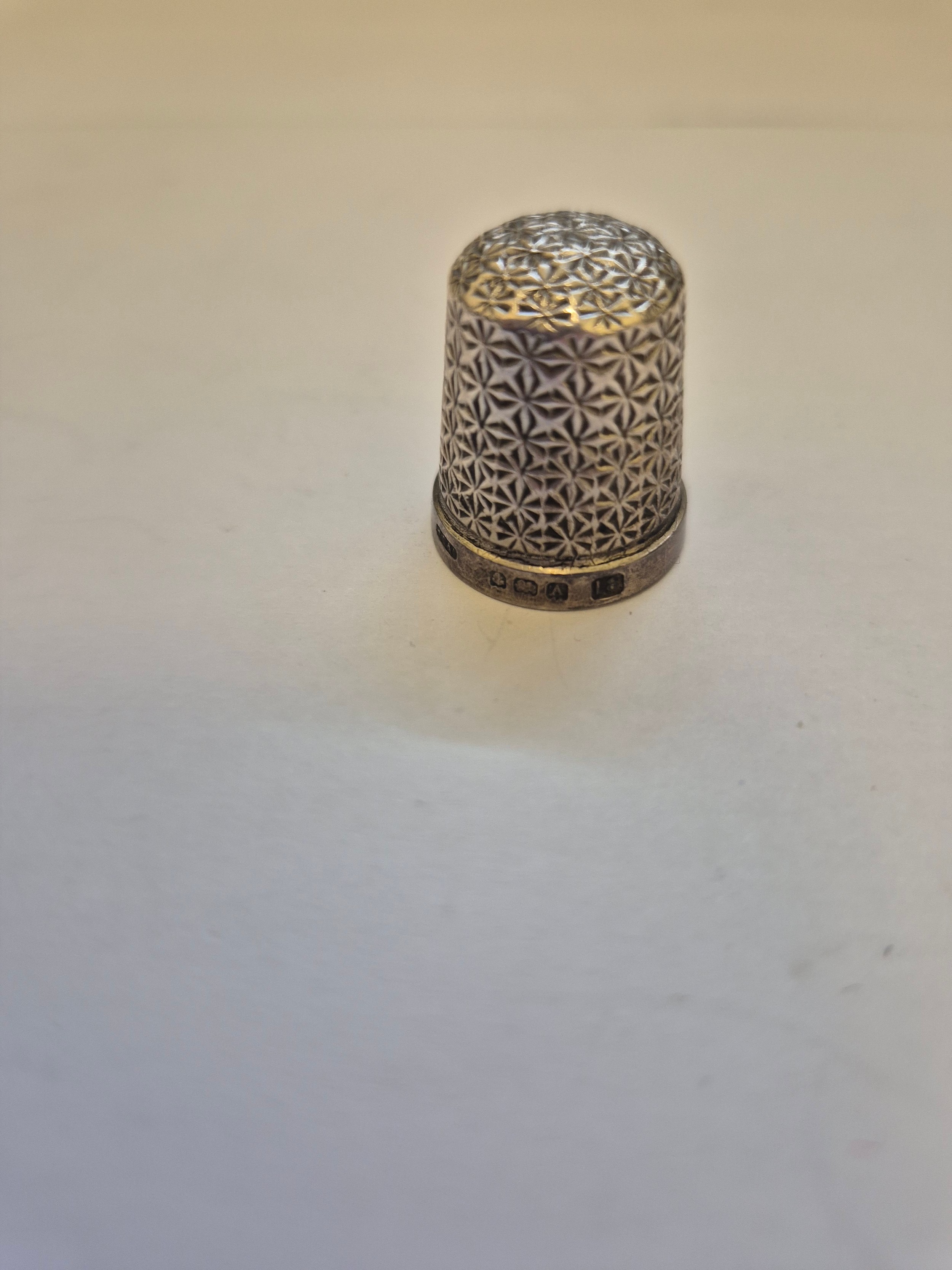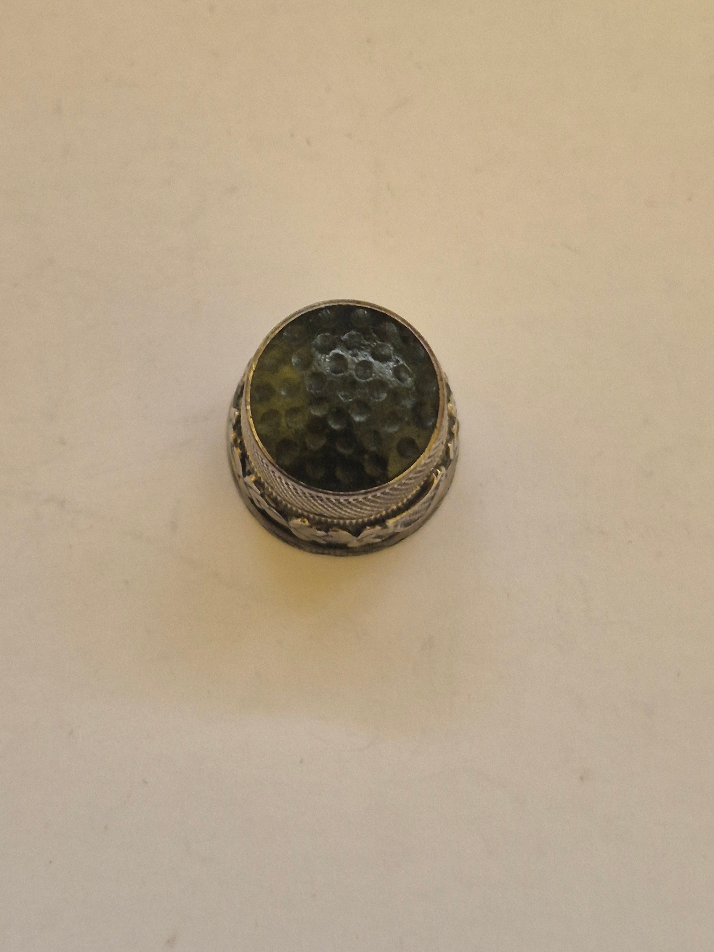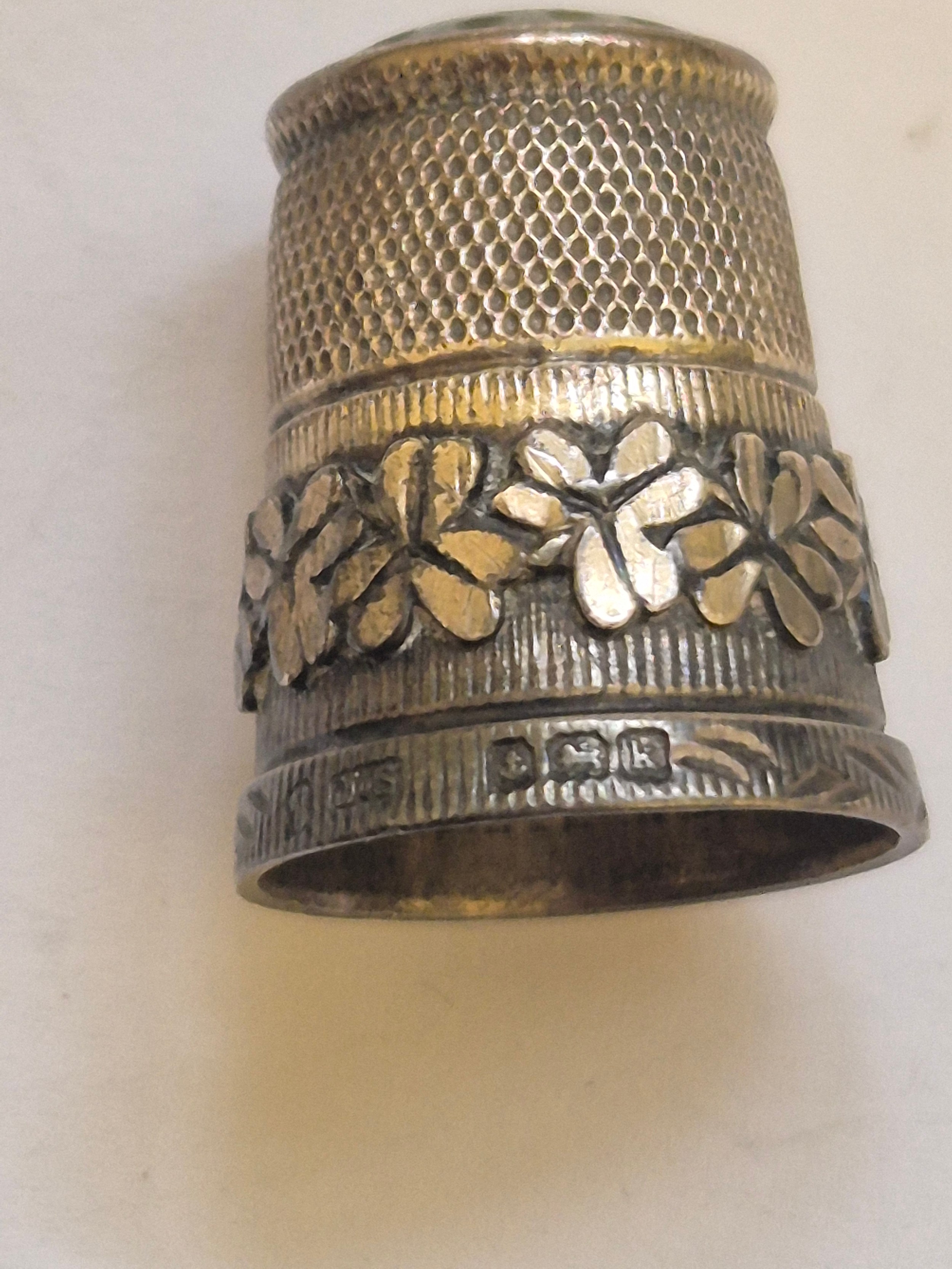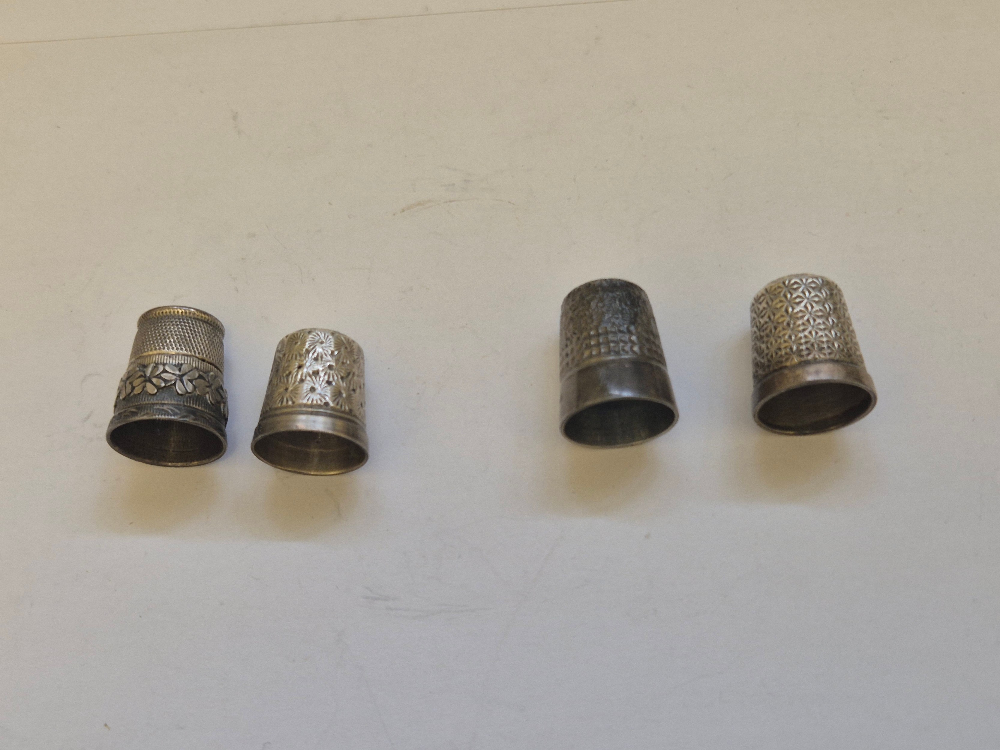 4 Sterling silver thimbles, all with Birmingham Hallmarks, one with Irish Shamrock and Harp detail and with Connemara Marble top Birm 1925 James Swann. 20 grams