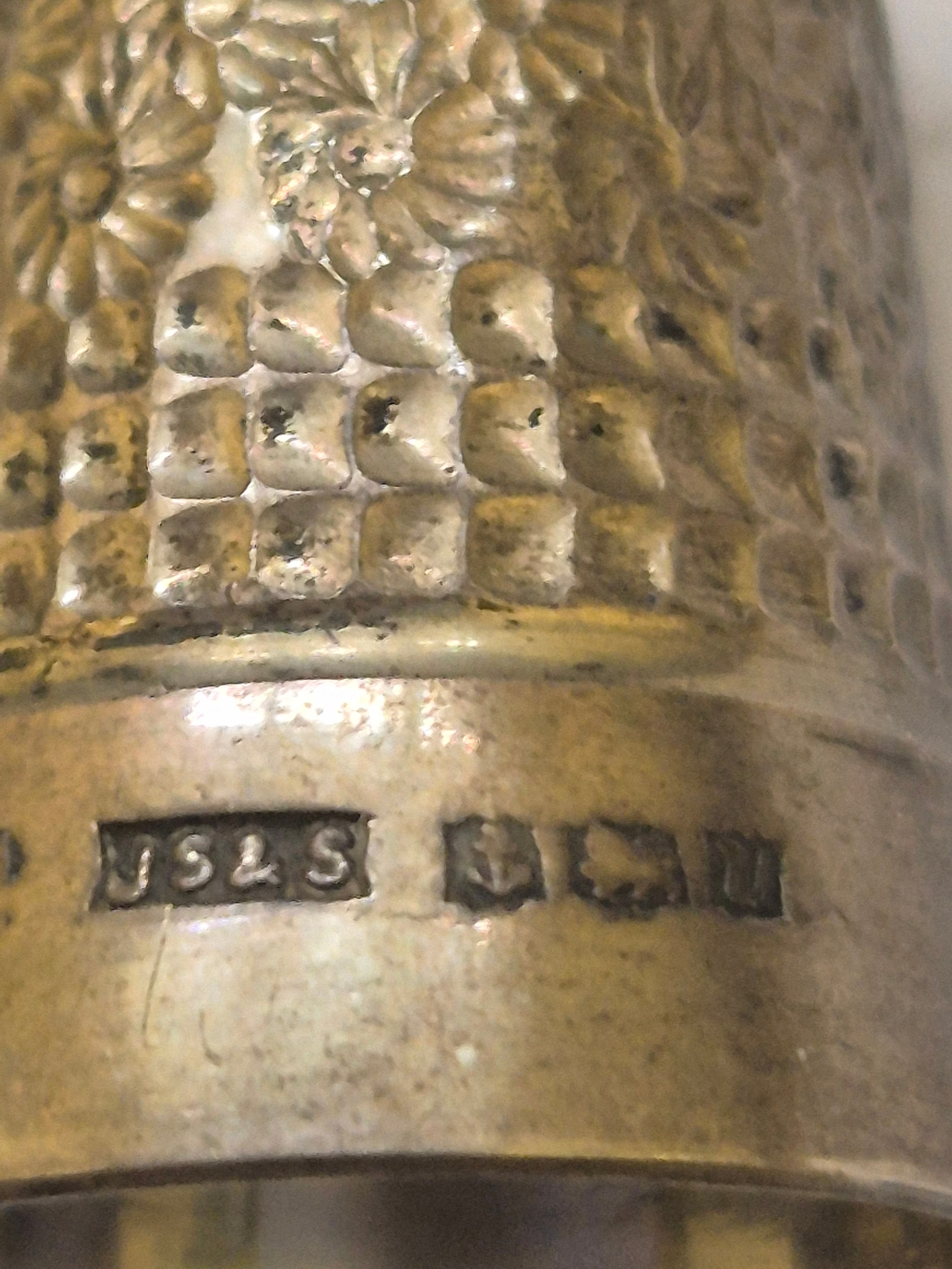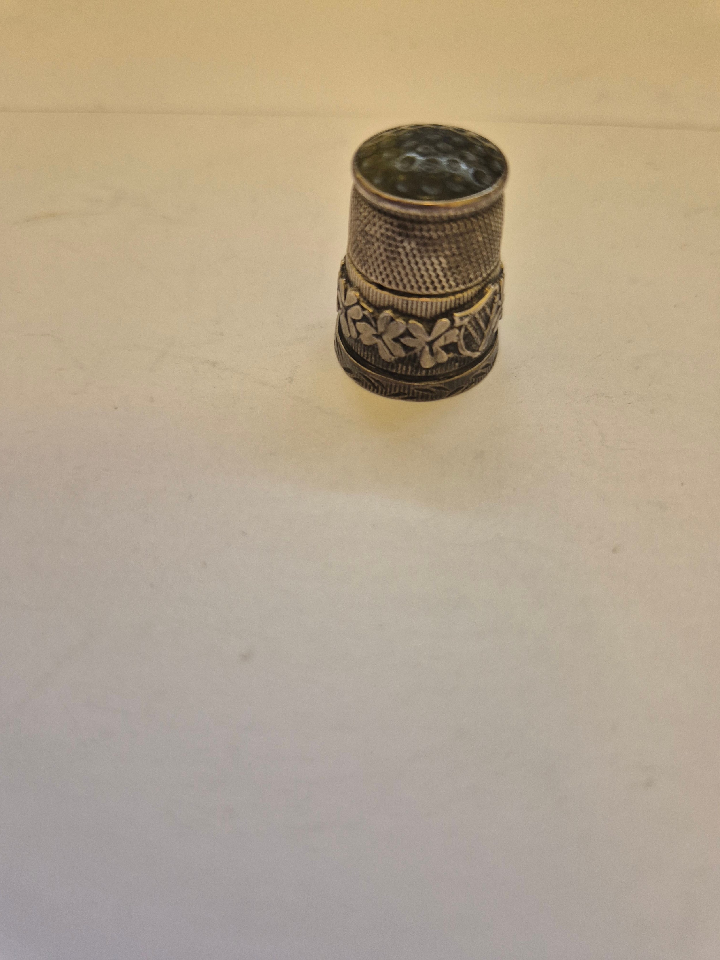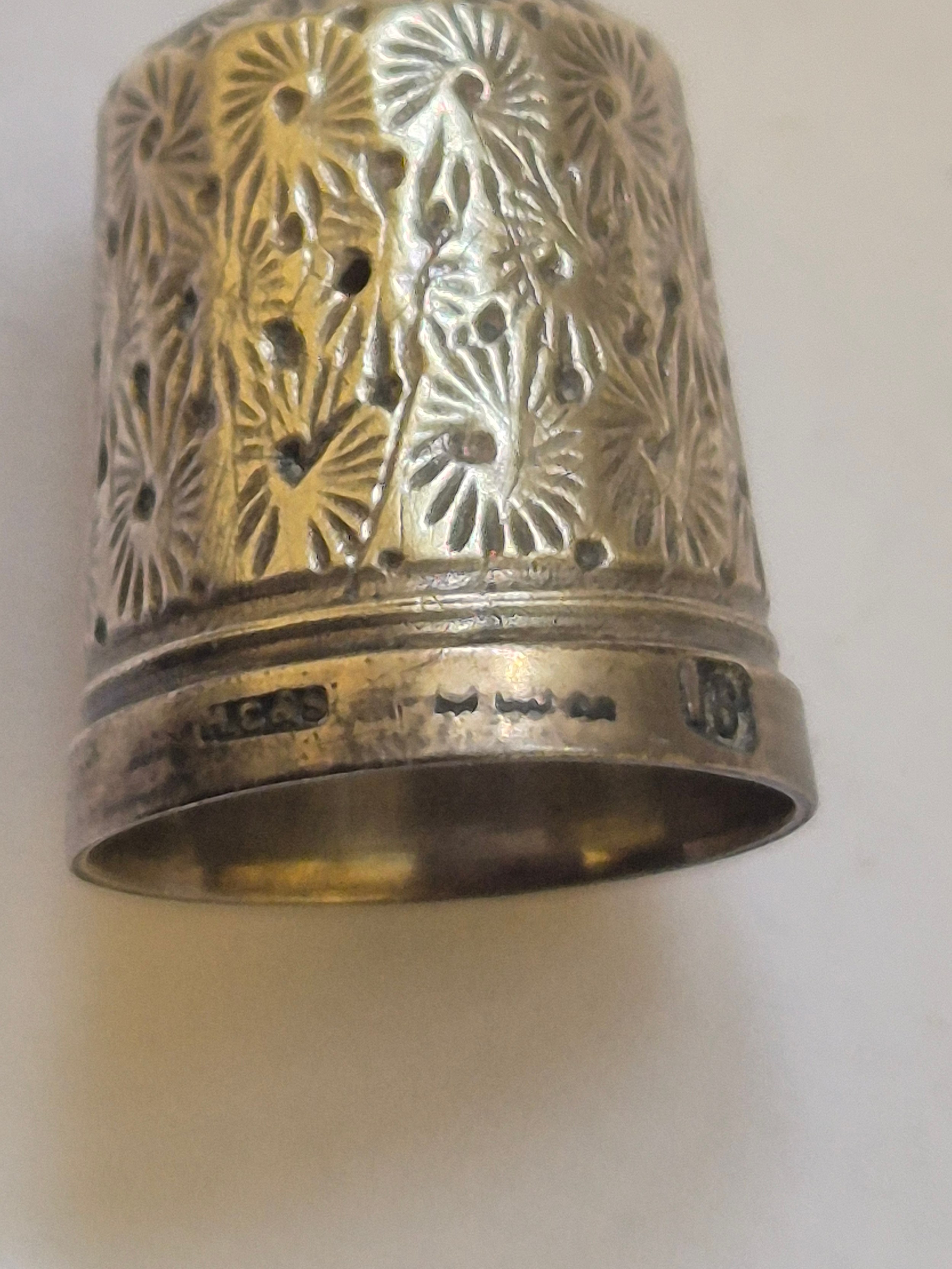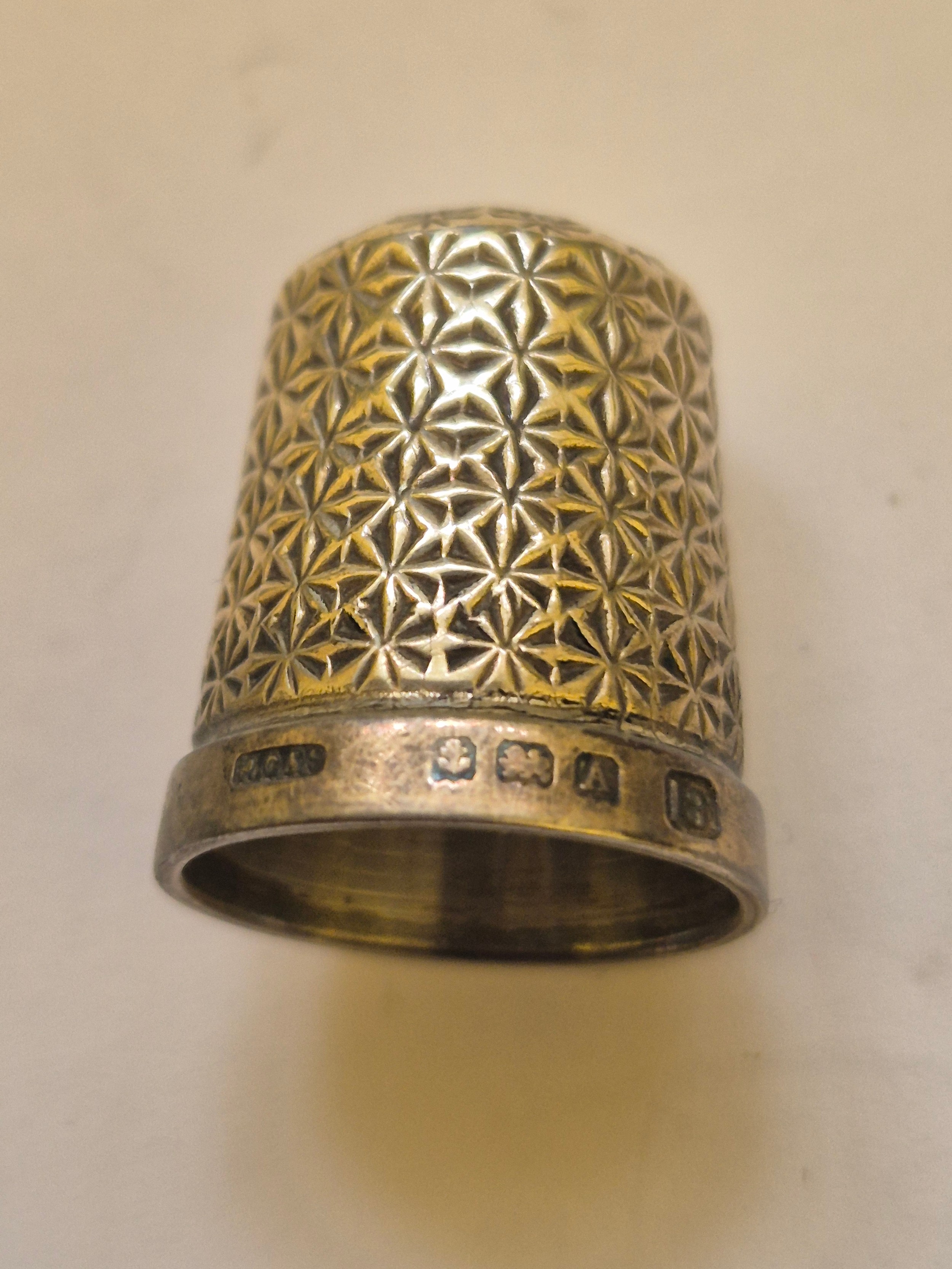 4 Sterling silver thimbles, all with Birmingham Hallmarks, one with Irish Shamrock and Harp detail and with Connemara Marble top Birm 1925 James Swann. 20 grams