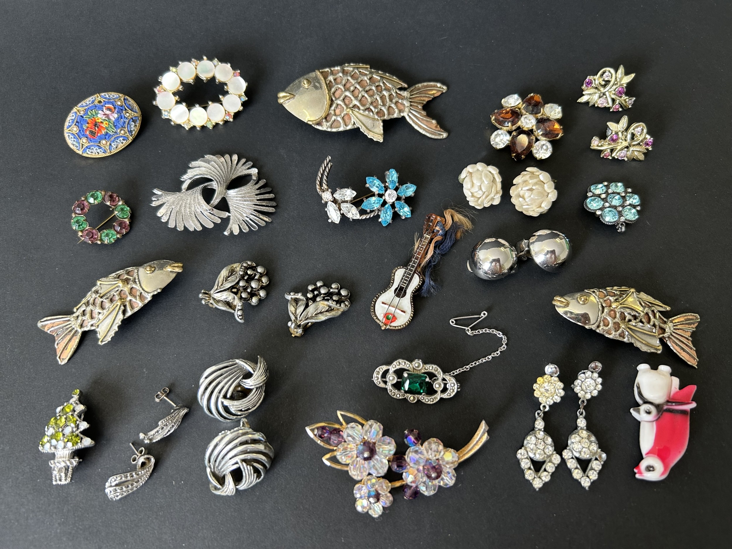 A selection of vintage brooches and clip-on earrings
