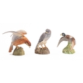 Three Spode ceramic models of birds. Comprising a male and female Harrier and a Duck, all set in naturalistic poses, max height 17cm.