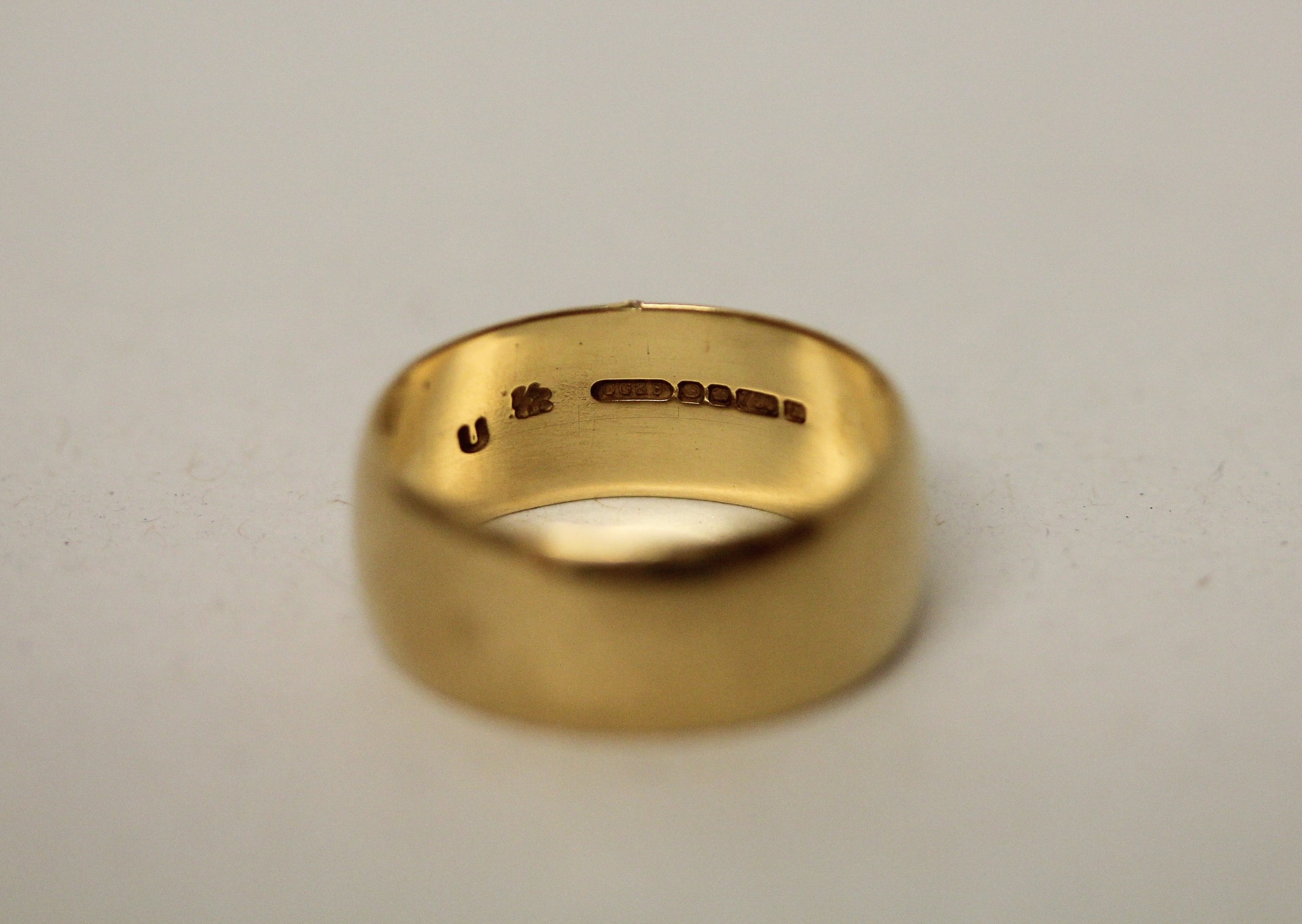 An 18ct yellow gold wedding band, ring size U, 8.2 grams,