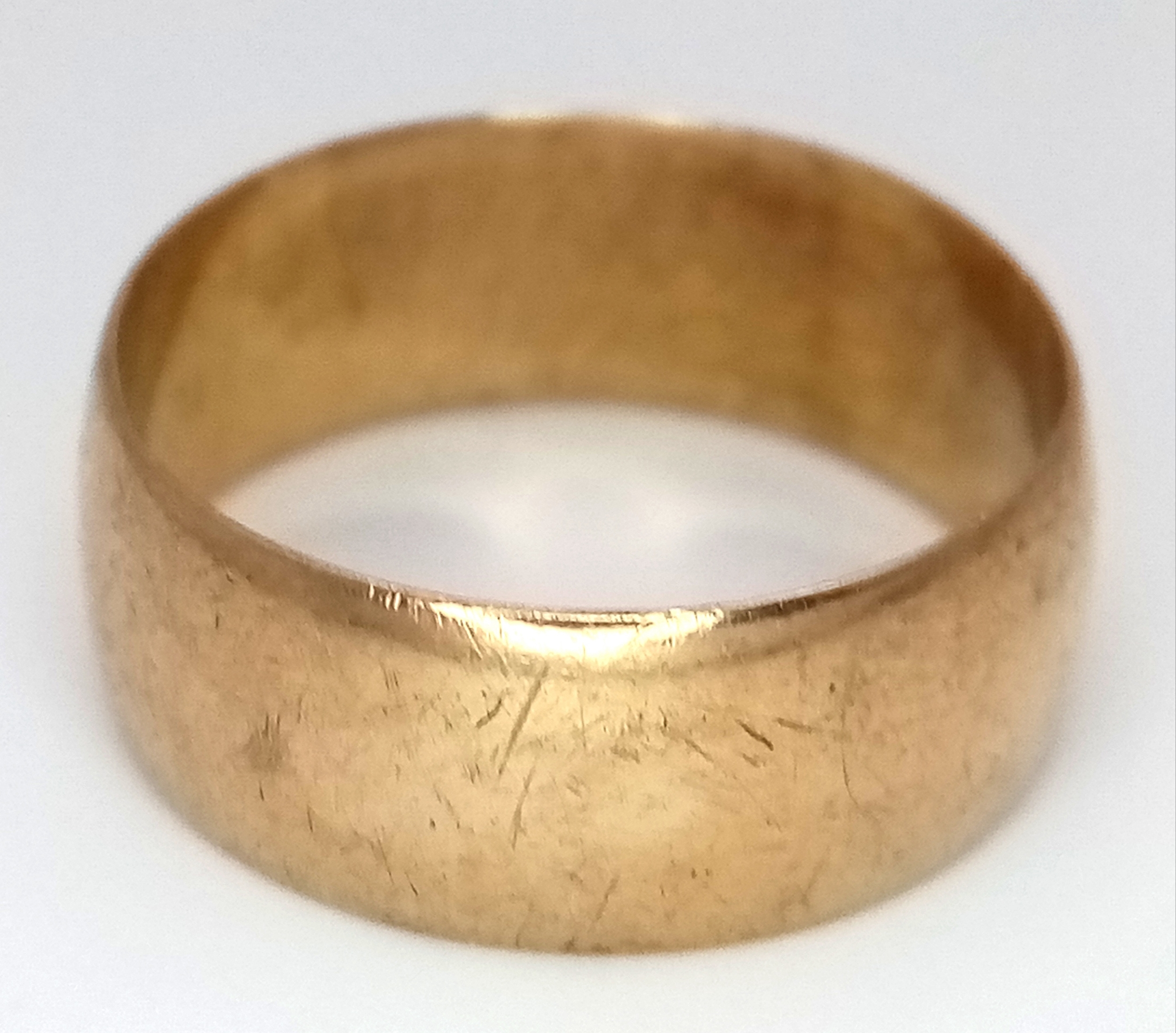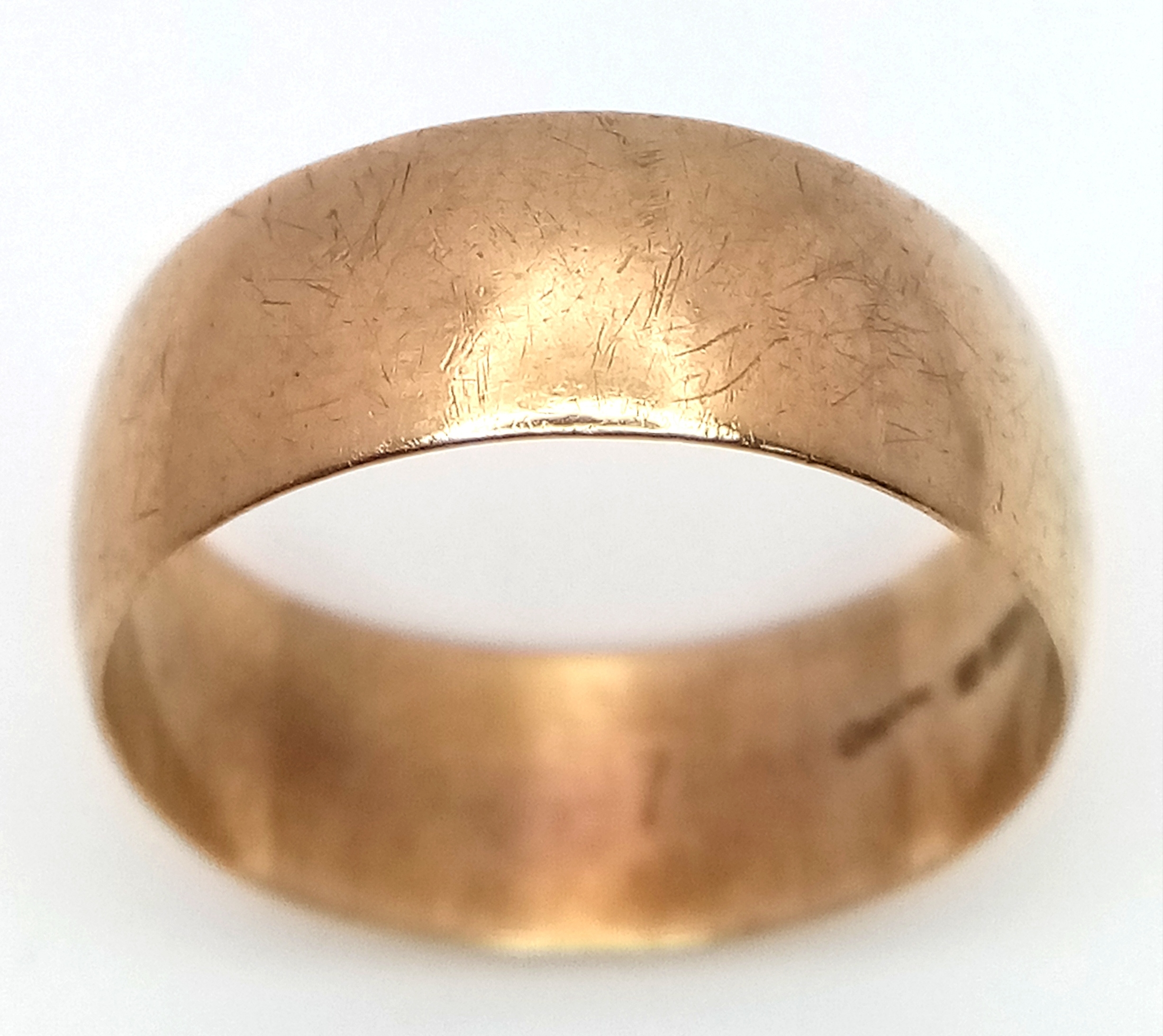 A 9K GOLD GENTS BAND RING . 4gms size S