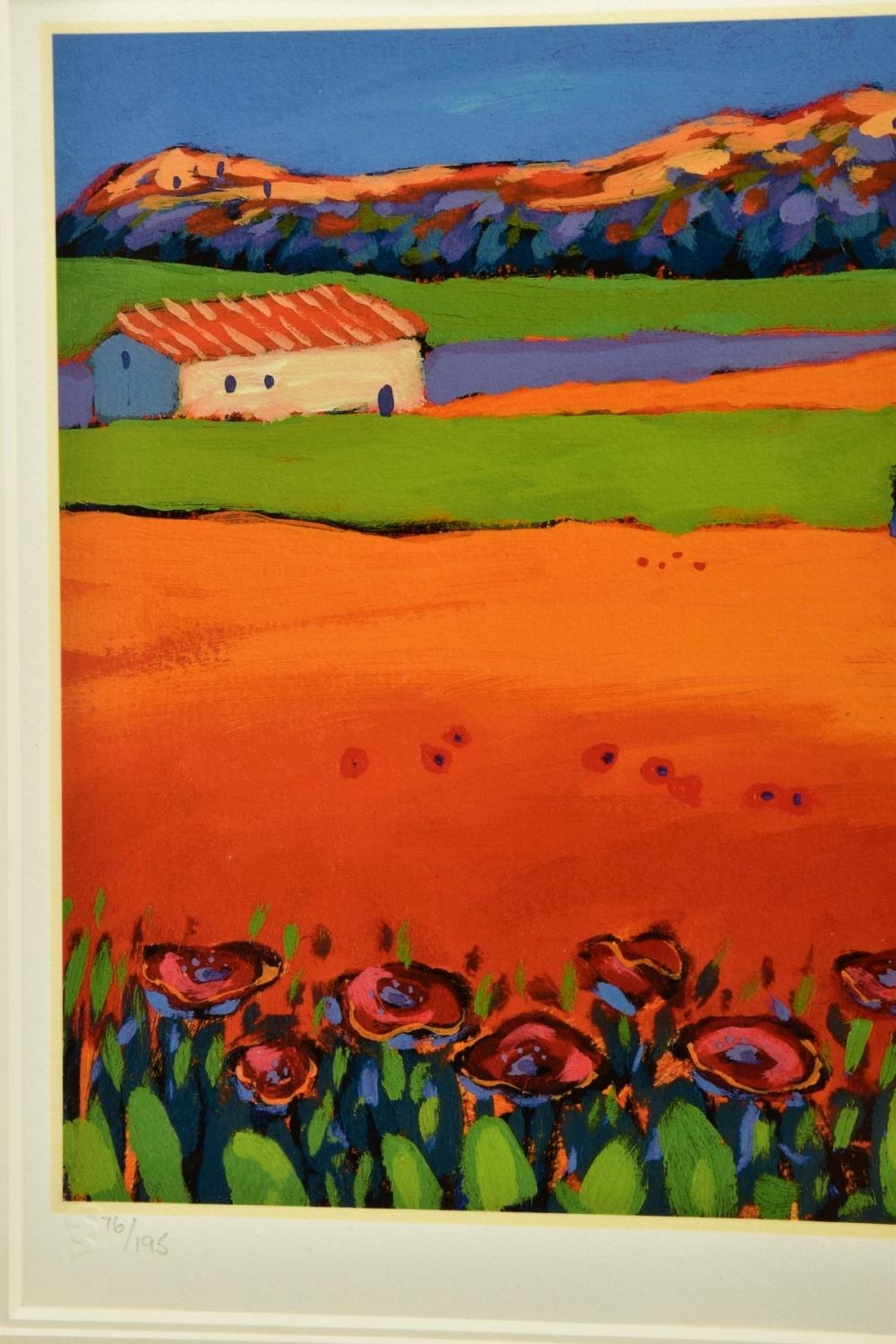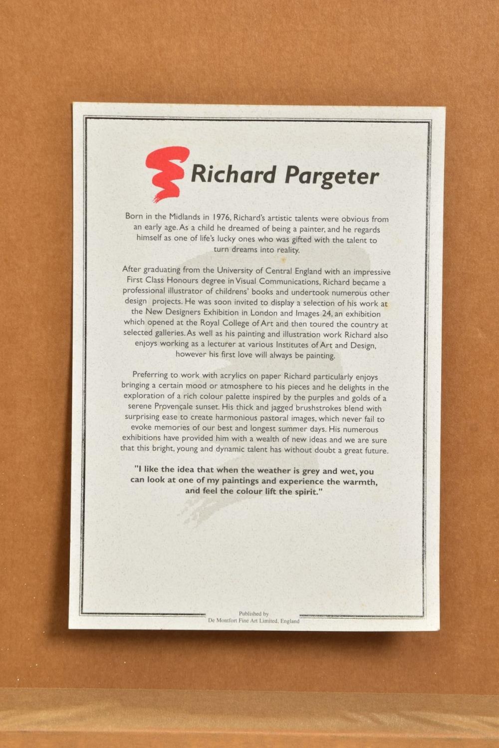 RICHARD PARGETER (BRITISH 1976) 'PLEIN DE L'ETE III / FULL OF SUMMER III', a signed limited edition print of a colourful French landscape, 17/195 no certificate, approximate sizes: image 31cm x 71cm frame 63cm x 102cm, (Condition report: small chips to corner edges of the frame) (artist resale rights apply)