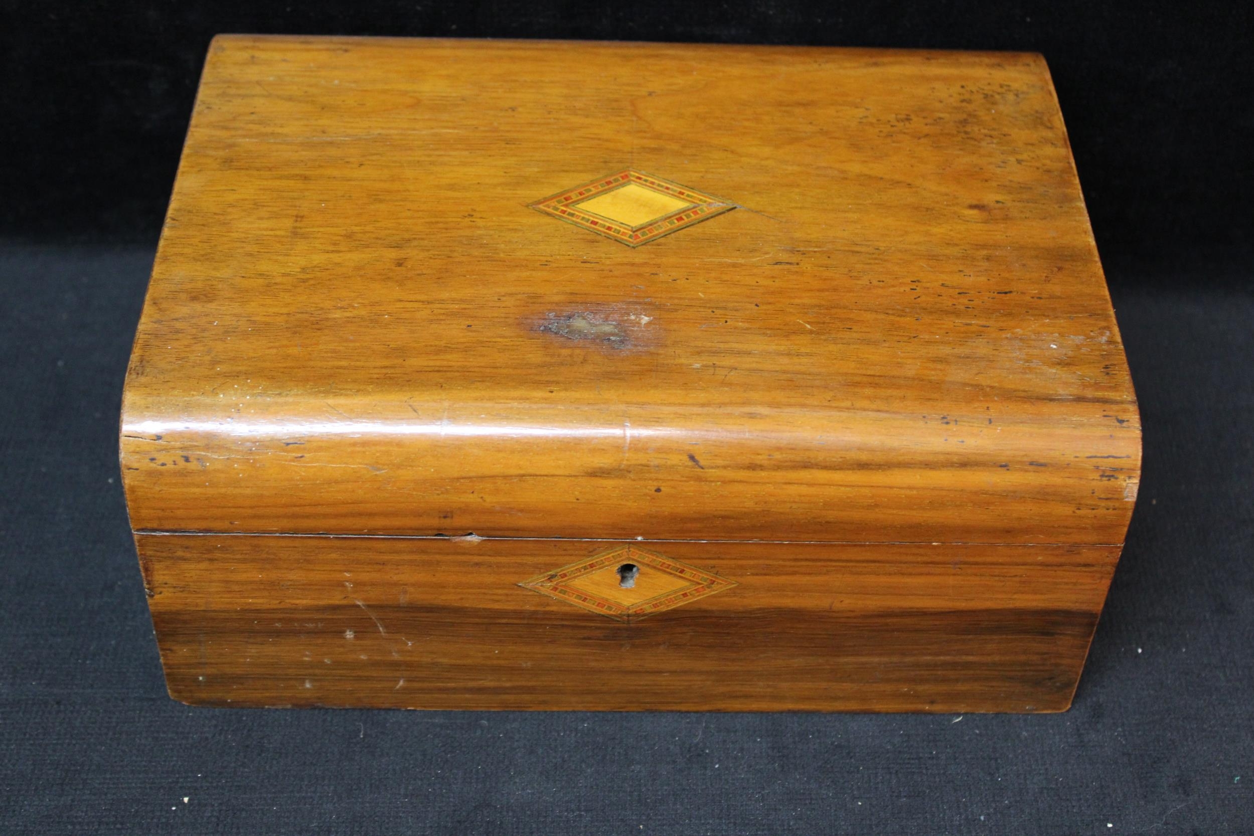 An inlaid jewellery box 27cm X 19.5cm X 12cm