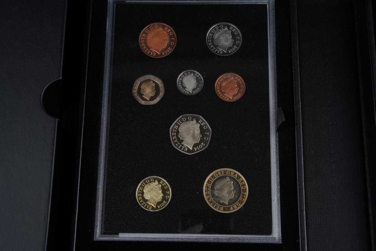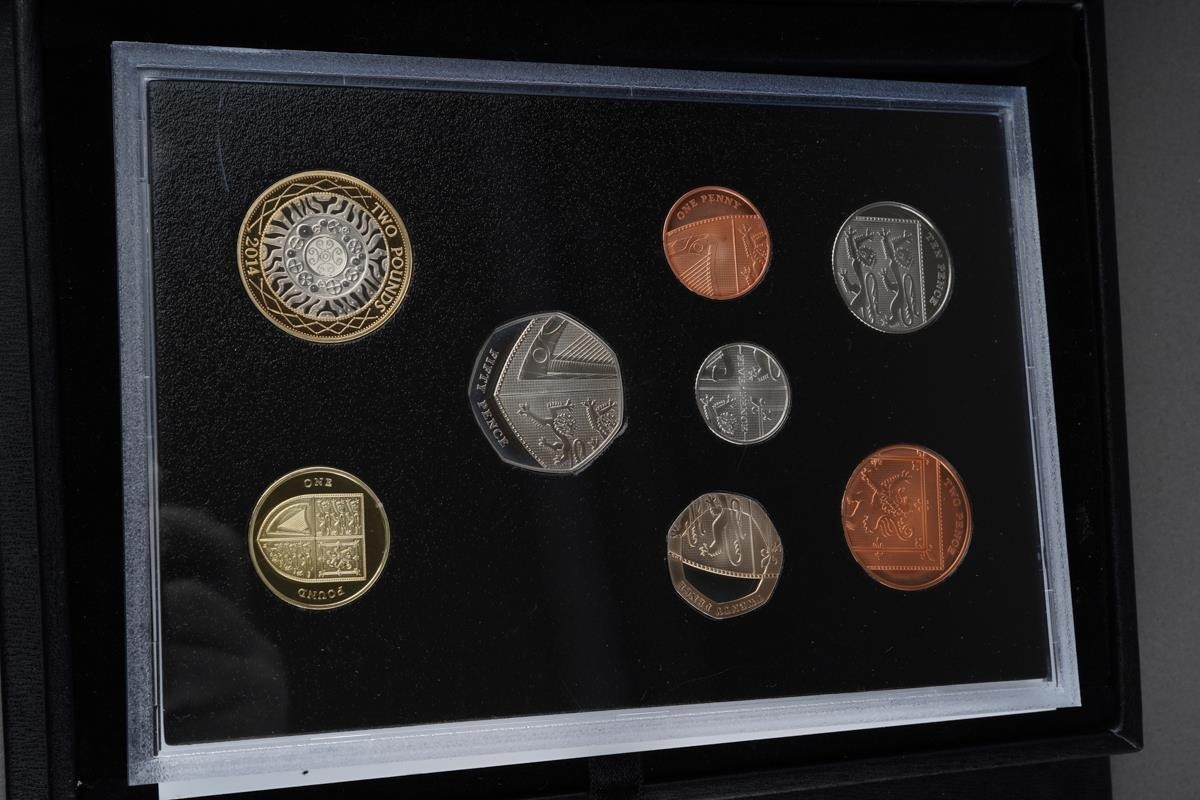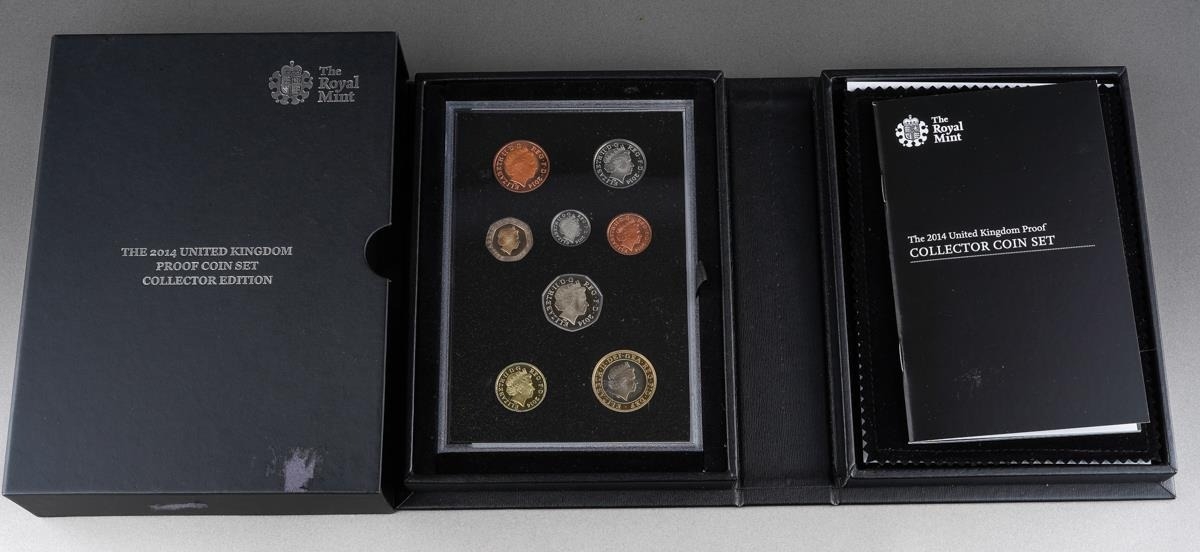 The Royal Mint, The 2014 United Kingdom Proof Coin Set Collector Edition, thirteen coins £5 to 1p with proof medal, with booklet in presentation case and slip-case (1)