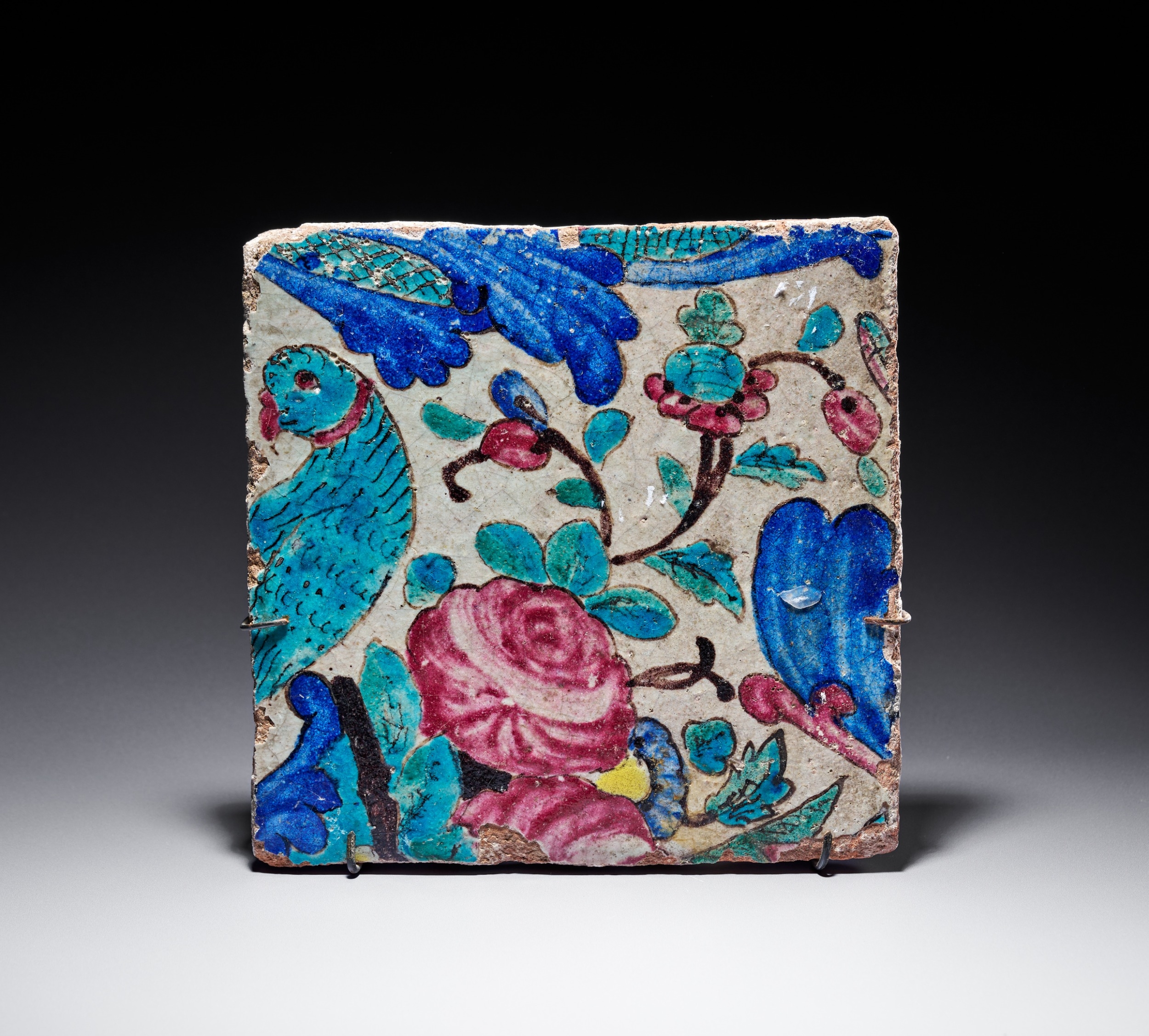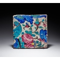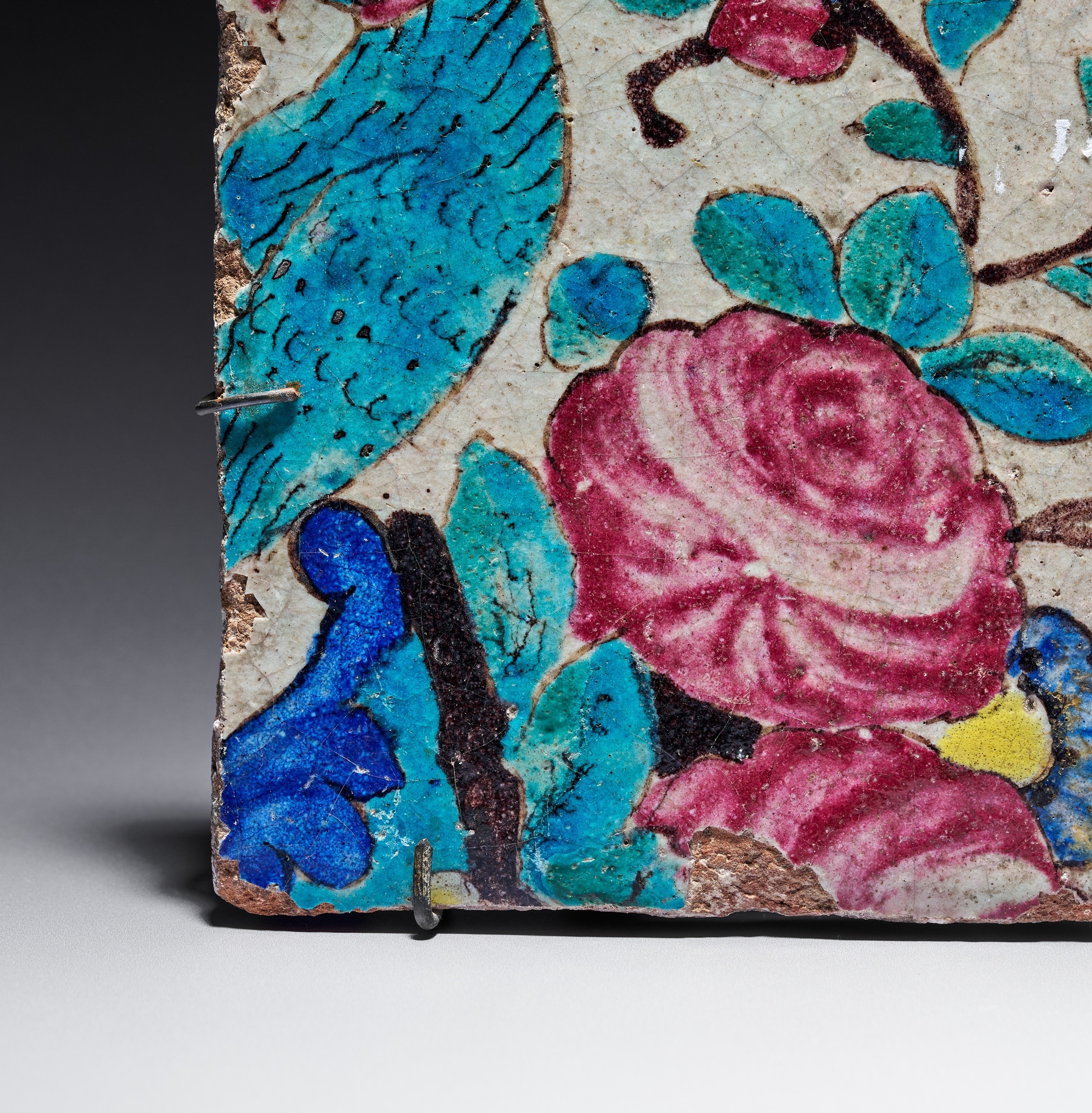 A QAJAR POLYCHROME GLAZED CERAMIC TILE, PERSIA, 19TH CENTURY