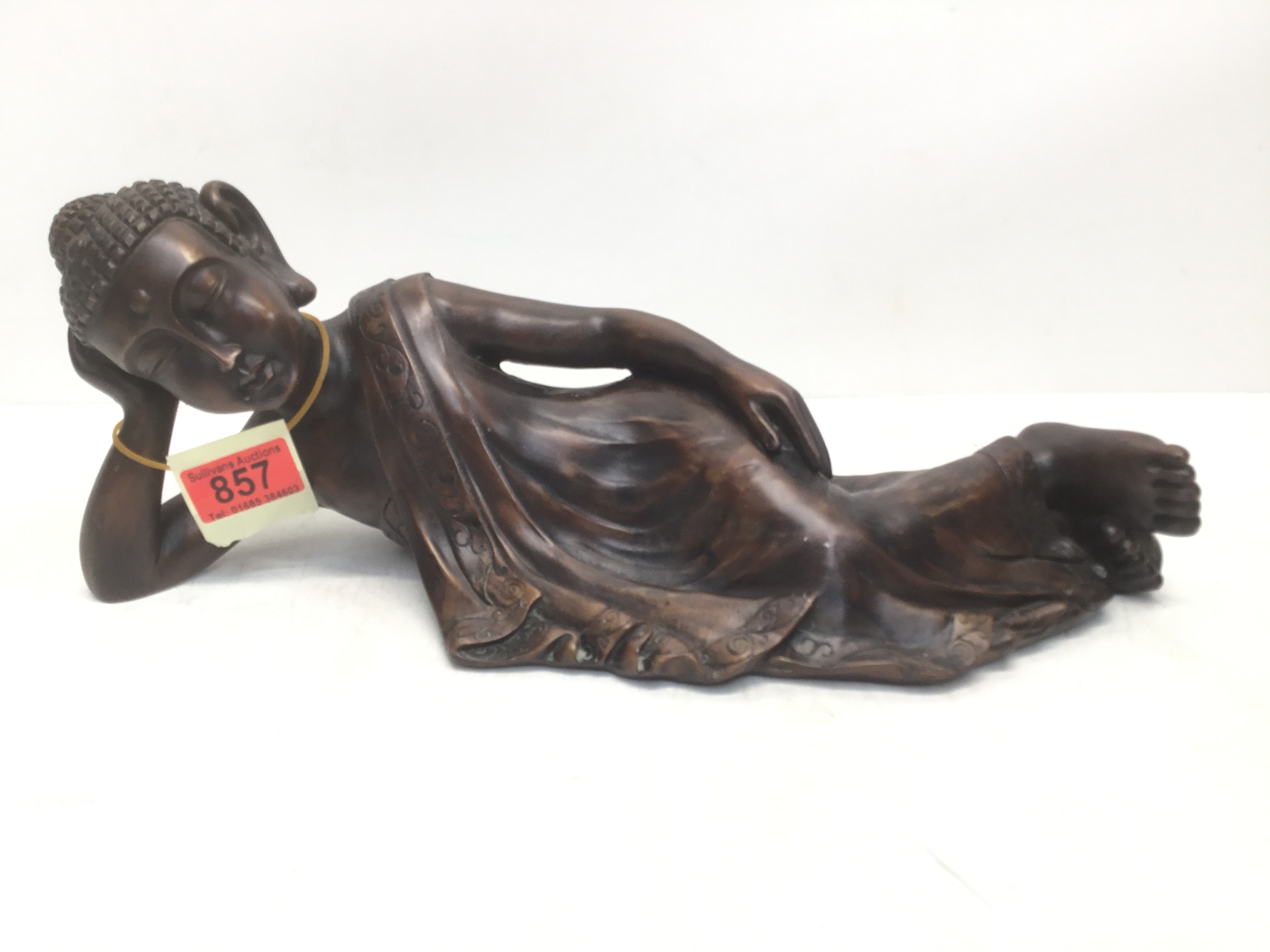 Reclining Buddha statue bronzed resin 42cm x 15cm