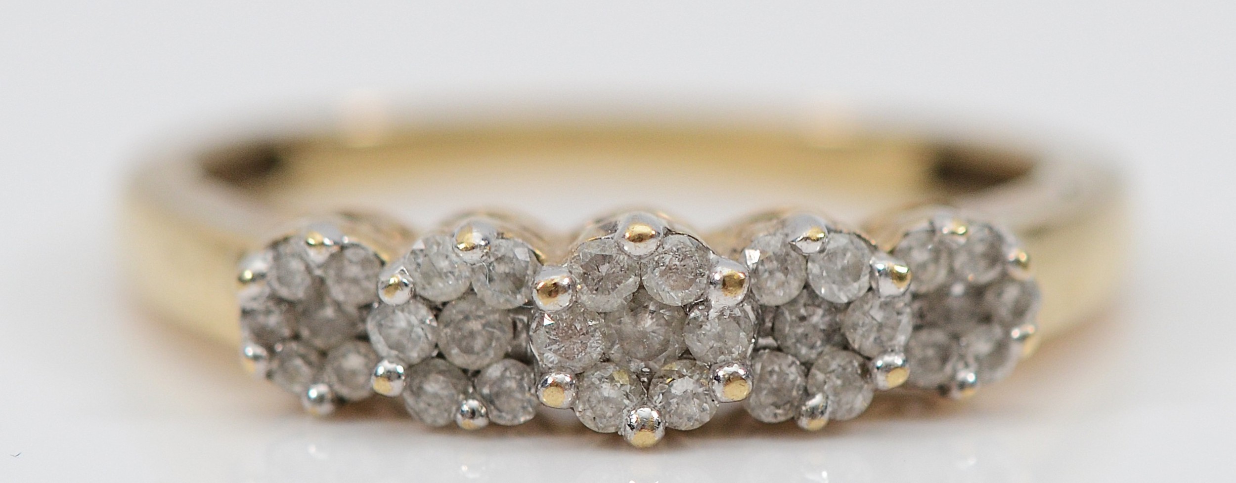 A 9ct gold brilliant cut diamond floral cluster ring, M, 2g