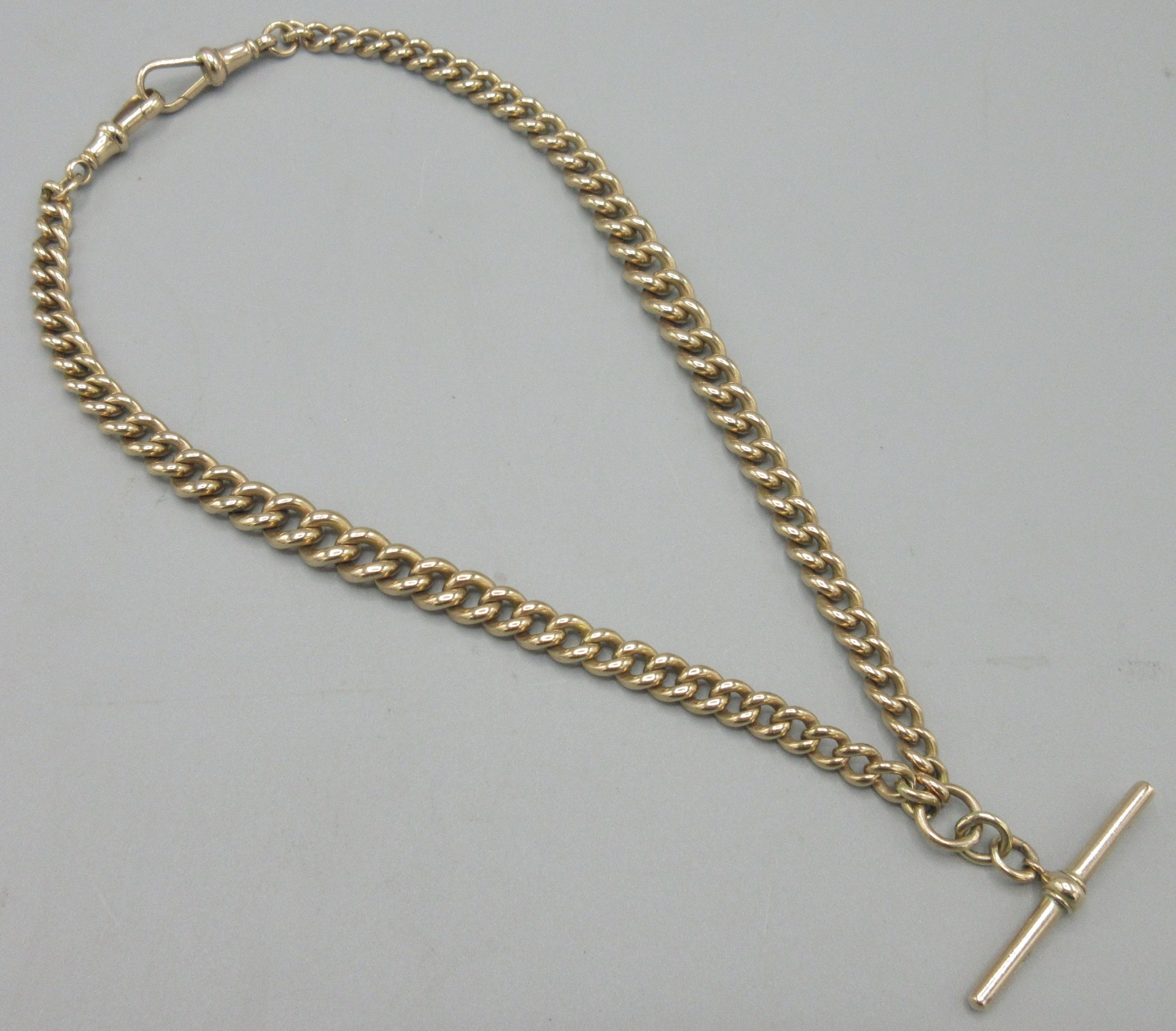 9ct rose gold T-bar albert chain with two dog clip clasps, stamped 375, L45cm, 68.2g