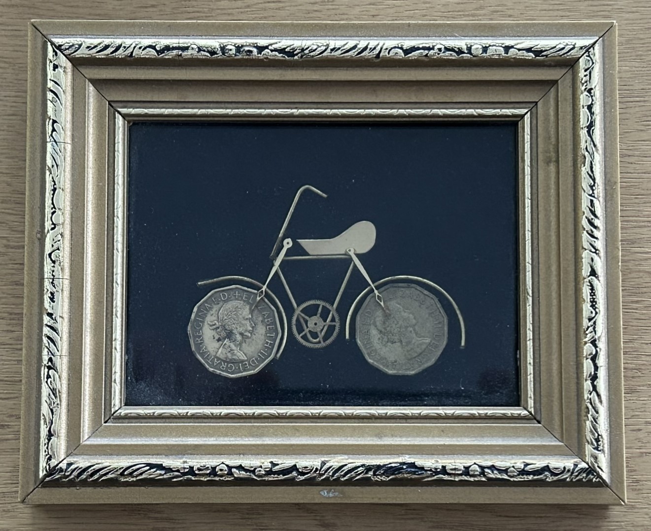 Thrup’nny Bit Bike - A Framed Picture of a Bicycle made from two Threepenny coins and watch parts